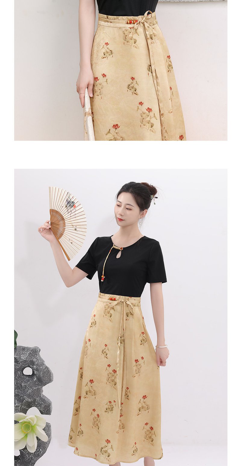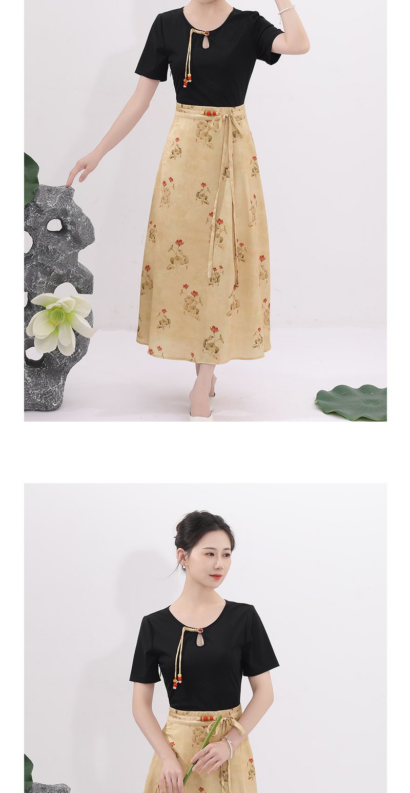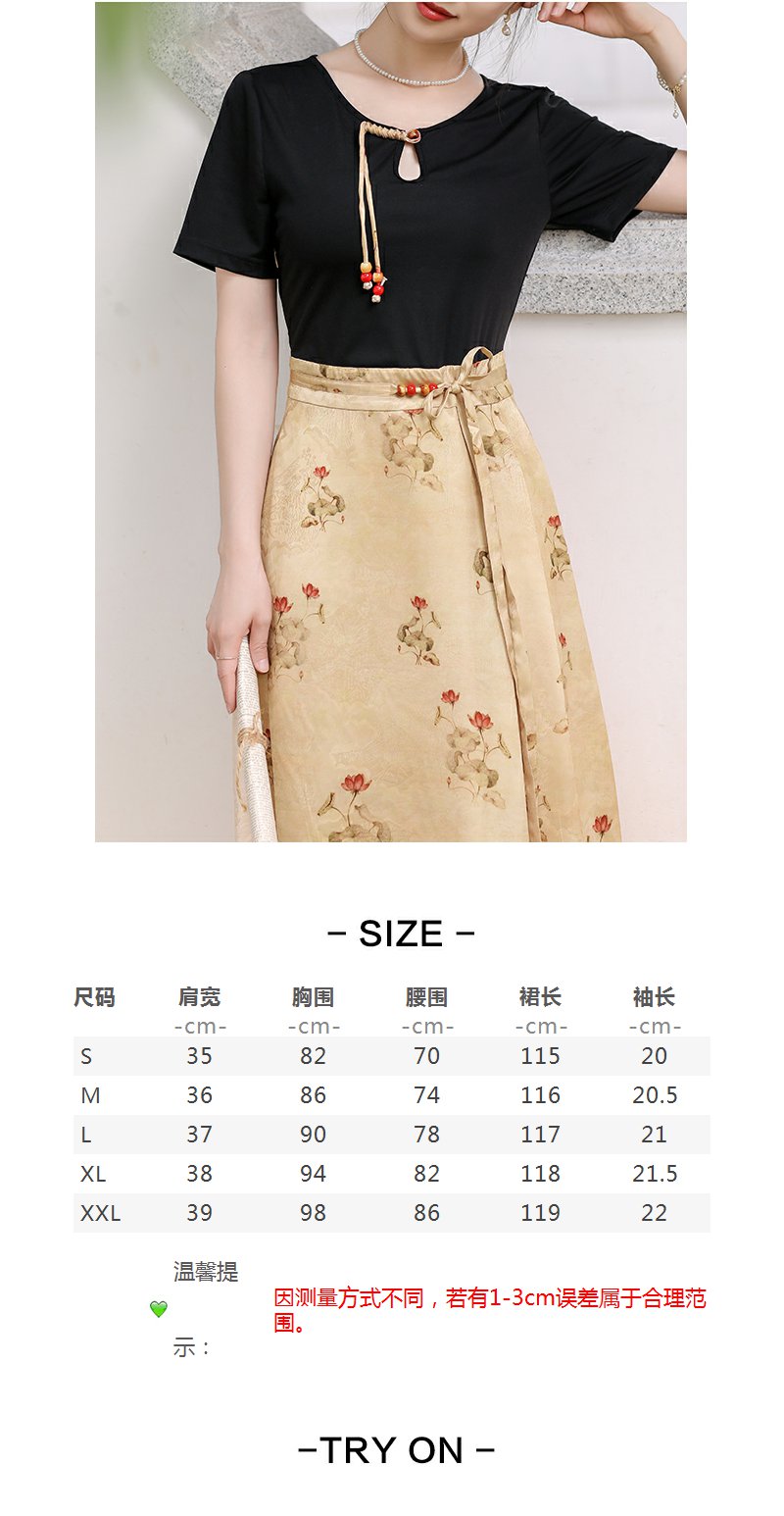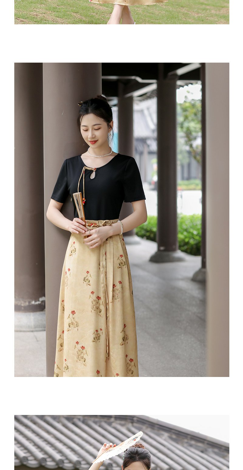 未风黑色针织拼接连衣裙女夏2025年新款夏季高腰新中式假两件裙子
