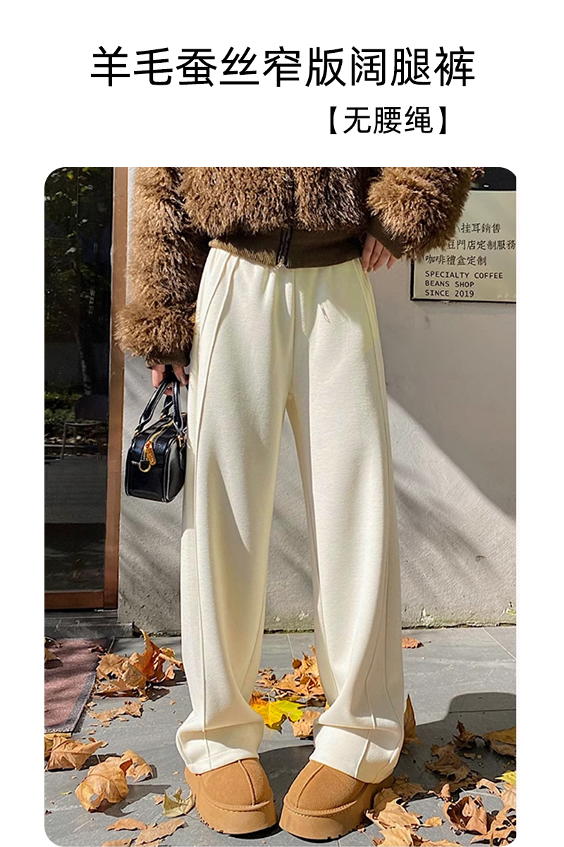 Beau Muse羊毛蚕丝窄版阔腿裤(无腰绳)