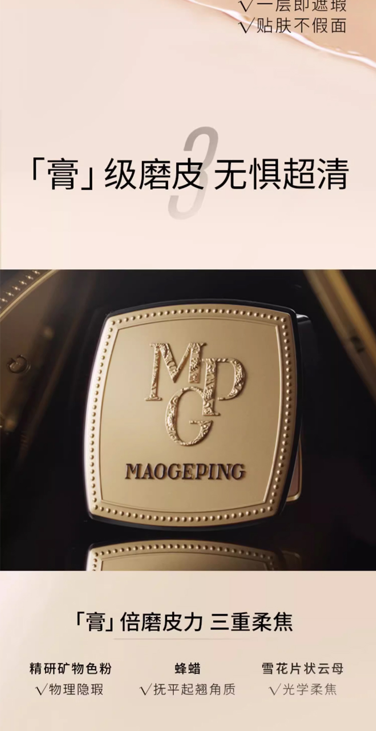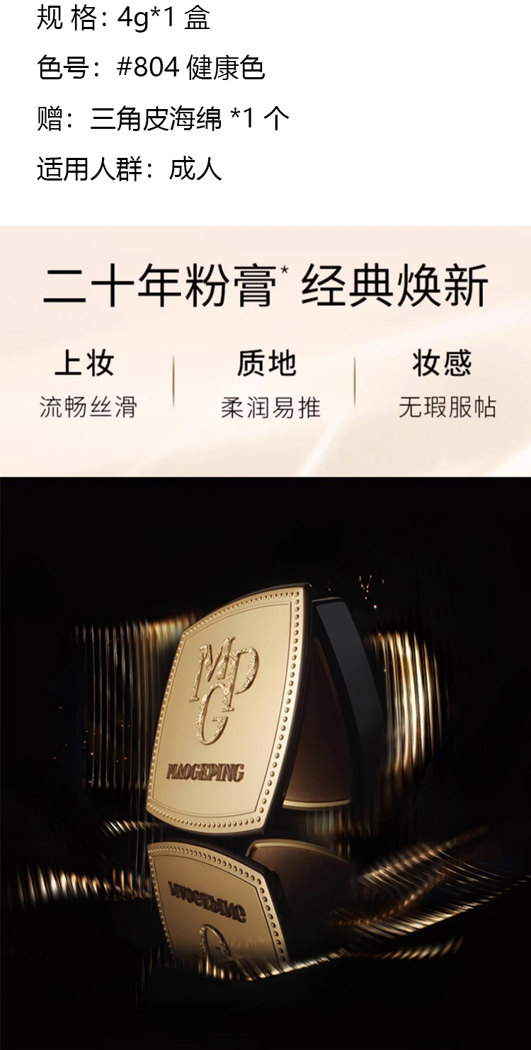 毛戈平BEAUTY光感美肌无痕粉膏4g*1盒( 赠:三角皮海绵1个)
