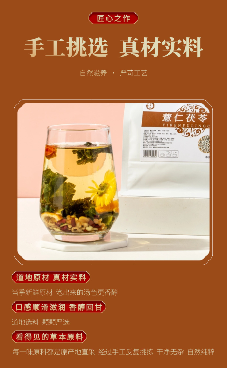 【粉丝专属❗️薏仁茯苓茶】甄选品质原料制作,茶味幽香料足更耐泡,茶色清亮口感醇厚口味悠长,赤小豆白扁豆芡实黄苦荞桑叶菊花橘皮栀子养生花草茶L