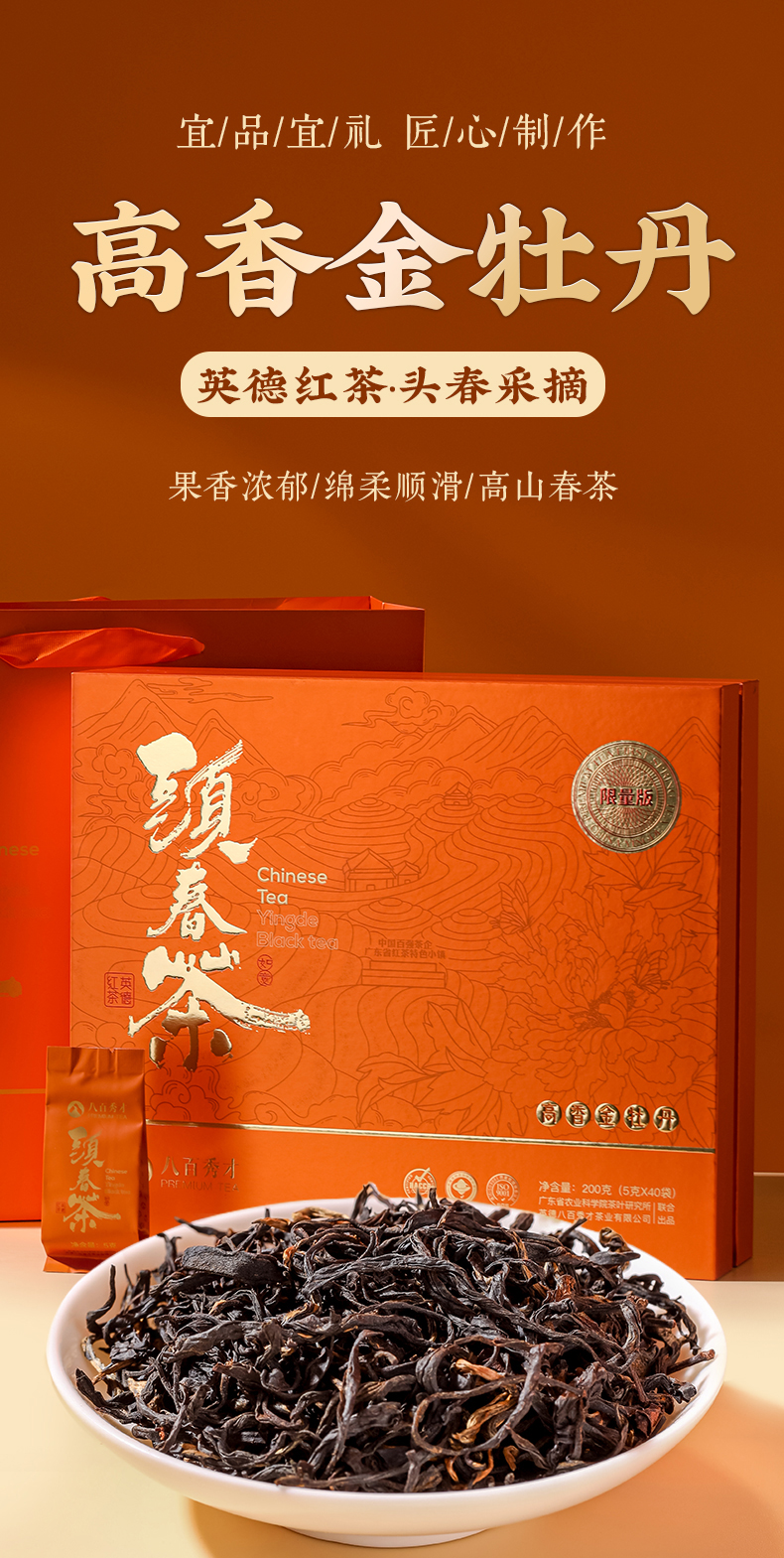 【明前头春茶】八百秀才正宗金牡丹红茶礼盒200g
