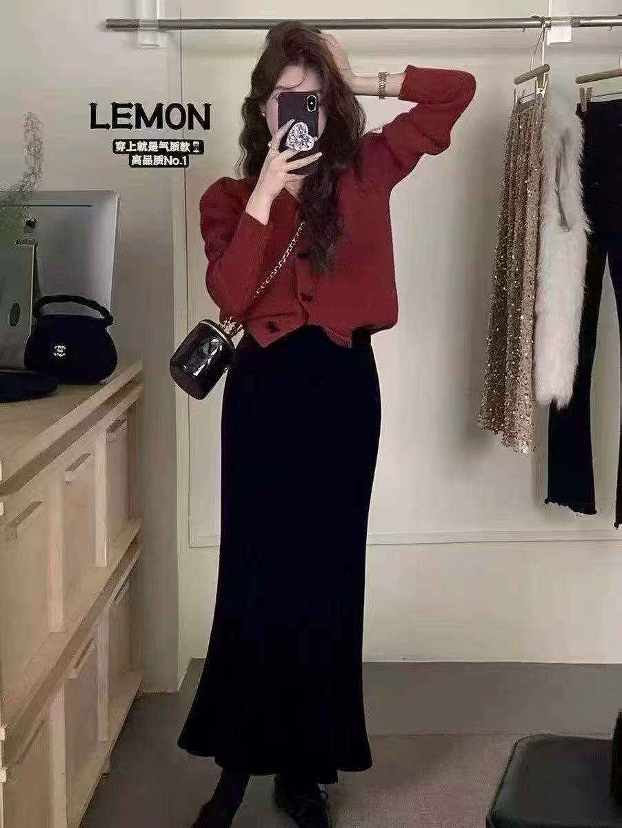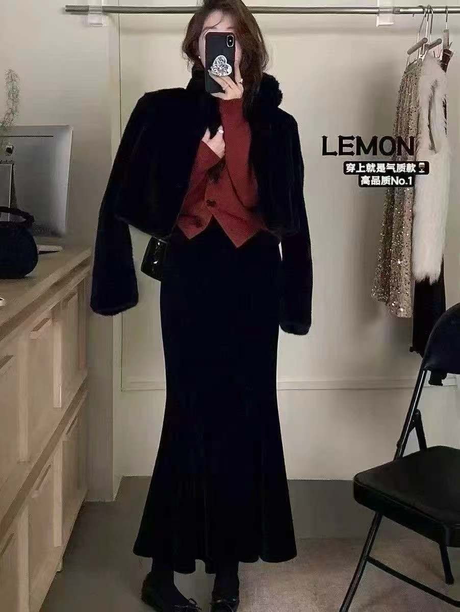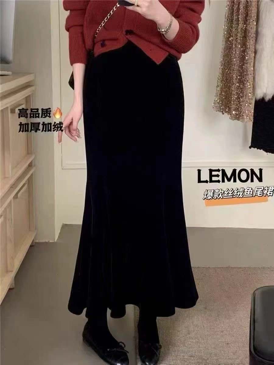 【GZ】无忧购新款高品质女士百搭慵懒风丝绒鱼尾裙直筒裙308(截单后3-5天发货)