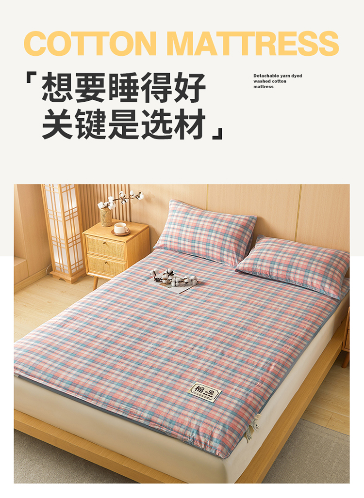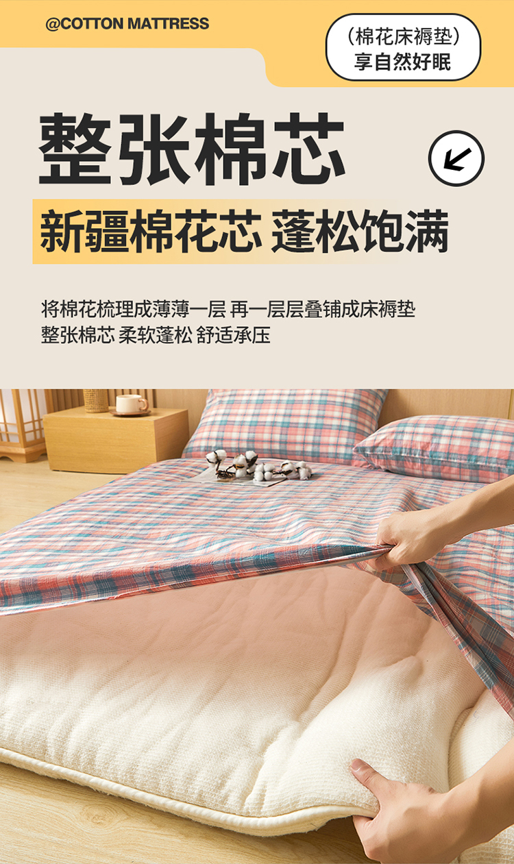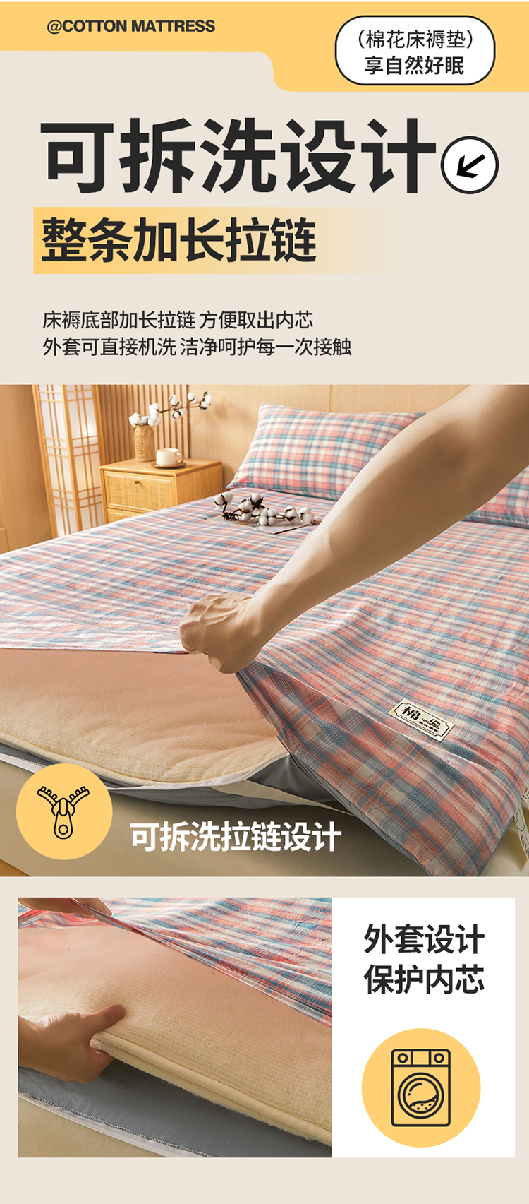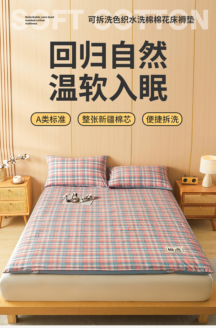 浪莎 可拆洗新疆棉花床垫被褥 学生宿舍可用 亲肤水洗棉棉花床垫 无胶水零甲醛 四季通用 多规格可选