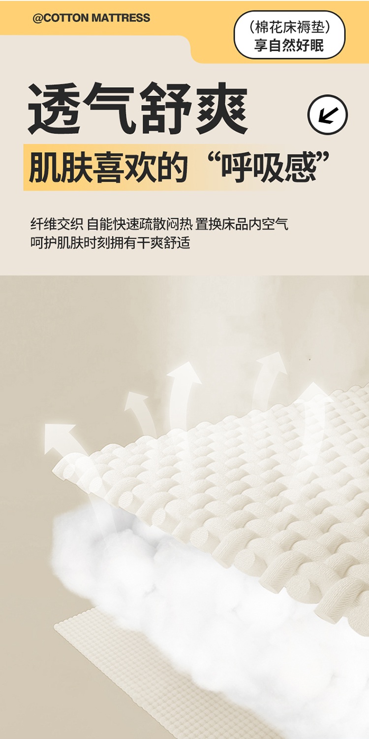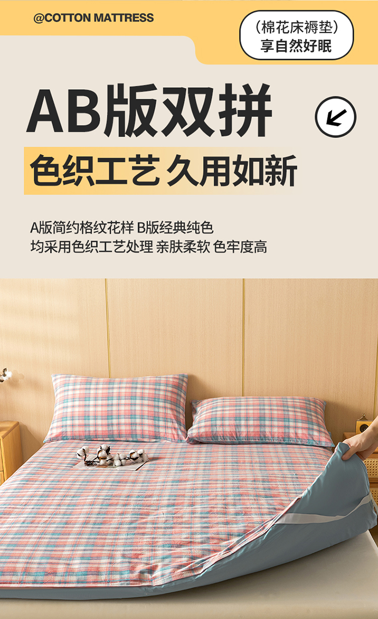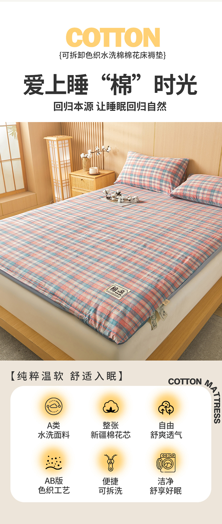 浪莎 可拆洗新疆棉花床垫被褥 学生宿舍可用 亲肤水洗棉棉花床垫 无胶水零甲醛 四季通用 多规格可选