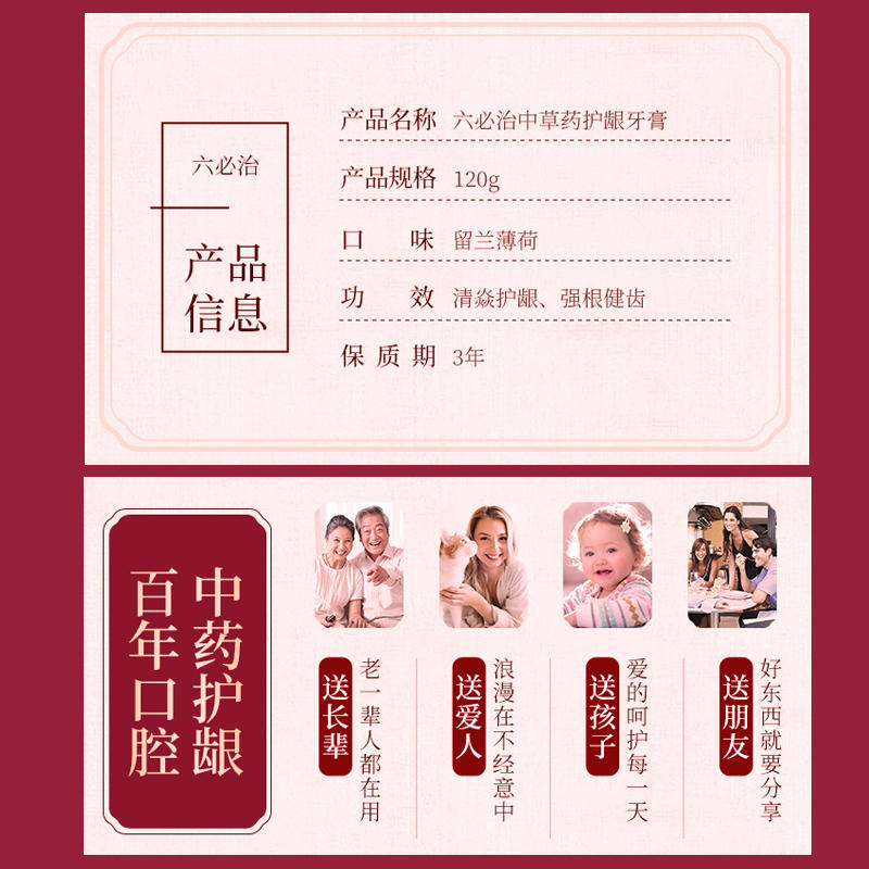 六必治 中草药护龈牙膏(留兰薄荷)120g*2支