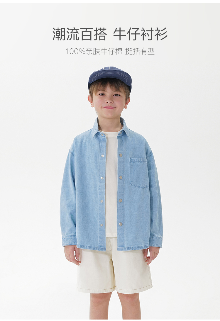 马克珍妮男童潮流百搭纯棉牛仔衬衫2025年春装新款250105