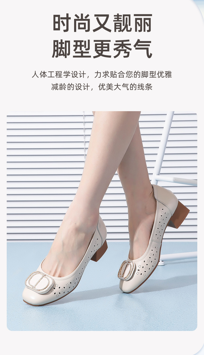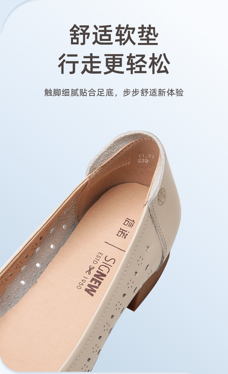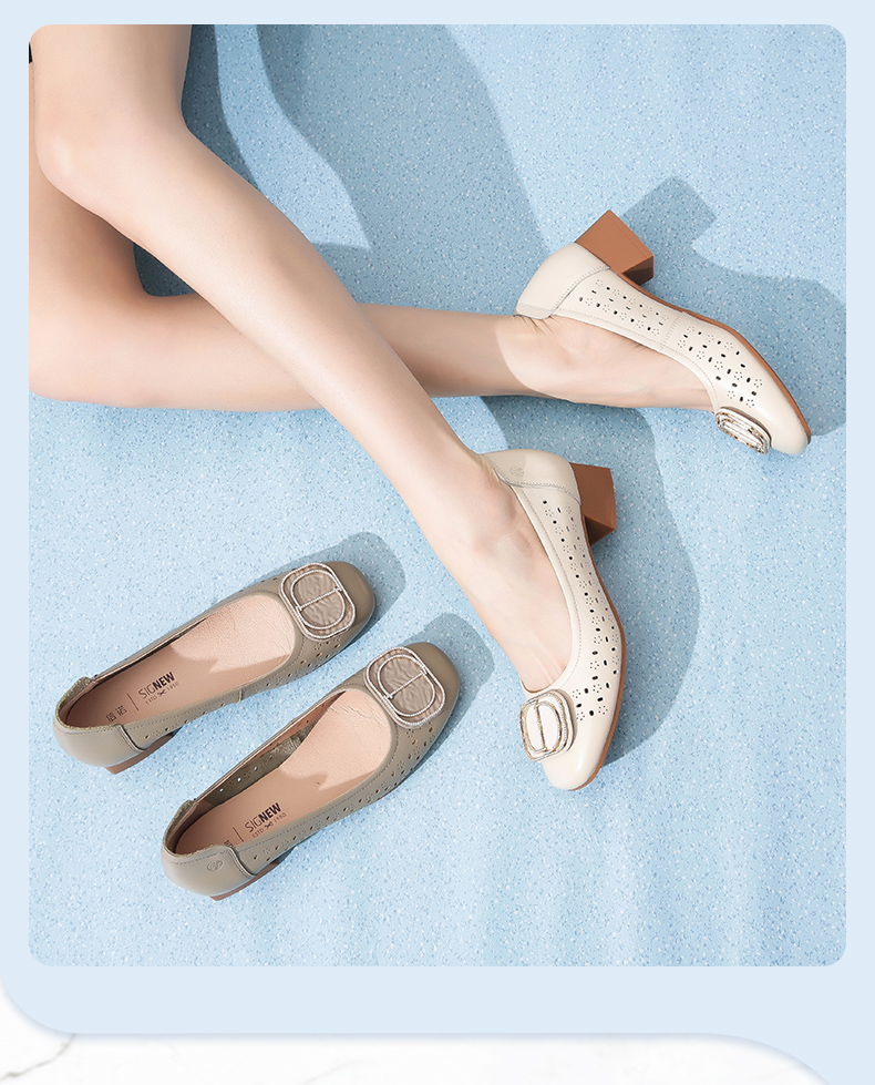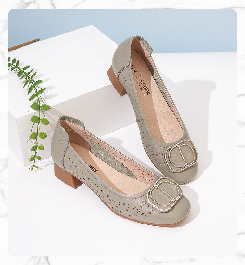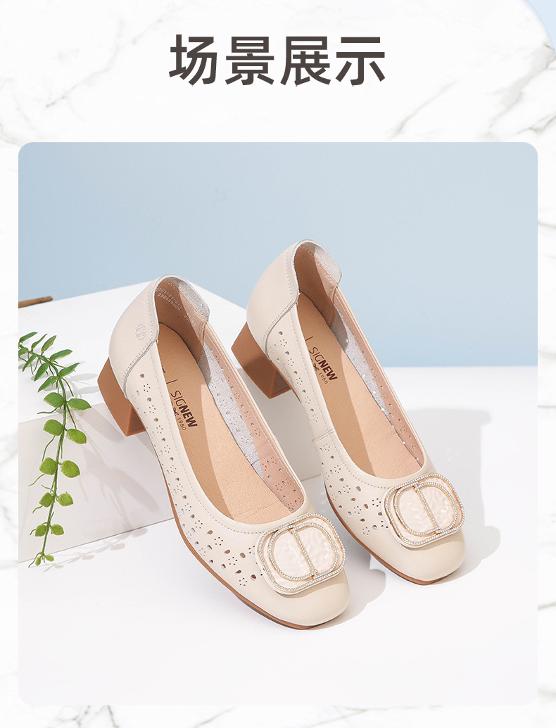 信诺 真皮舒适女鞋 妈妈鞋夏款透气凉鞋中跟中年软底气质粗跟单鞋22C1931-011