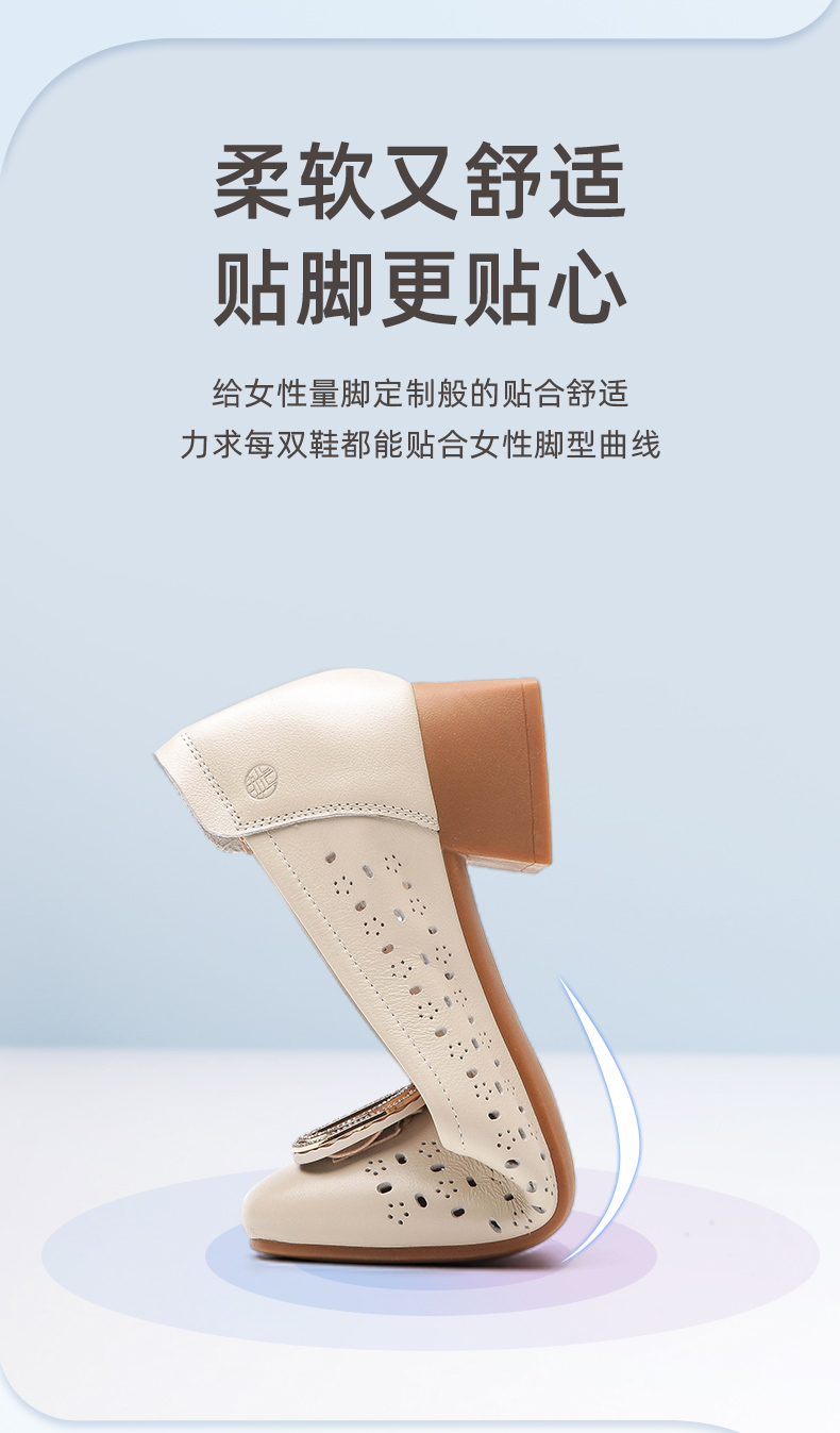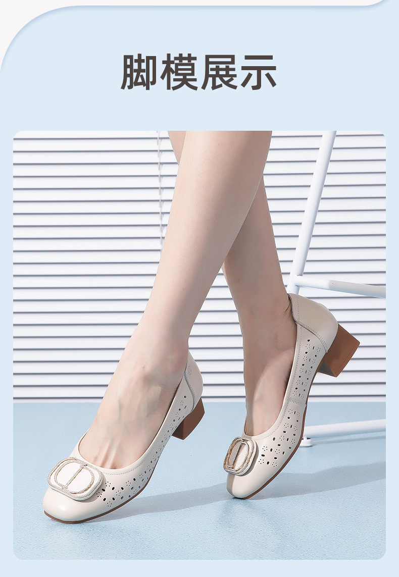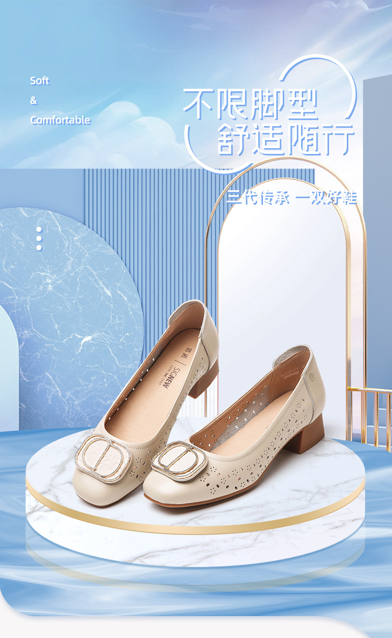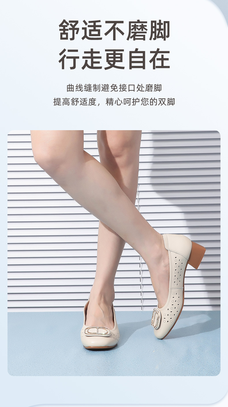 信诺 真皮舒适女鞋 妈妈鞋夏款透气凉鞋中跟中年软底气质粗跟单鞋22C1931-011