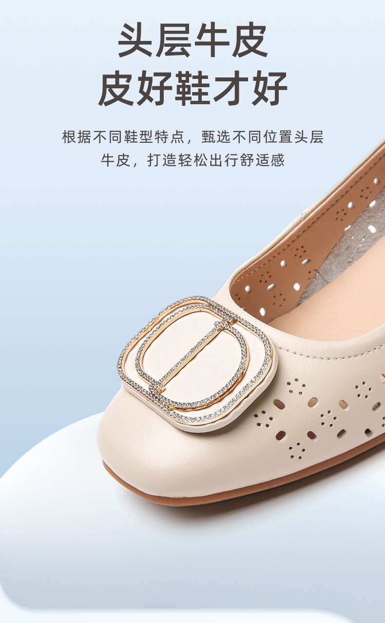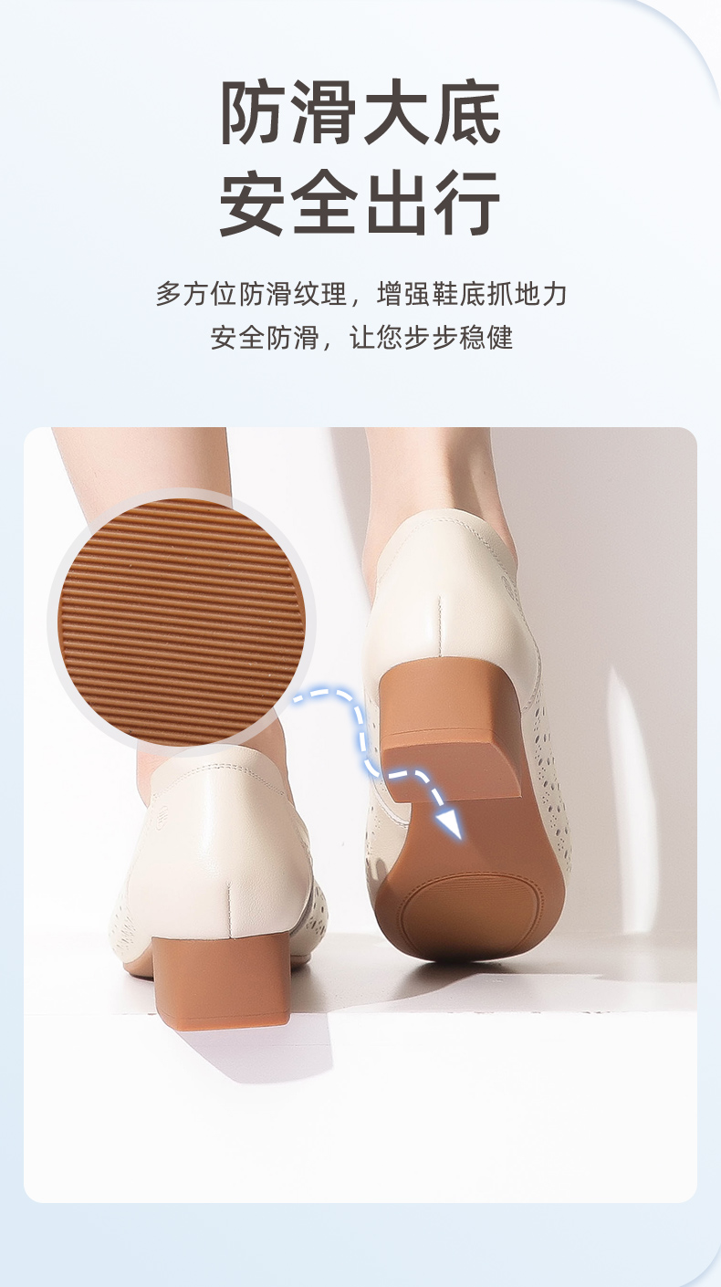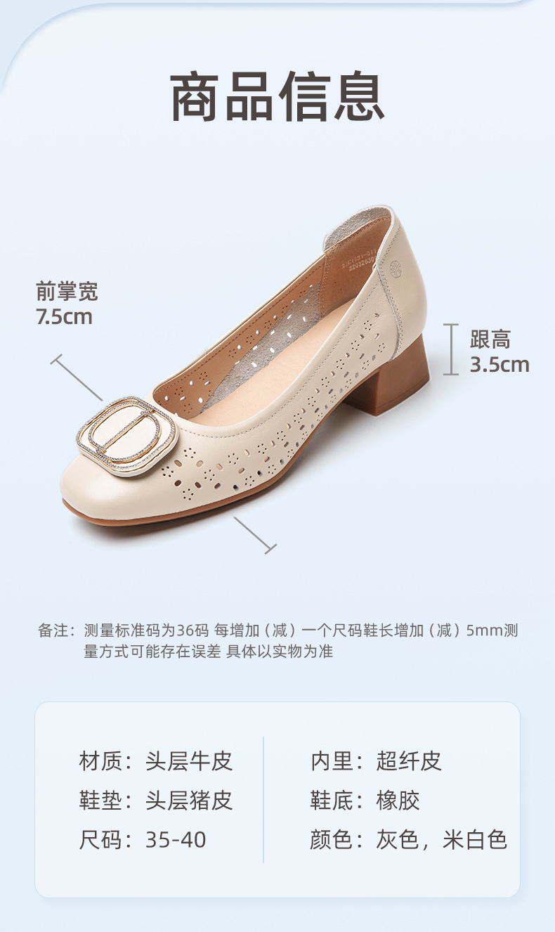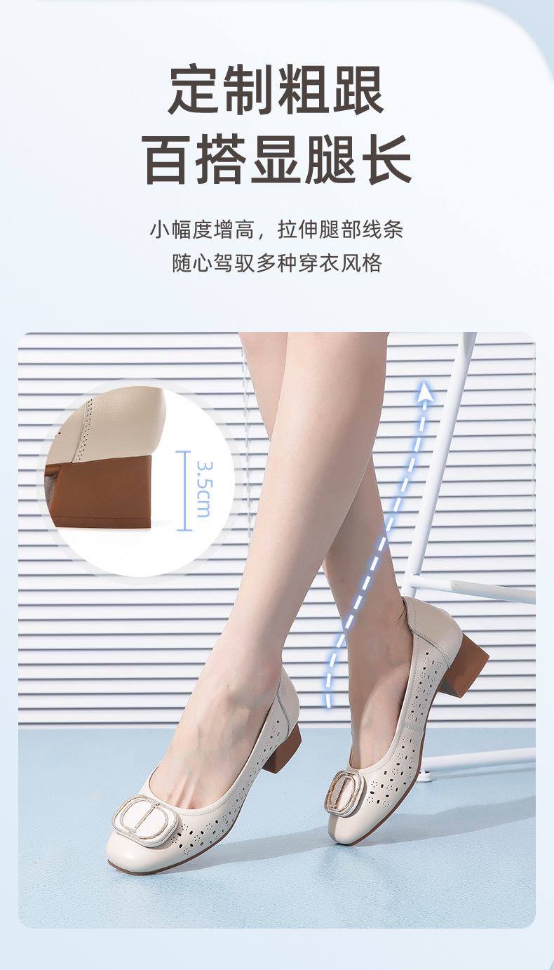 信诺 真皮舒适女鞋 妈妈鞋夏款透气凉鞋中跟中年软底气质粗跟单鞋22C1931-011