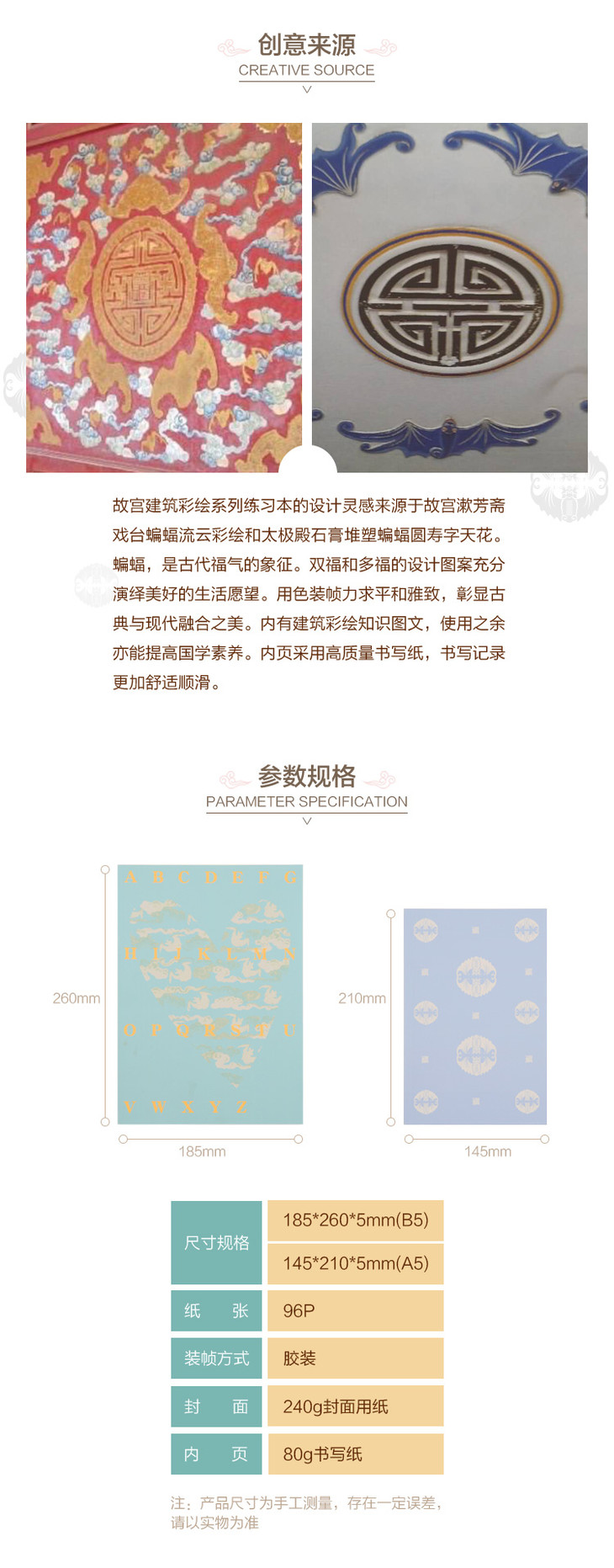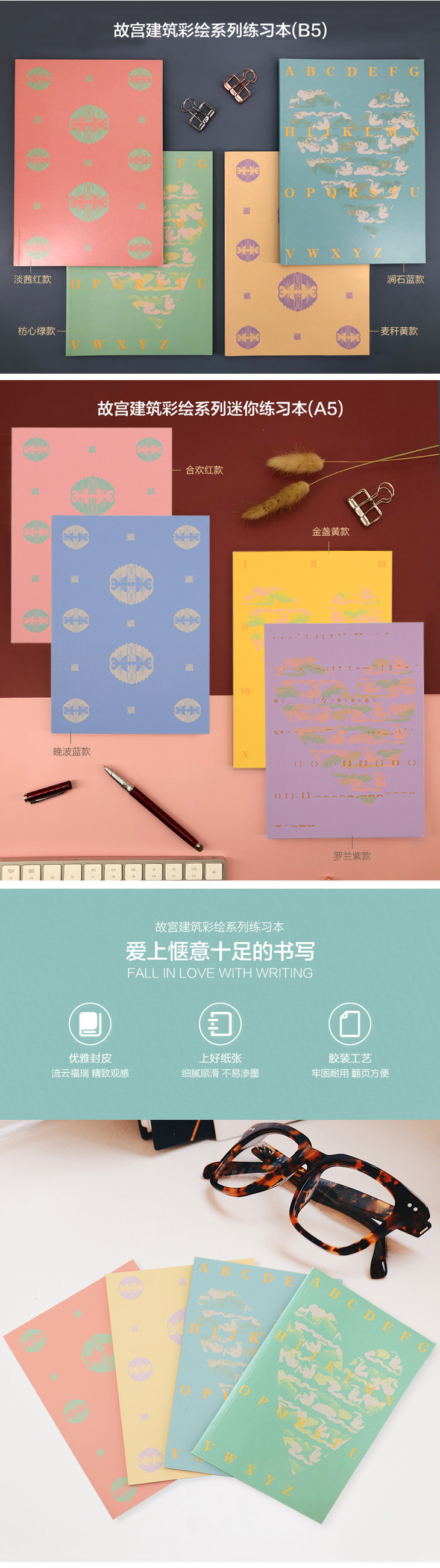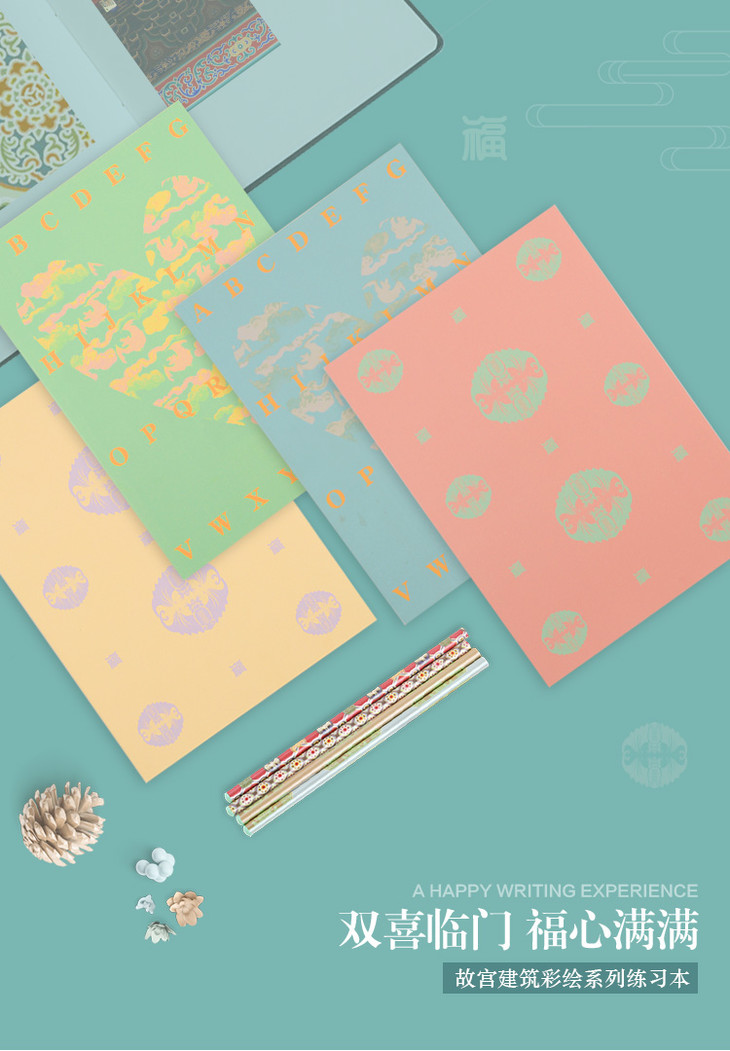 故宫文具建筑彩绘系列练习本记事软抄彩绘中国风艺术学生用小学软抄数学作文高中初中