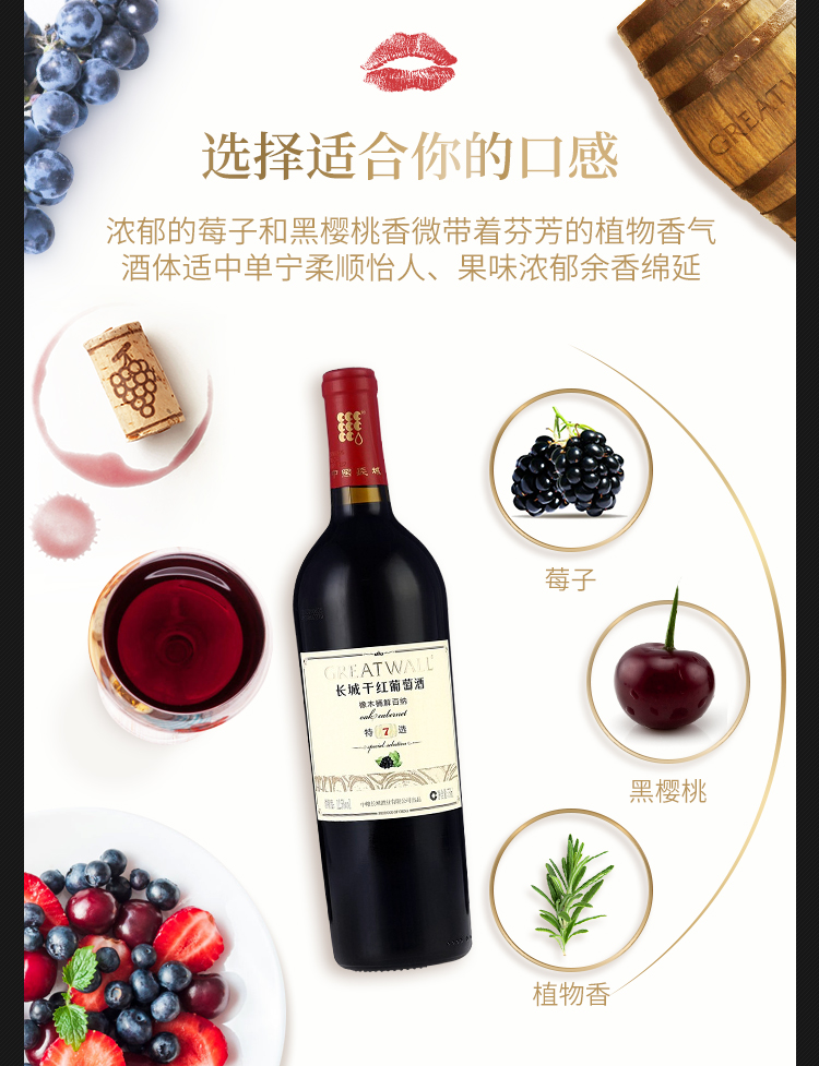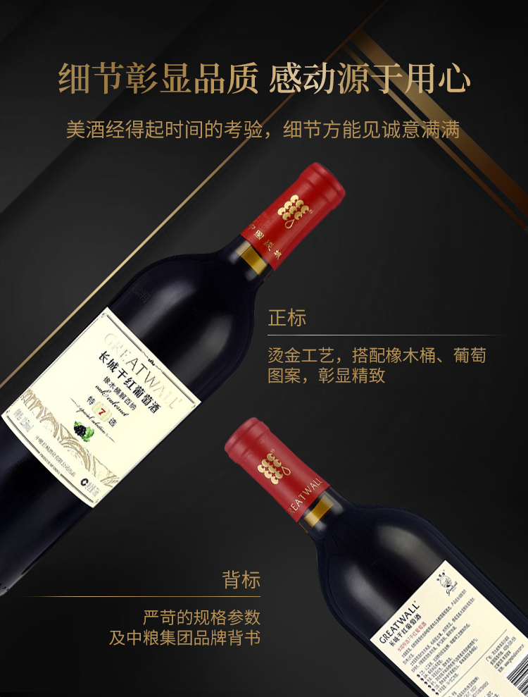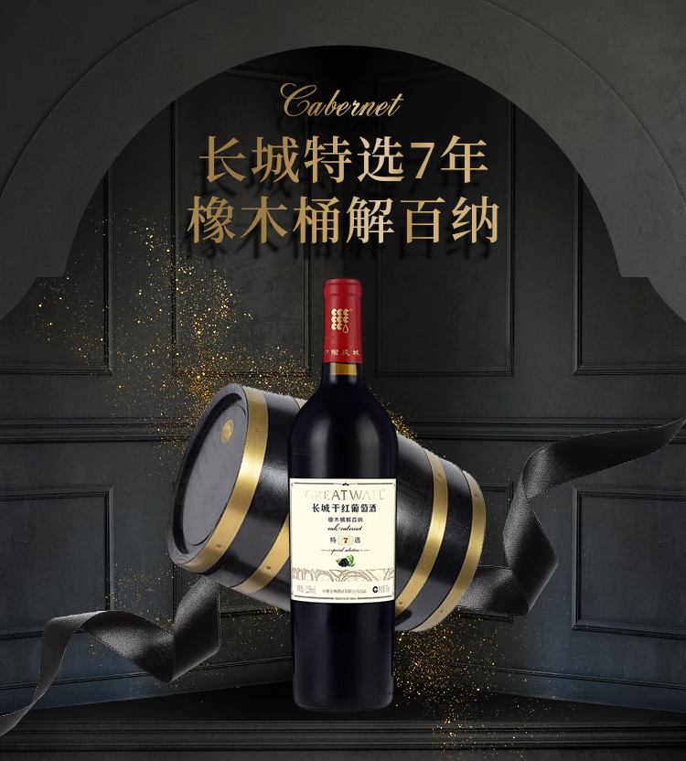 长城 特选7年橡木桶解百纳干红葡萄酒 750ml 单瓶装 中粮出品