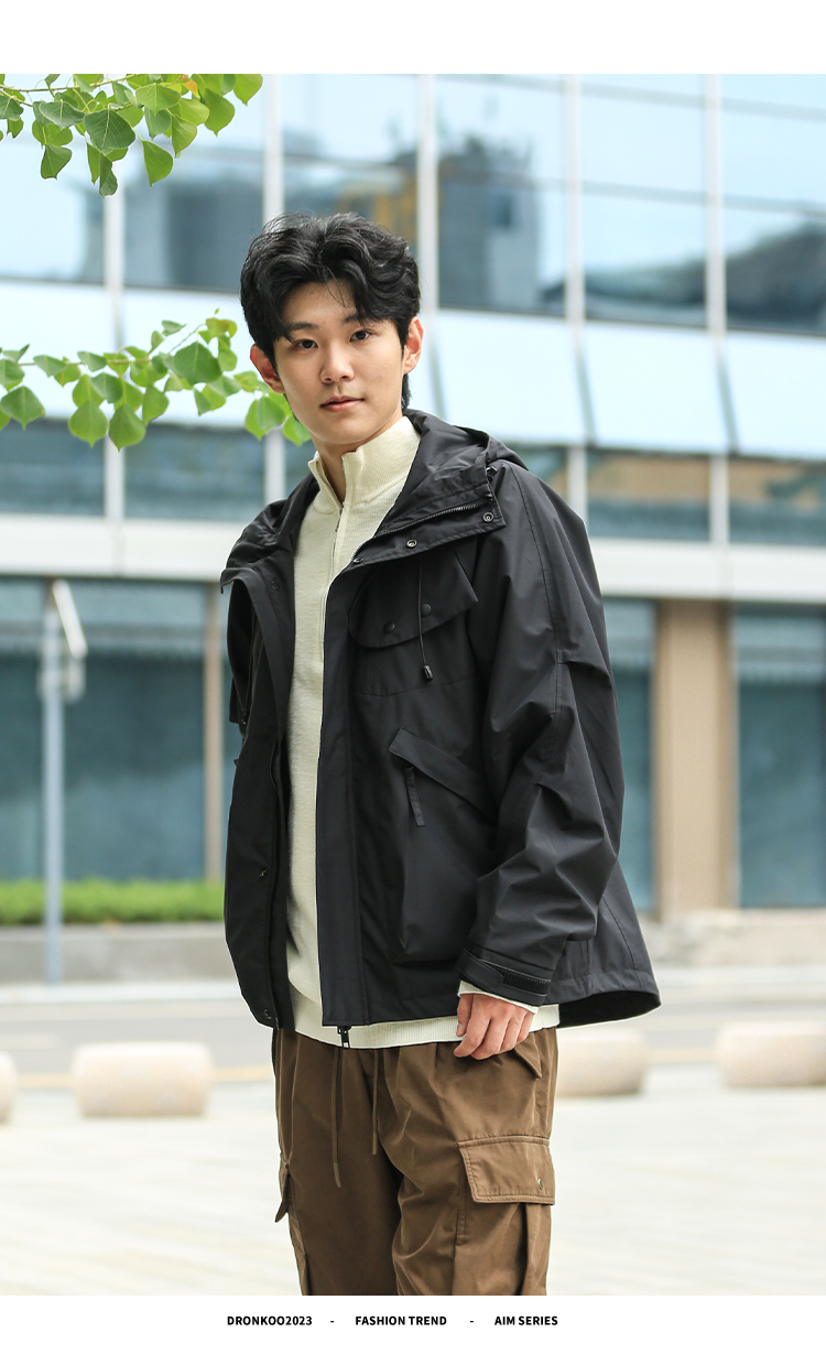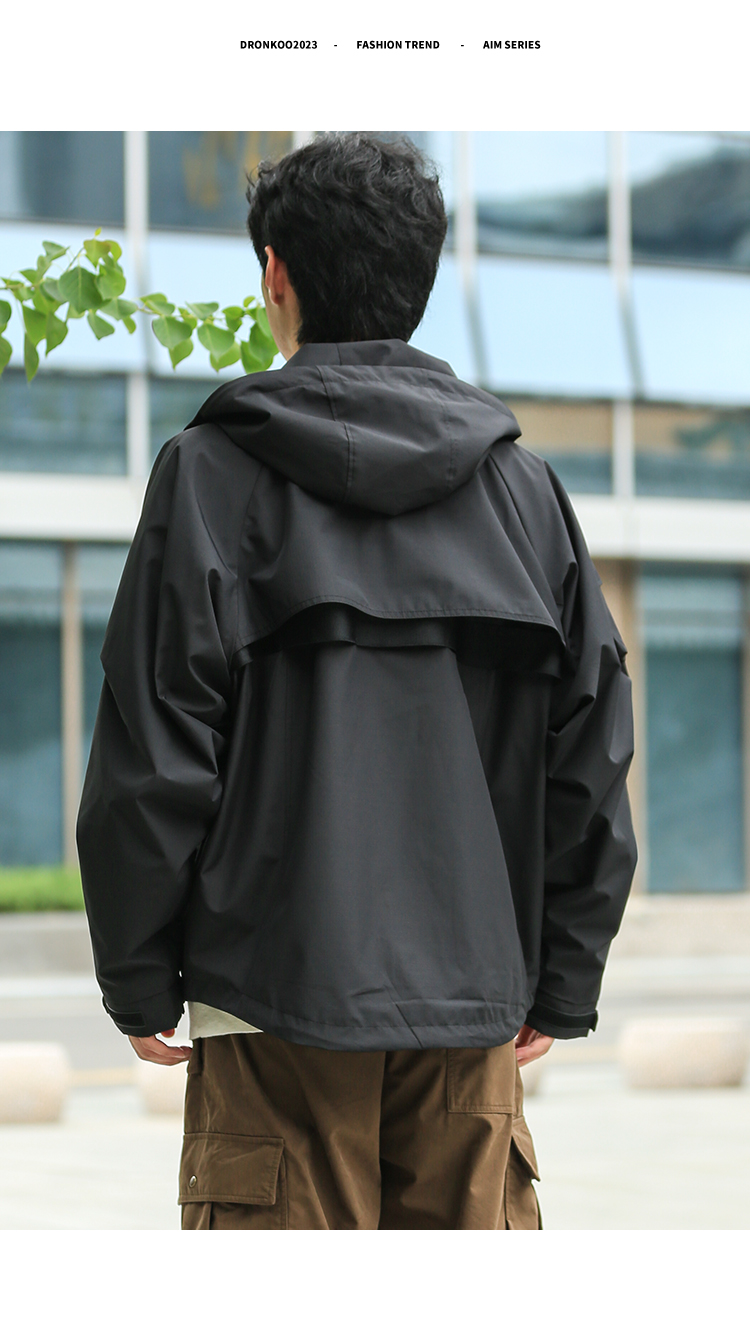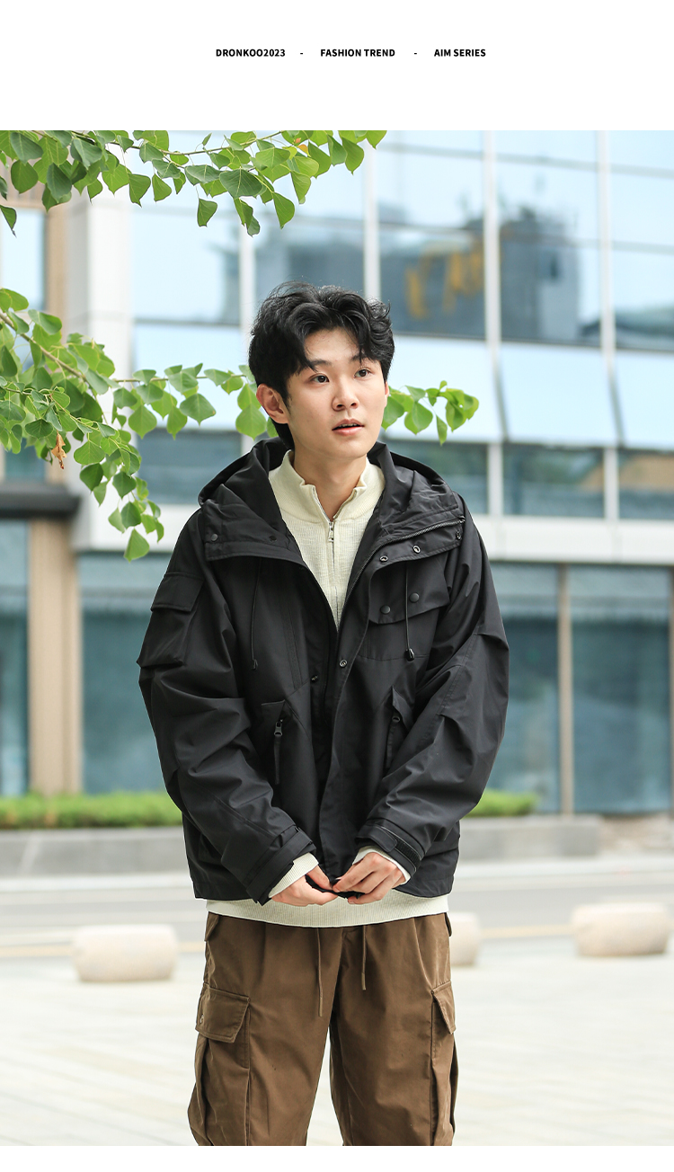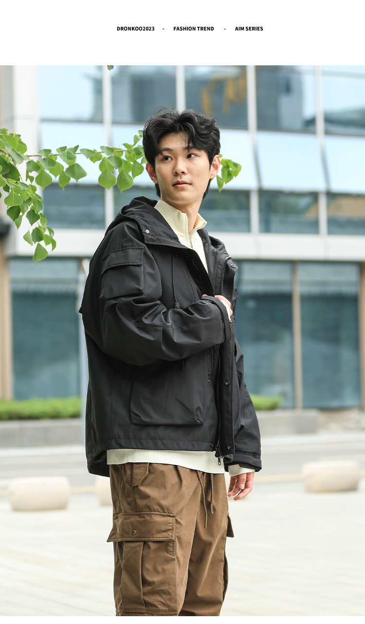 DRONKOO 2024 连帽前襟双拉链左侧活页工装风微阔中厚夹克
