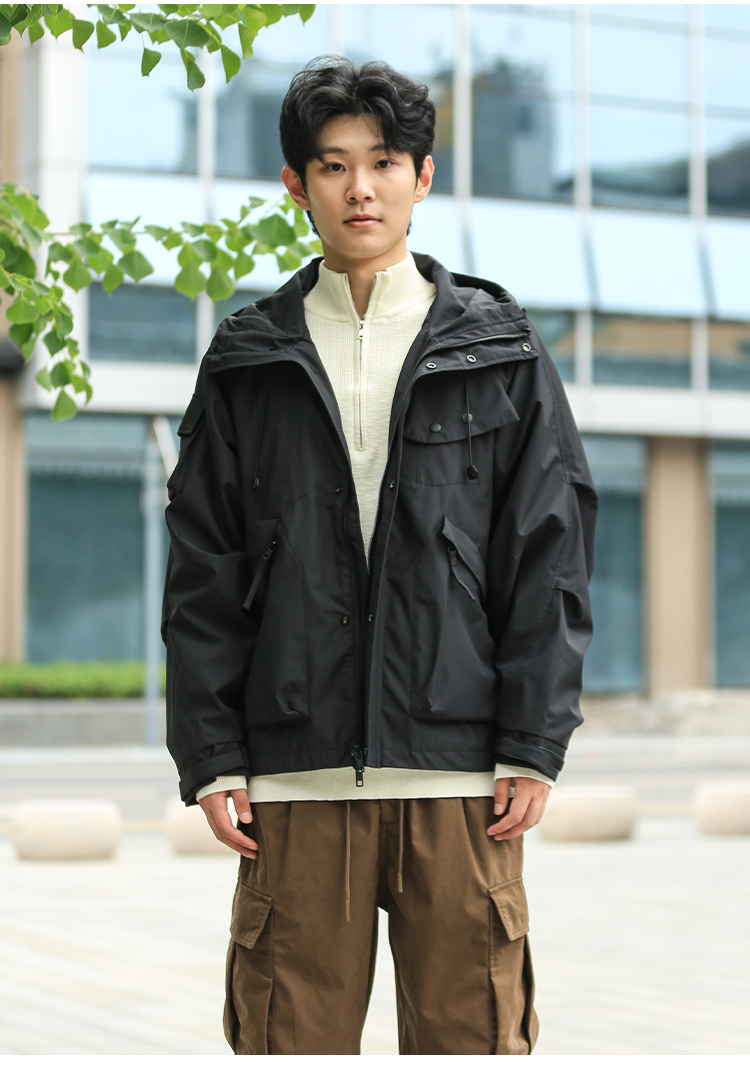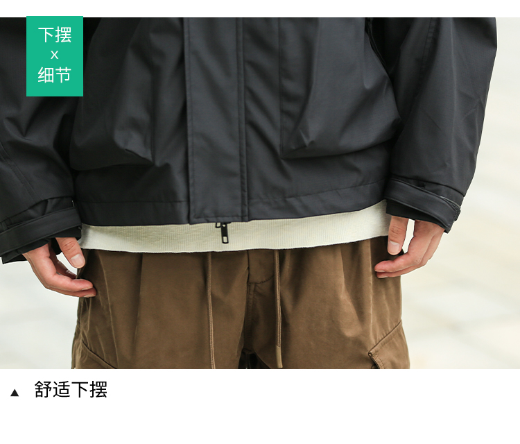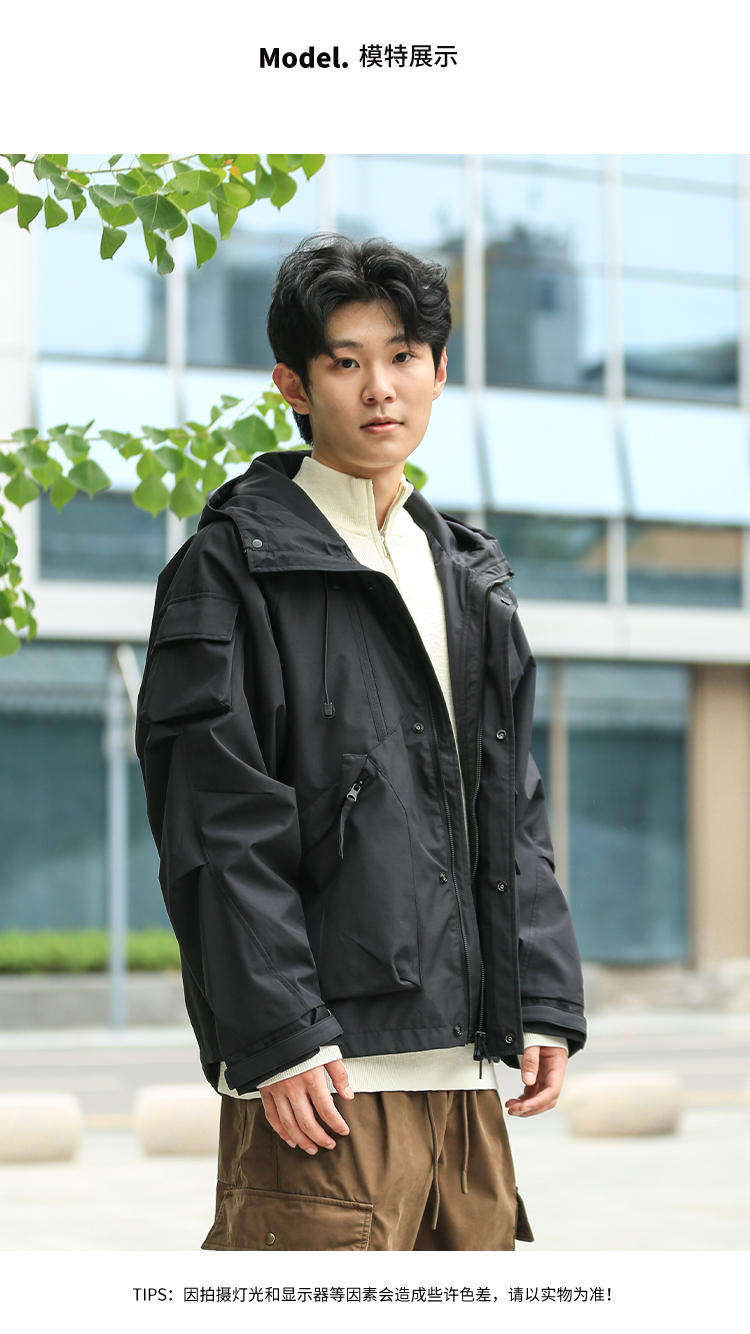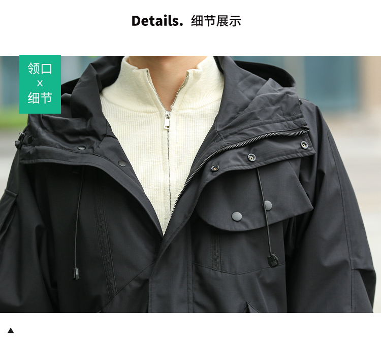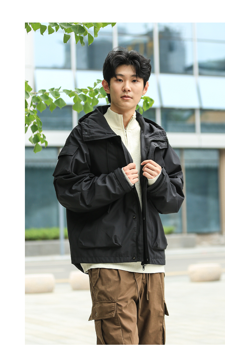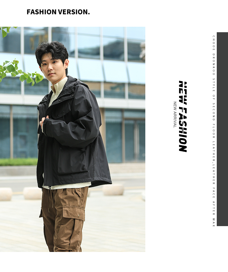 DRONKOO 2024 连帽前襟双拉链左侧活页工装风微阔中厚夹克