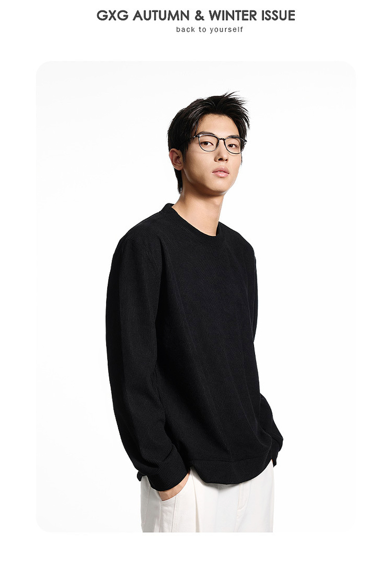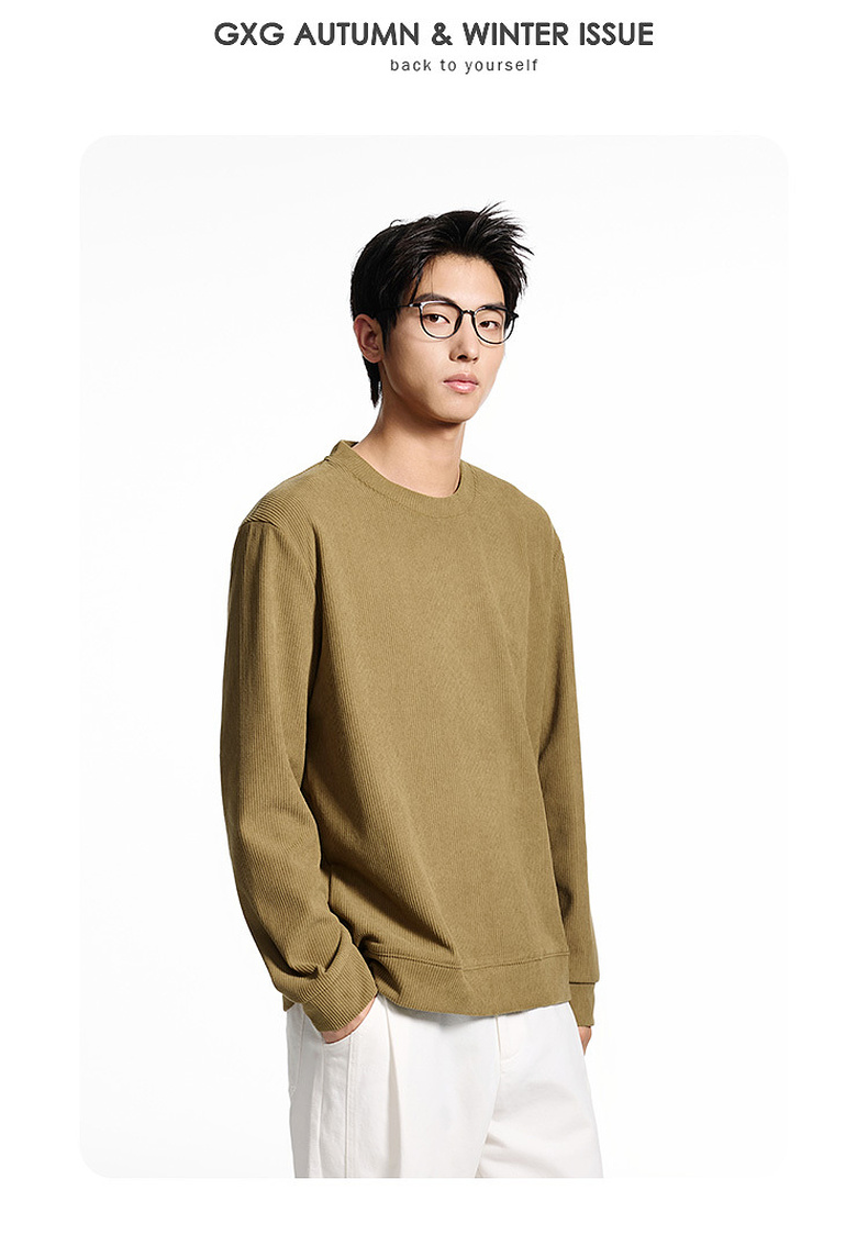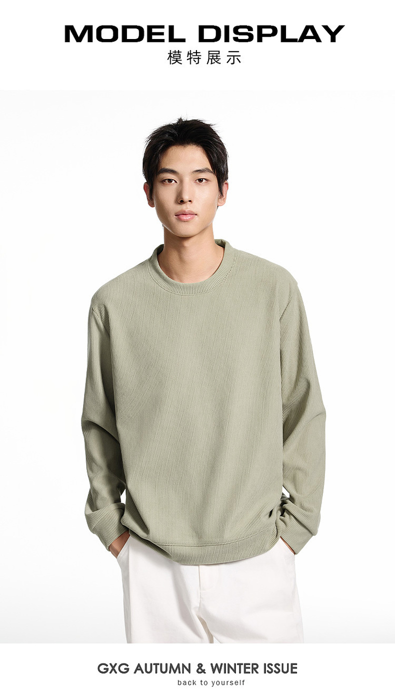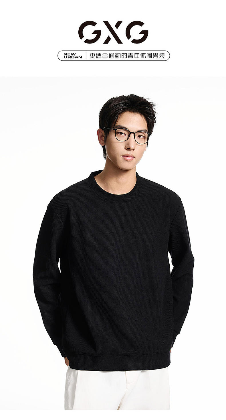 GXG男装【细腻亲肤】秋季时尚简约罗纹肌理圆领男式休闲卫衣K&C