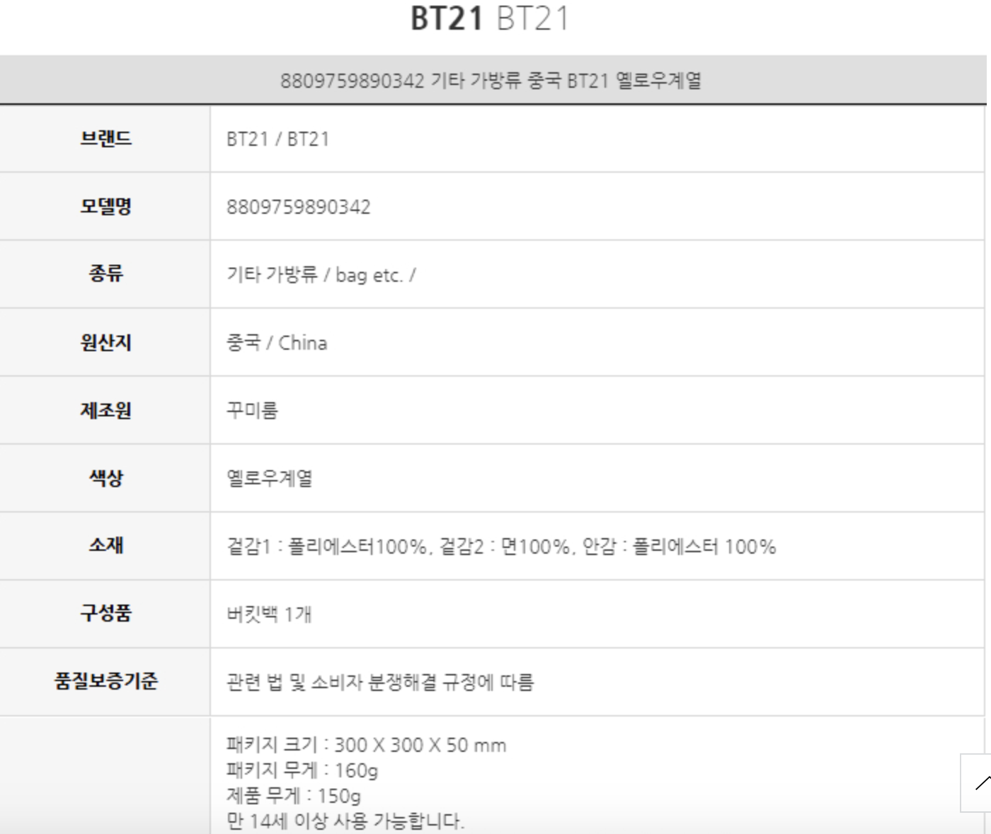 Line Friends BT21 CHIMMY BABY婴儿水桶包梦之宝贝