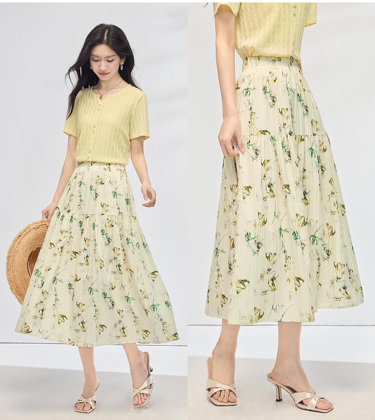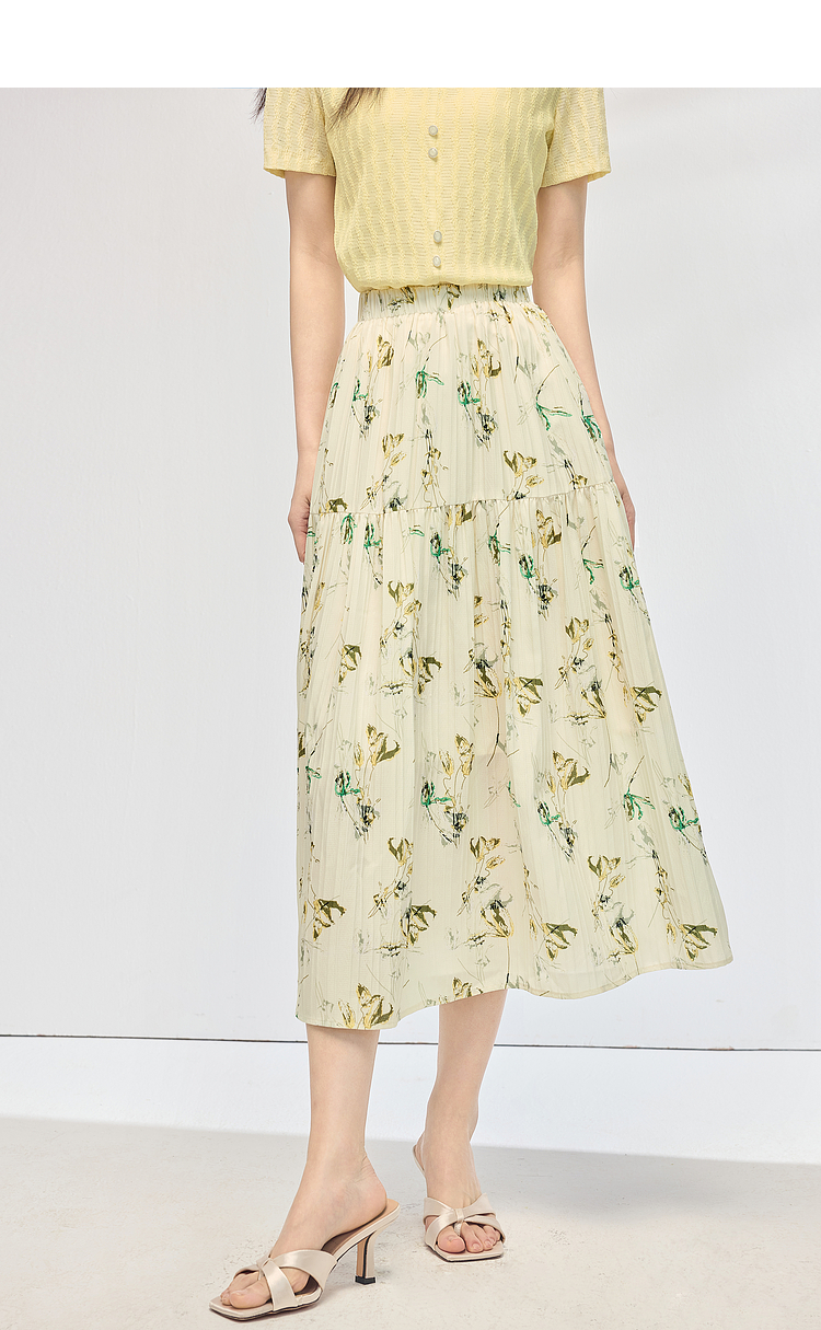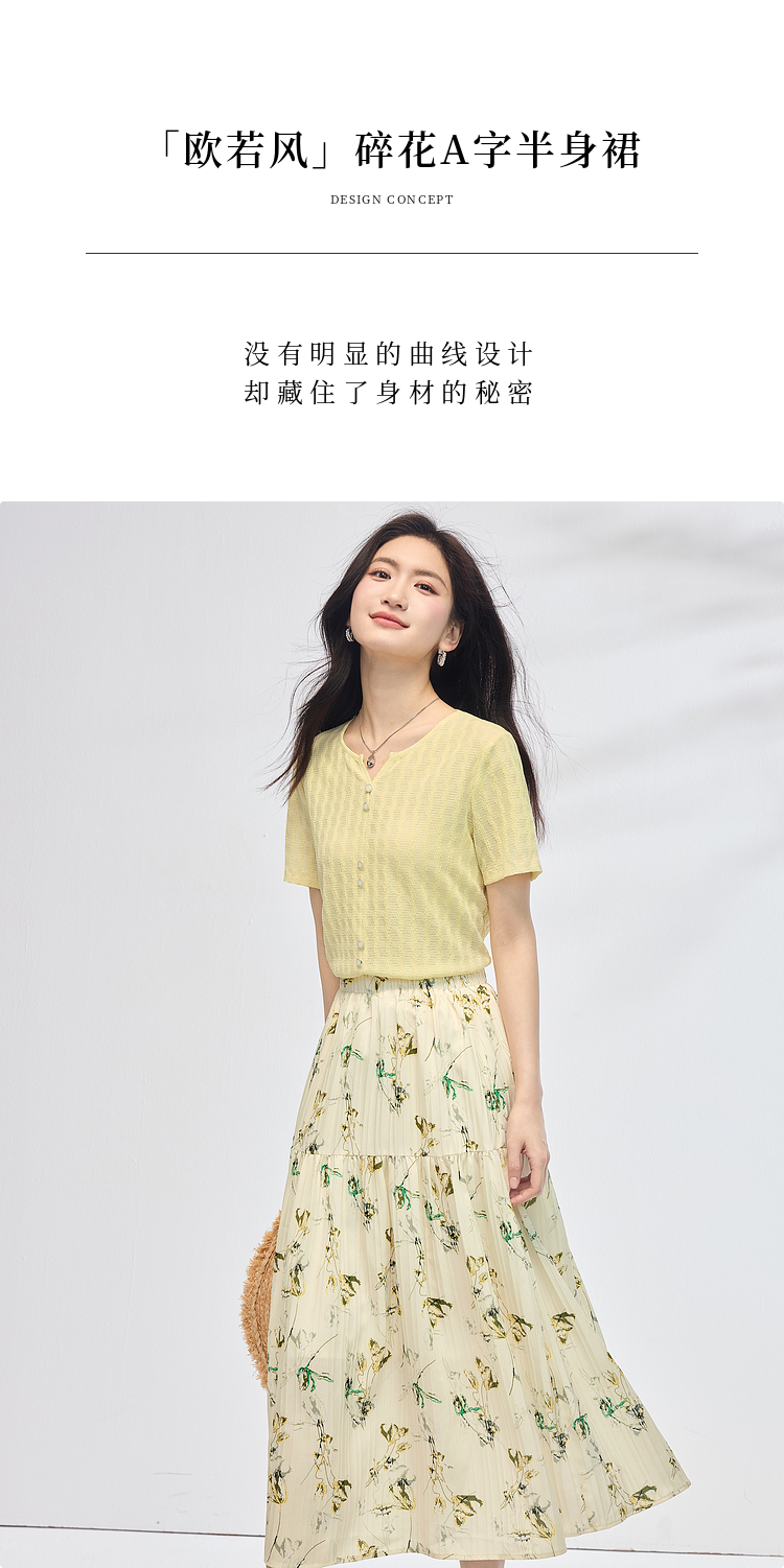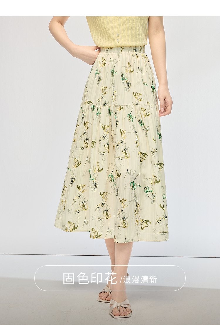 【专属特价】熙世界碎花半身裙女2025夏天新款浪漫清新空气绉感印花a字裙伞裙