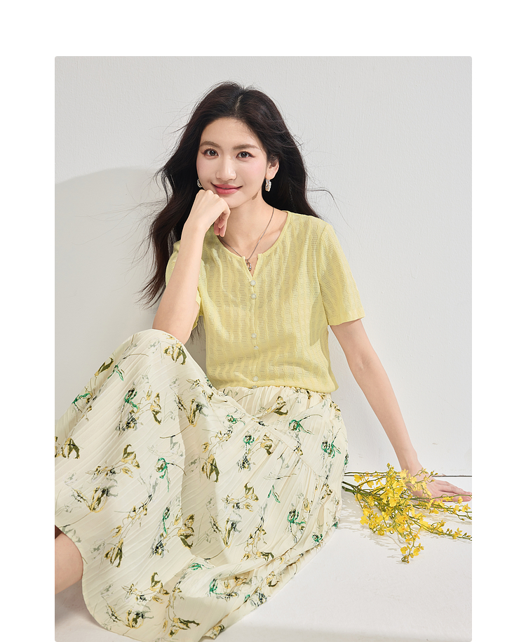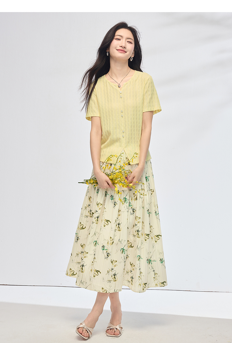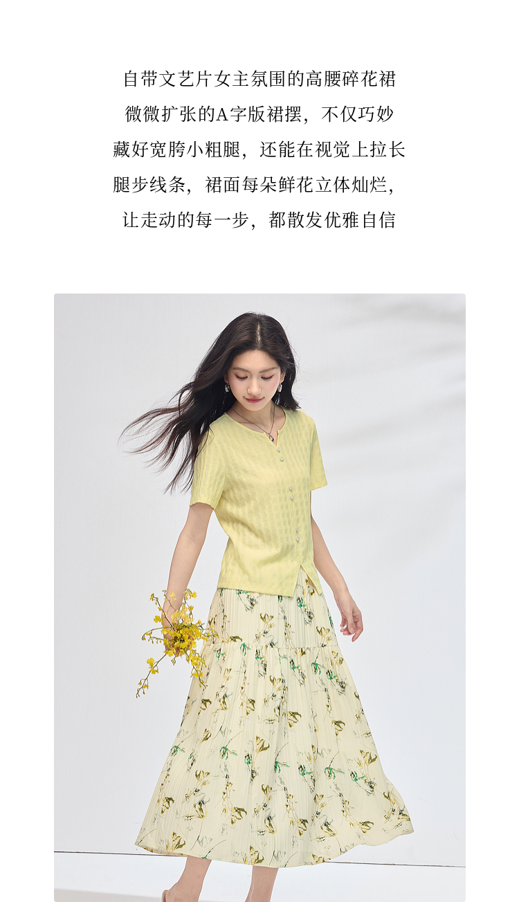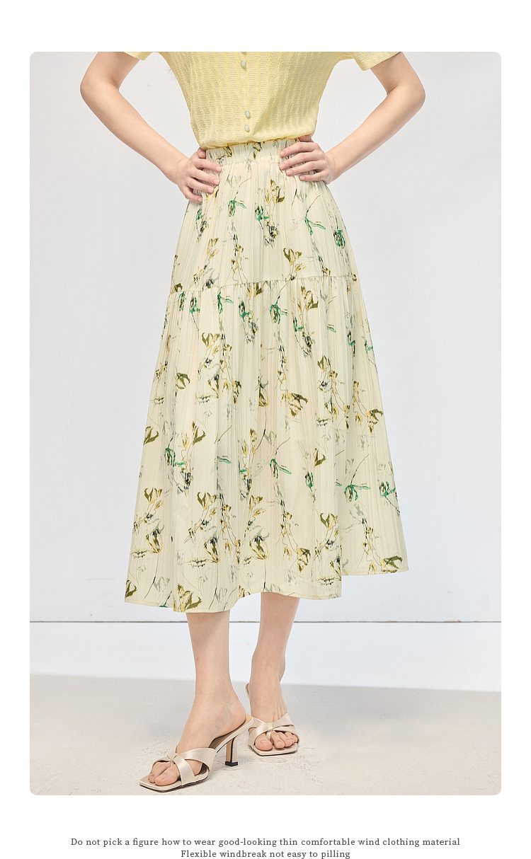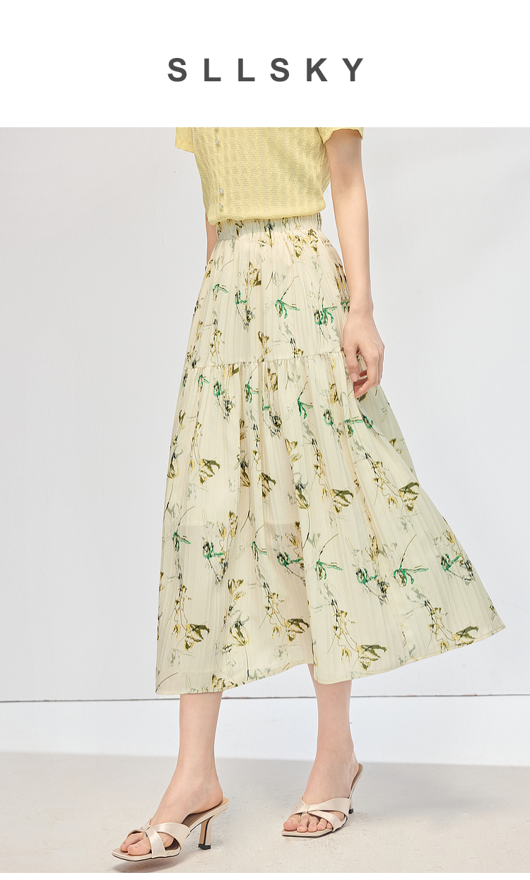 【专属特价】熙世界碎花半身裙女2025夏天新款浪漫清新空气绉感印花a字裙伞裙