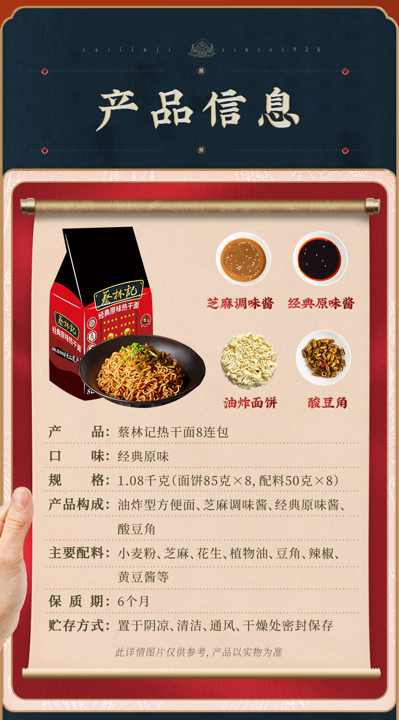 【特产劵199-100】蔡林记方便热干面8连包礼袋装1080g