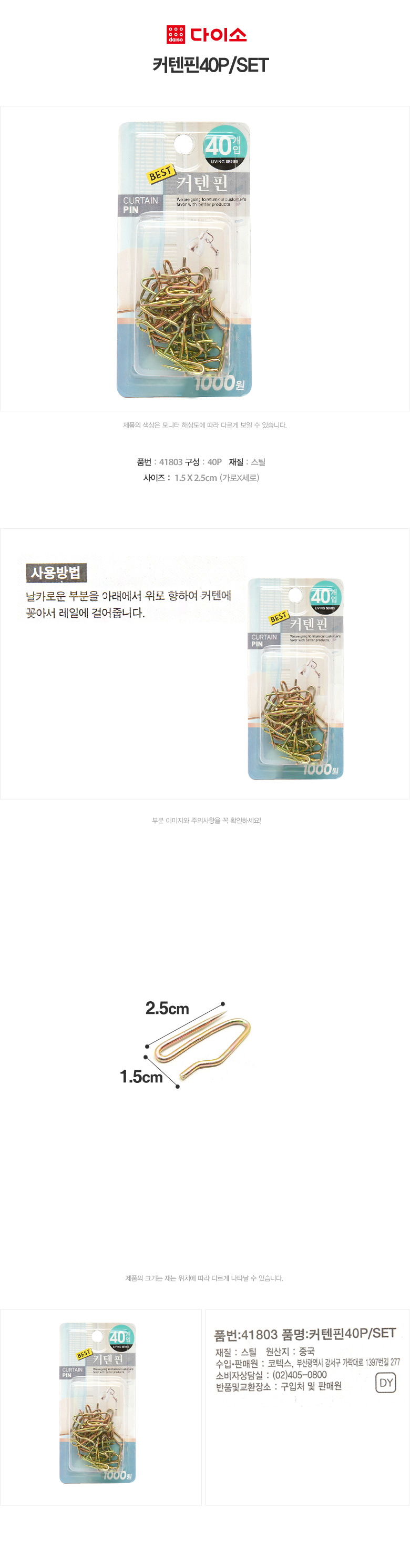 大创窗帘针40P / SET-41803 Daiso Curtain buckle窗帘扣挂钩JPY带授权招加盟代理