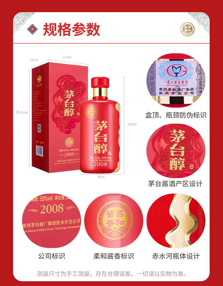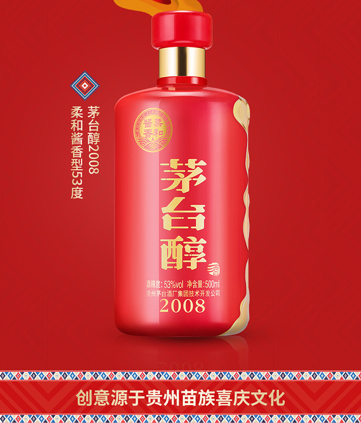 贵州茅台醇2008柔和酱香型白酒53度500ml/1瓶/2瓶/6瓶整箱
