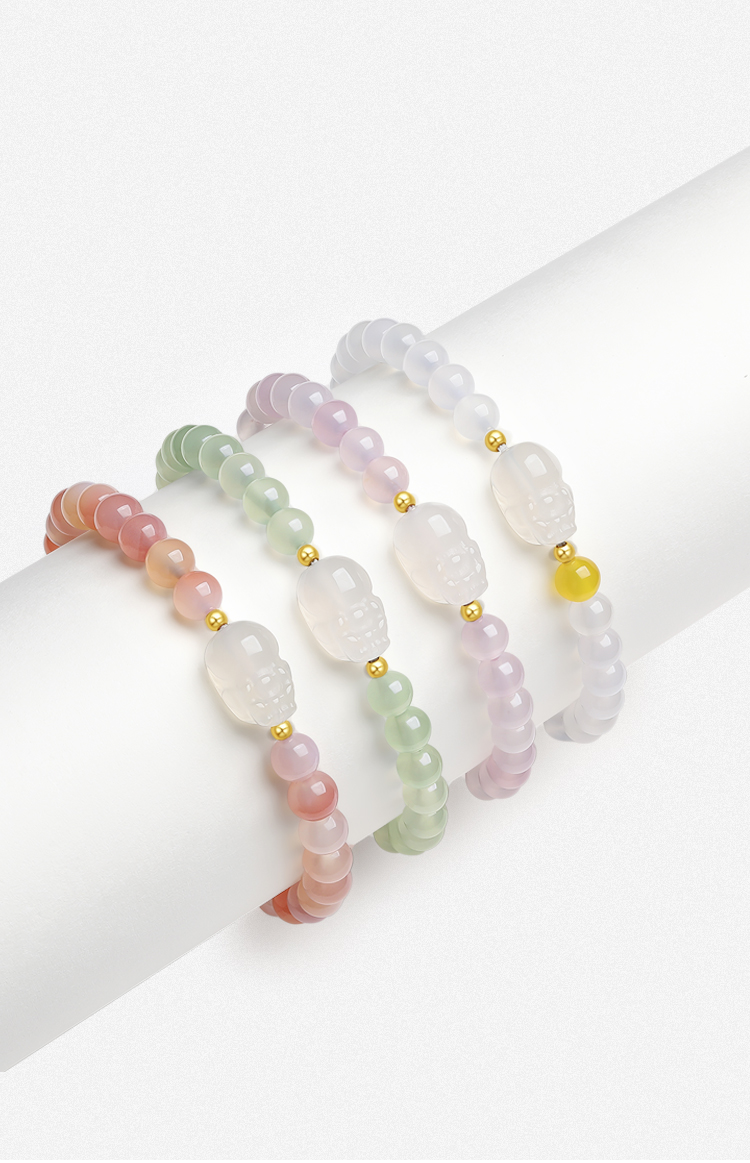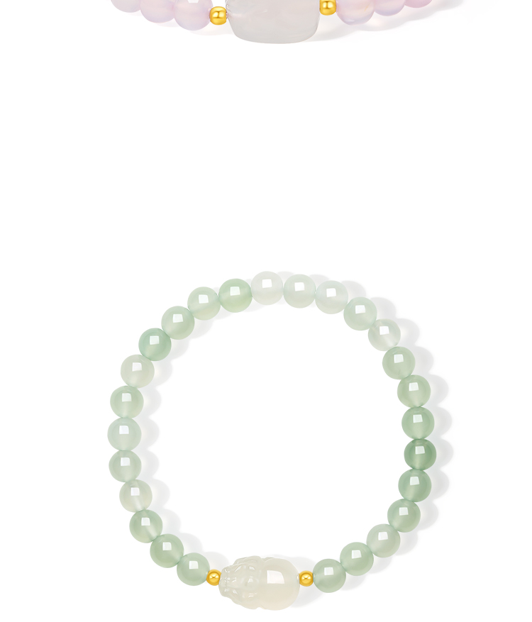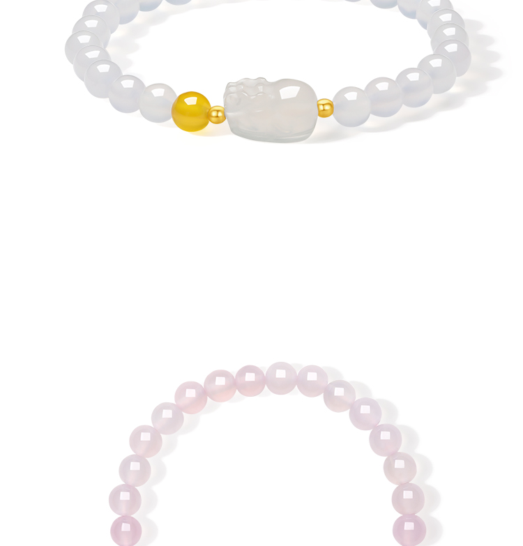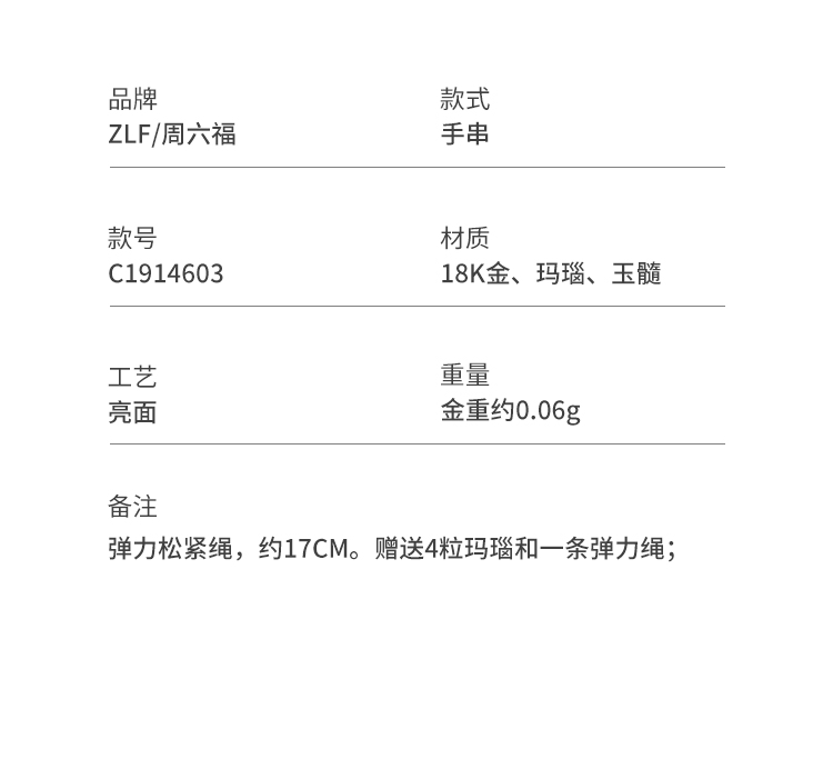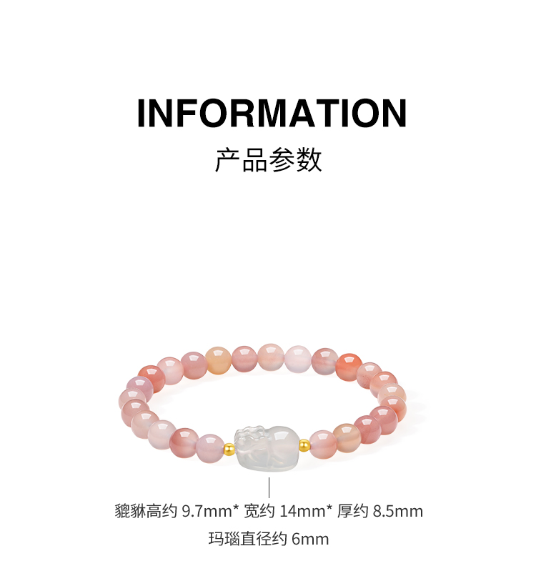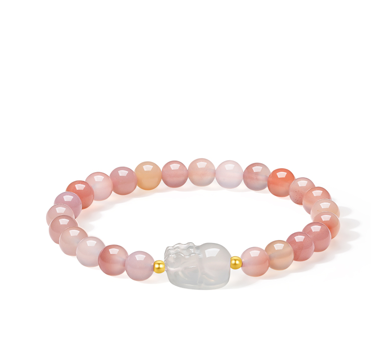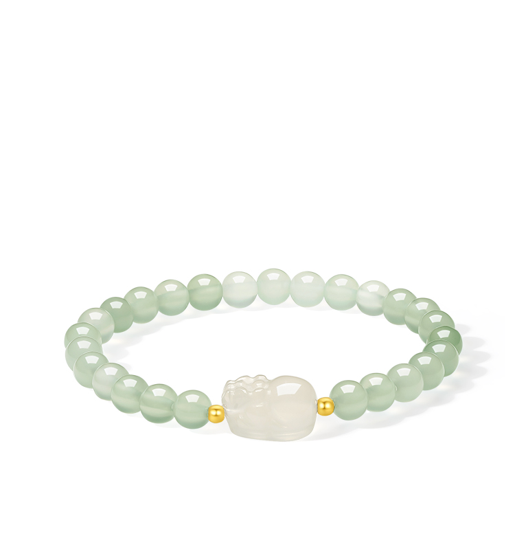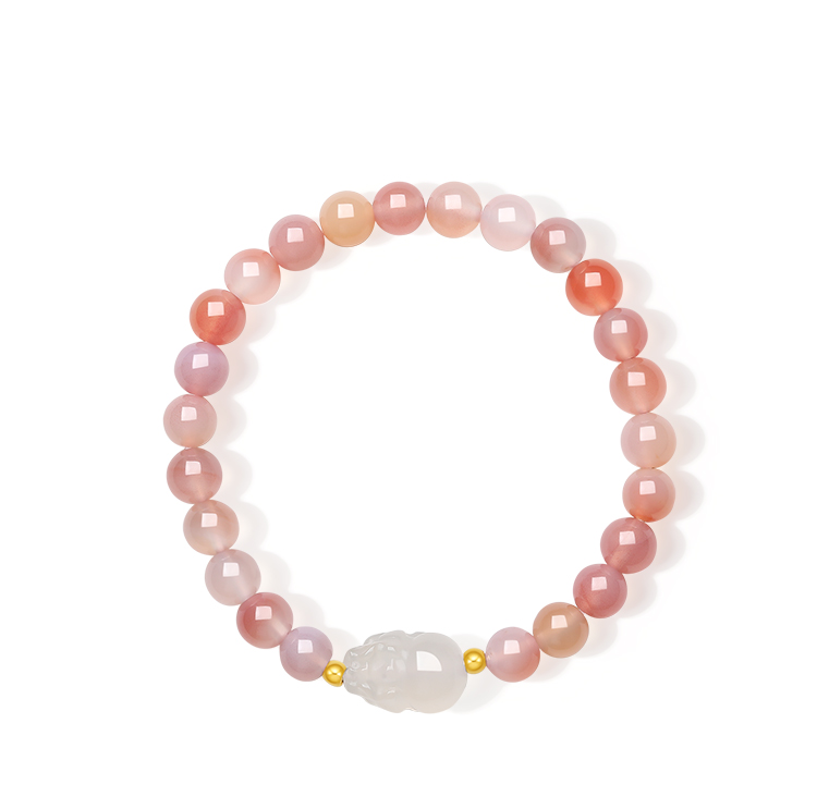 周六福黄18k金貔貅手链女款玉髓金珠手串送女友送女友礼物