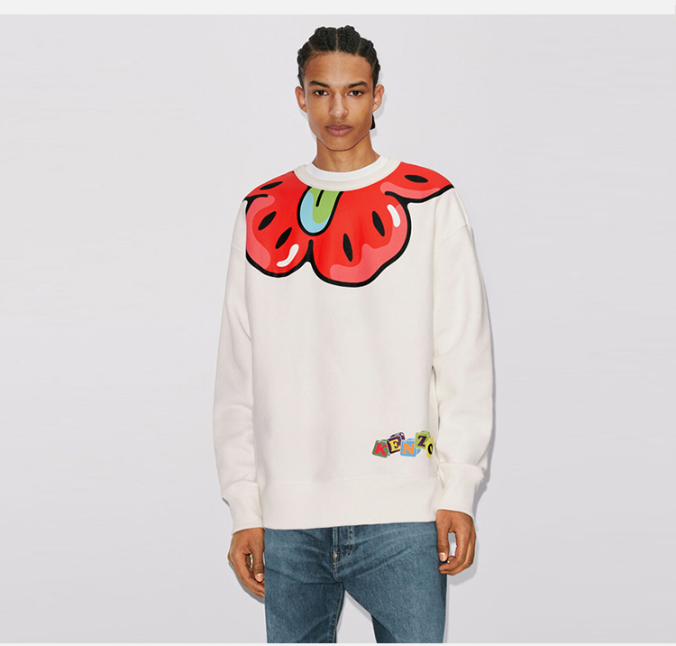 KENZO 高田贤三 男士棉质花朵徽标印花长袖卫衣 白色 FD55 SW476 4MB 02