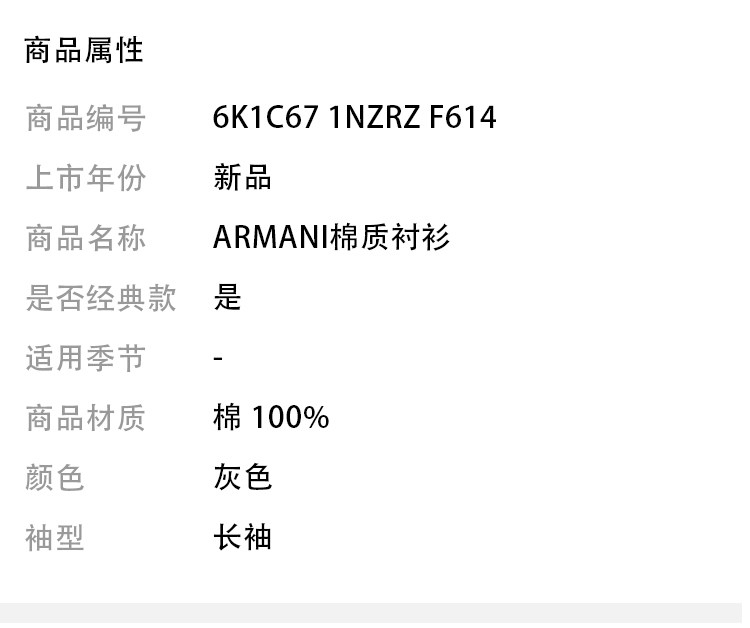 EMPORIO ARMANI 阿玛尼 男士长袖衬衫 灰色 6K1C67 1NZRZ F614