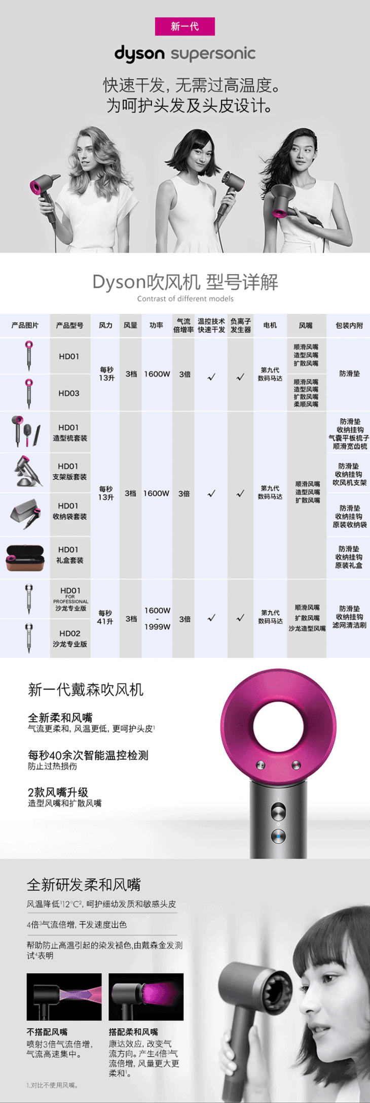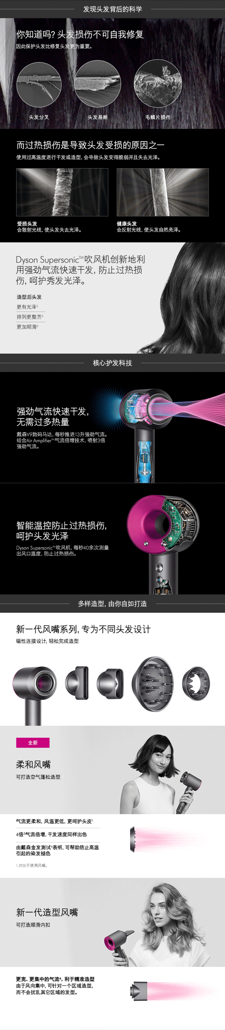 Dyson戴森吹风机Supersonic HD03紫红色负离子大功率护发