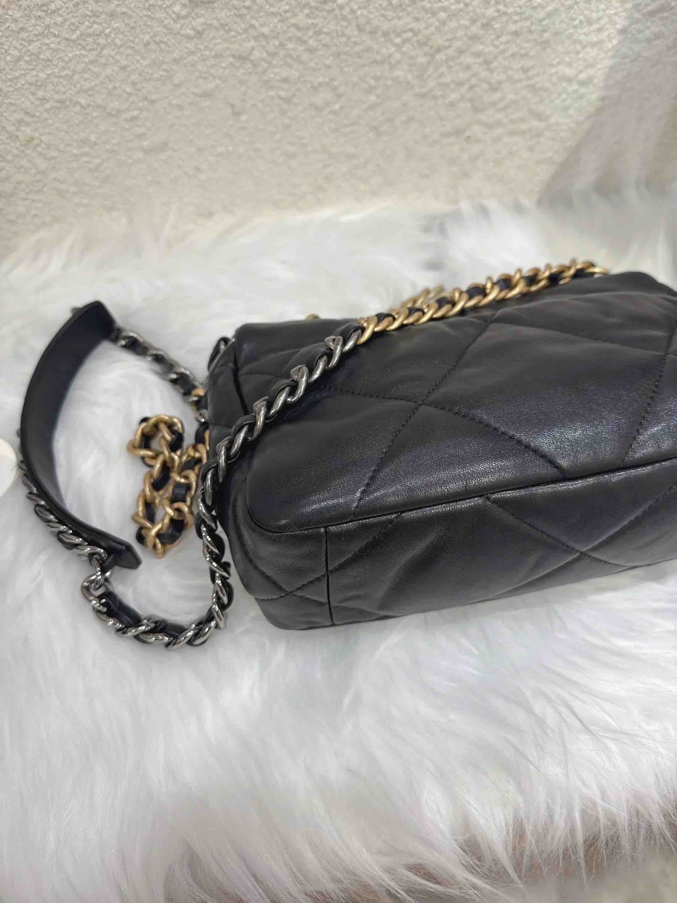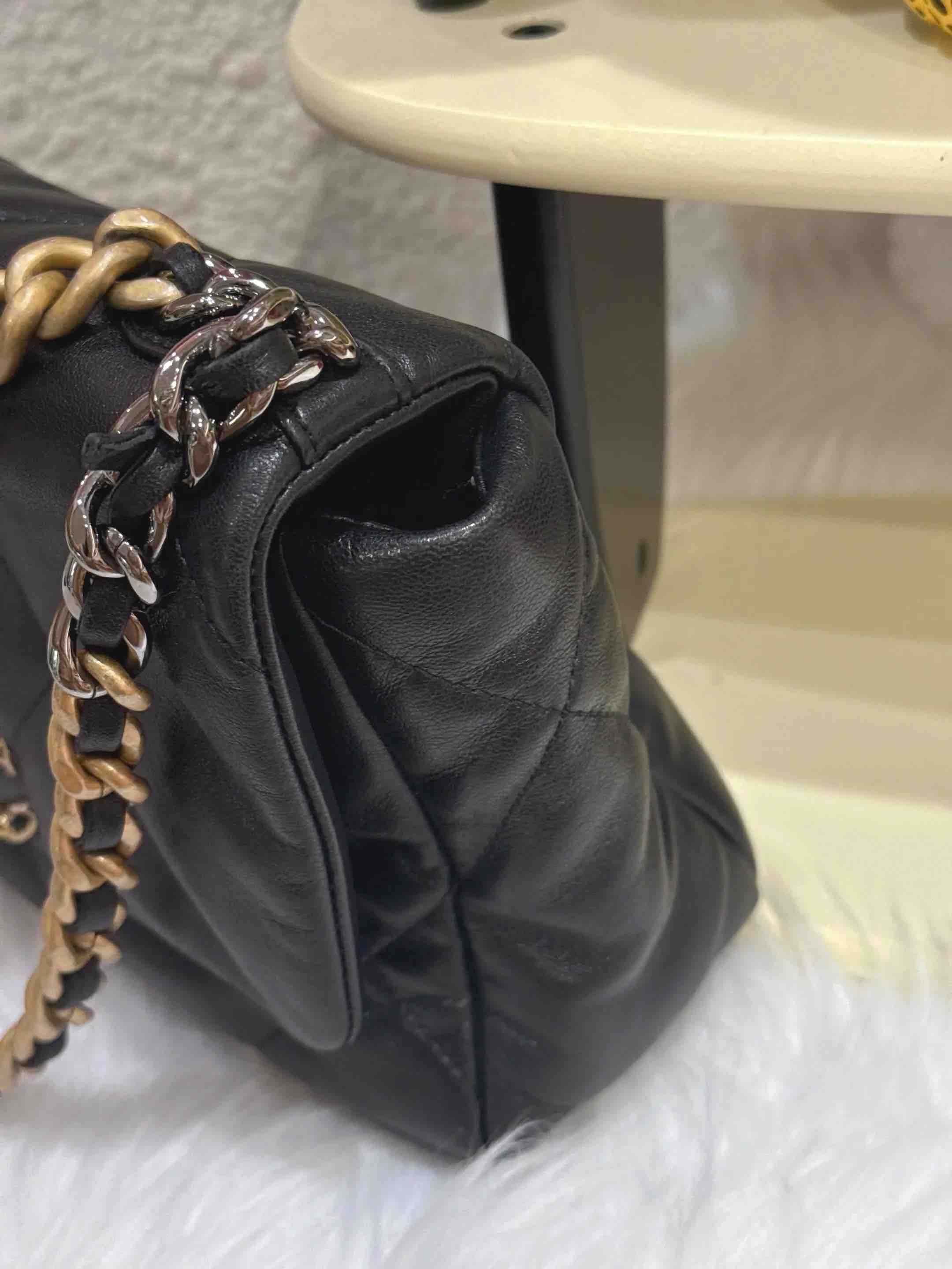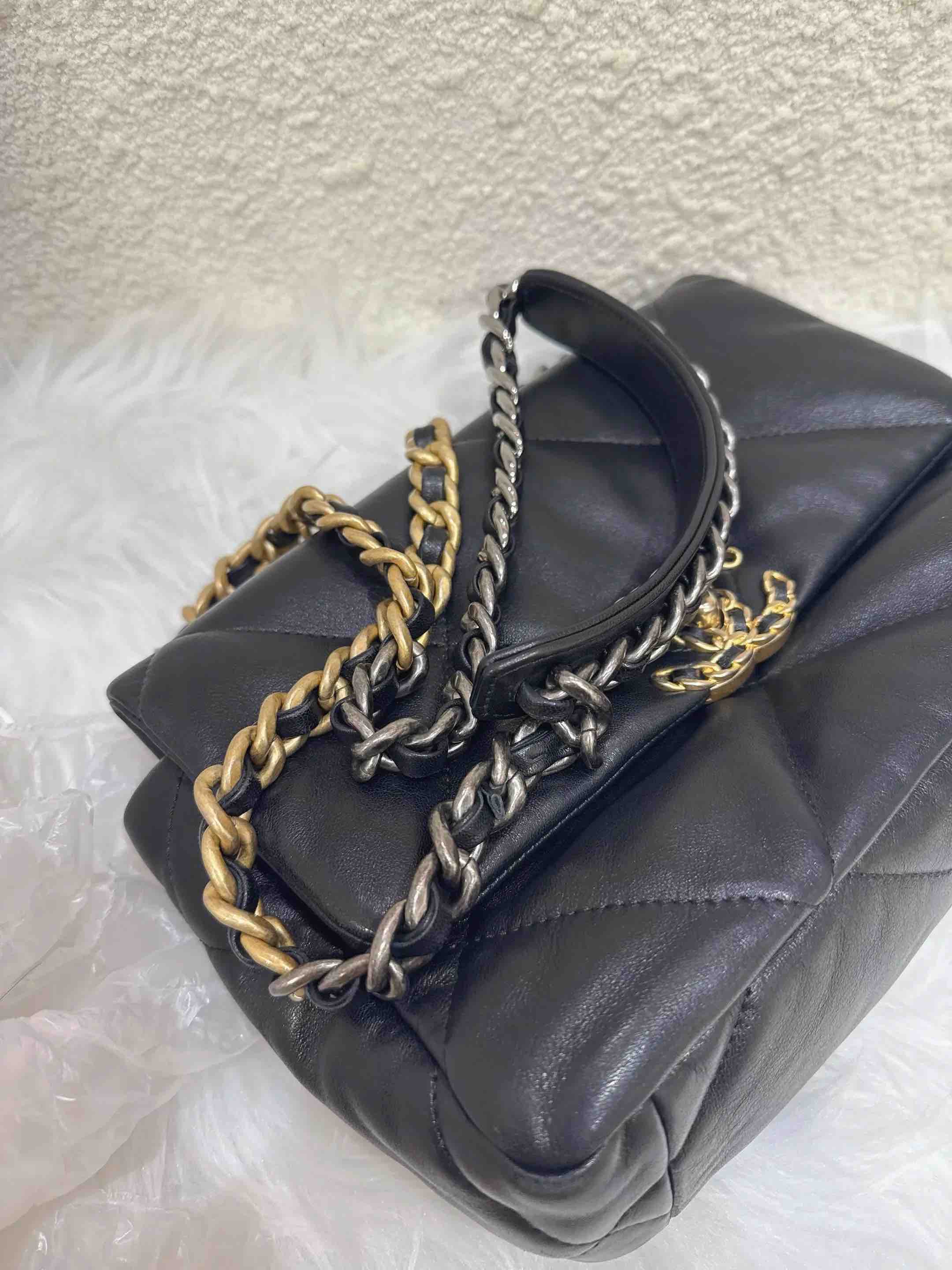 【商品详情】正品二手 Chanel 19bag 小号 黑金 山羊皮 斜挎包✅97新 26*16 镭射30开。被列入Chanel五大金刚之一的帅气包款