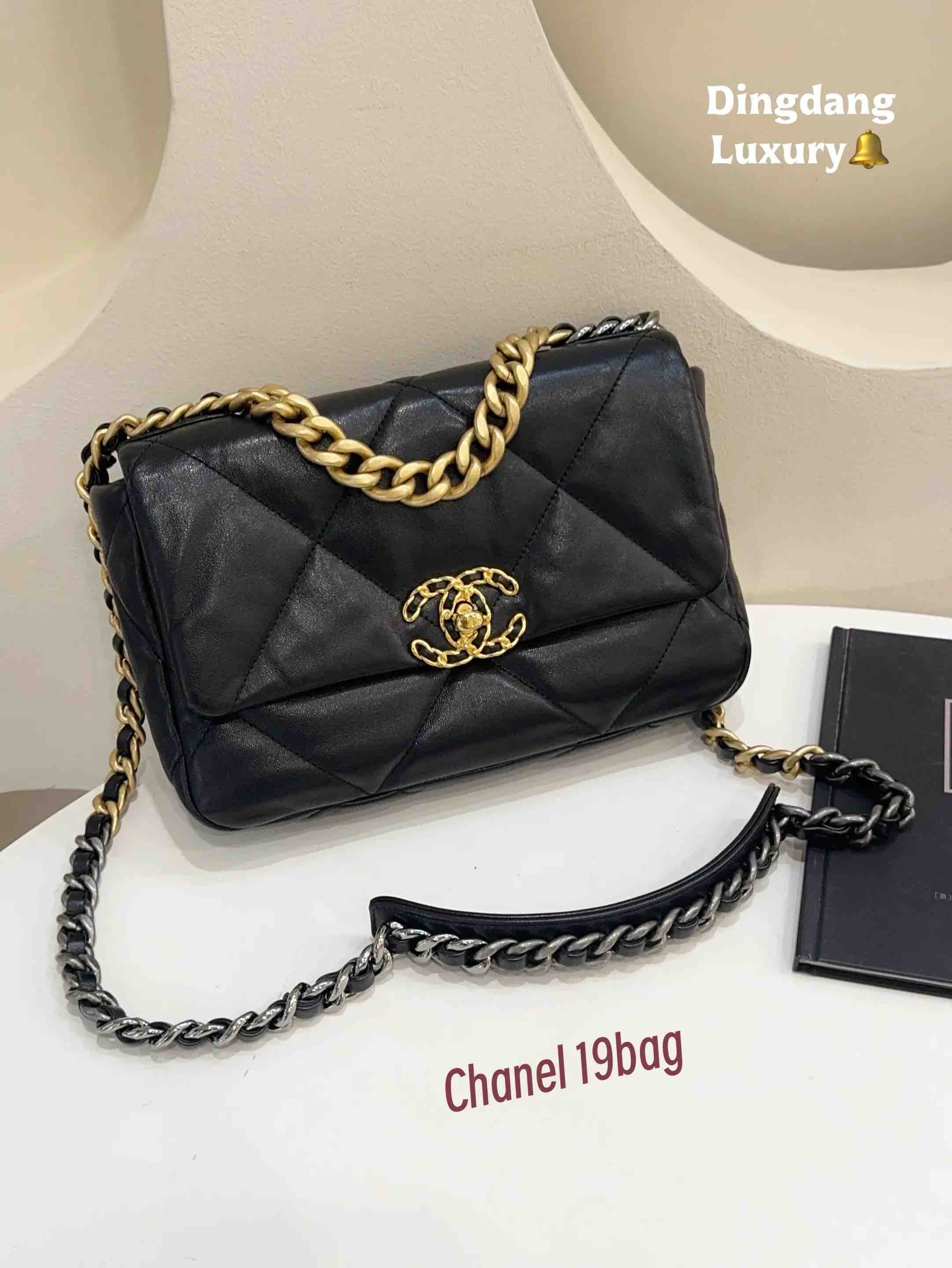 Chanel 19bag 小号 黑金 山羊皮 斜挎包