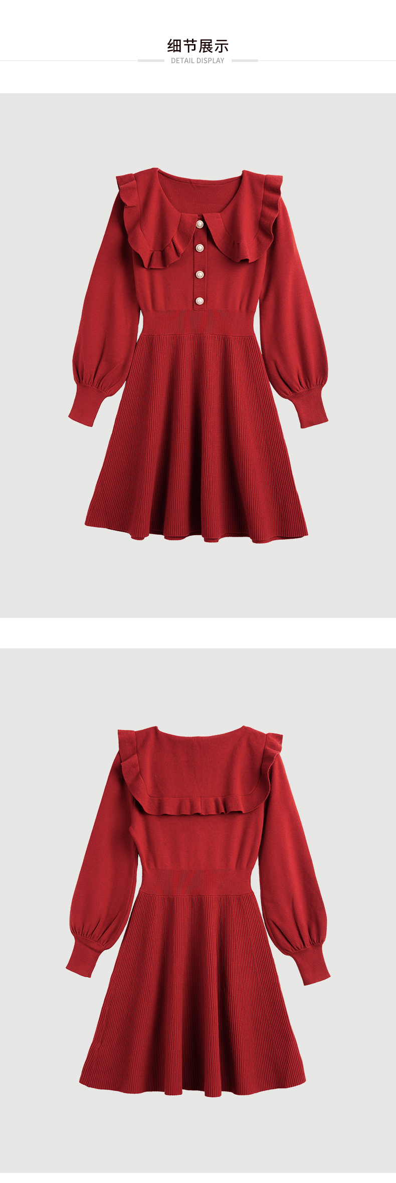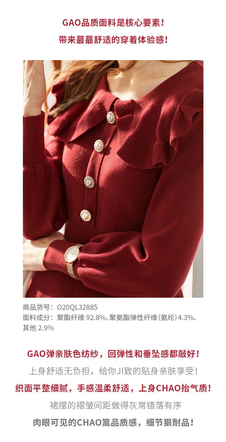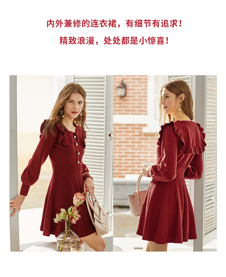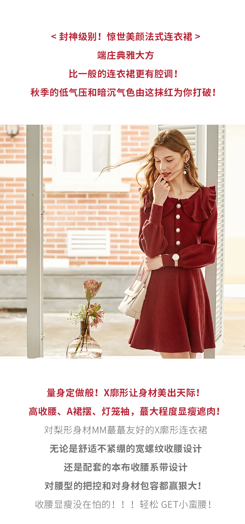 欧芮儿长袖针织连衣裙女气质显瘦收腰2021冬季新品中长款A字裙ins