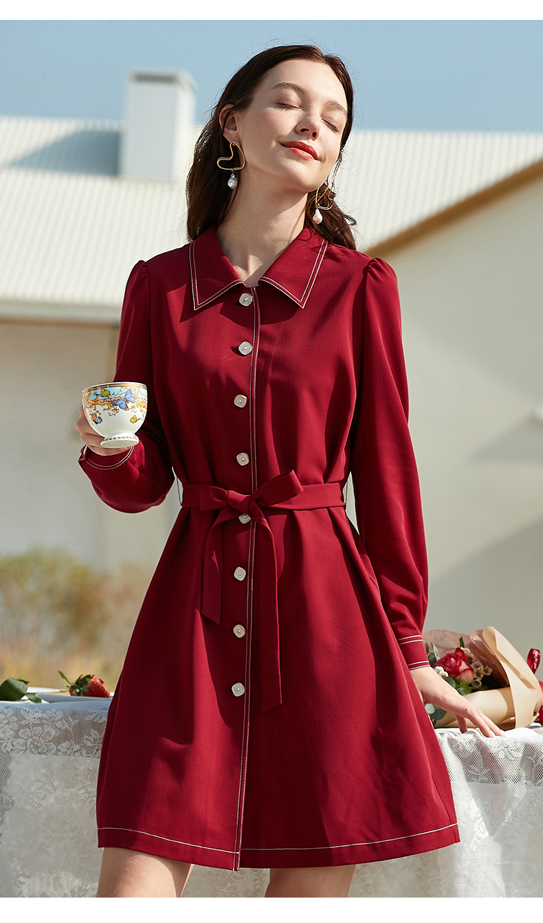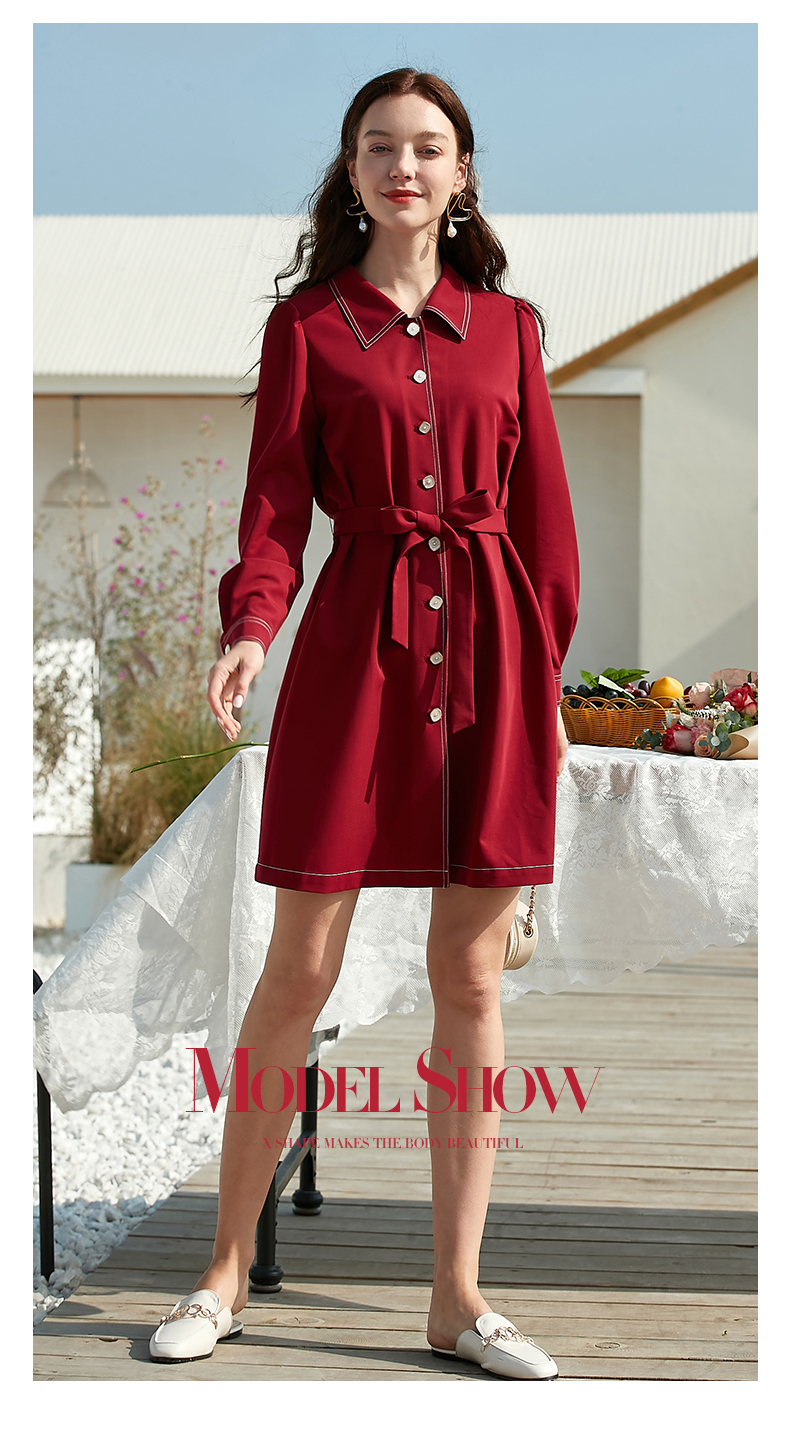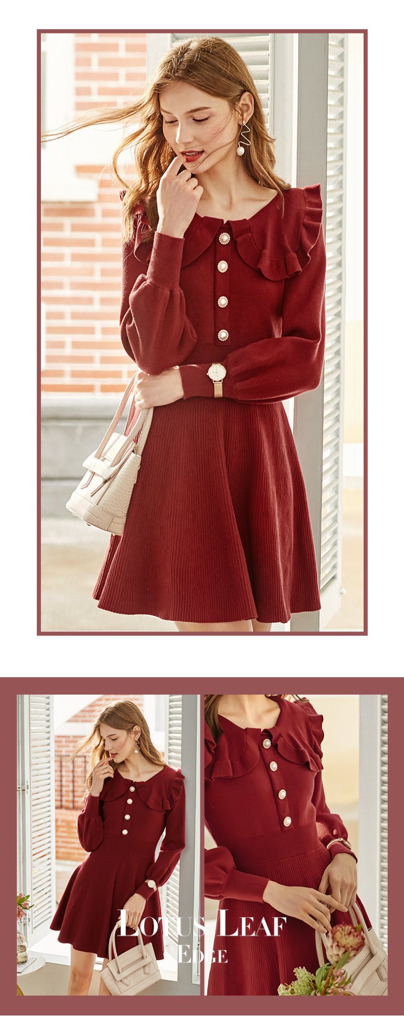 欧芮儿长袖针织连衣裙女气质显瘦收腰2021冬季新品中长款A字裙ins