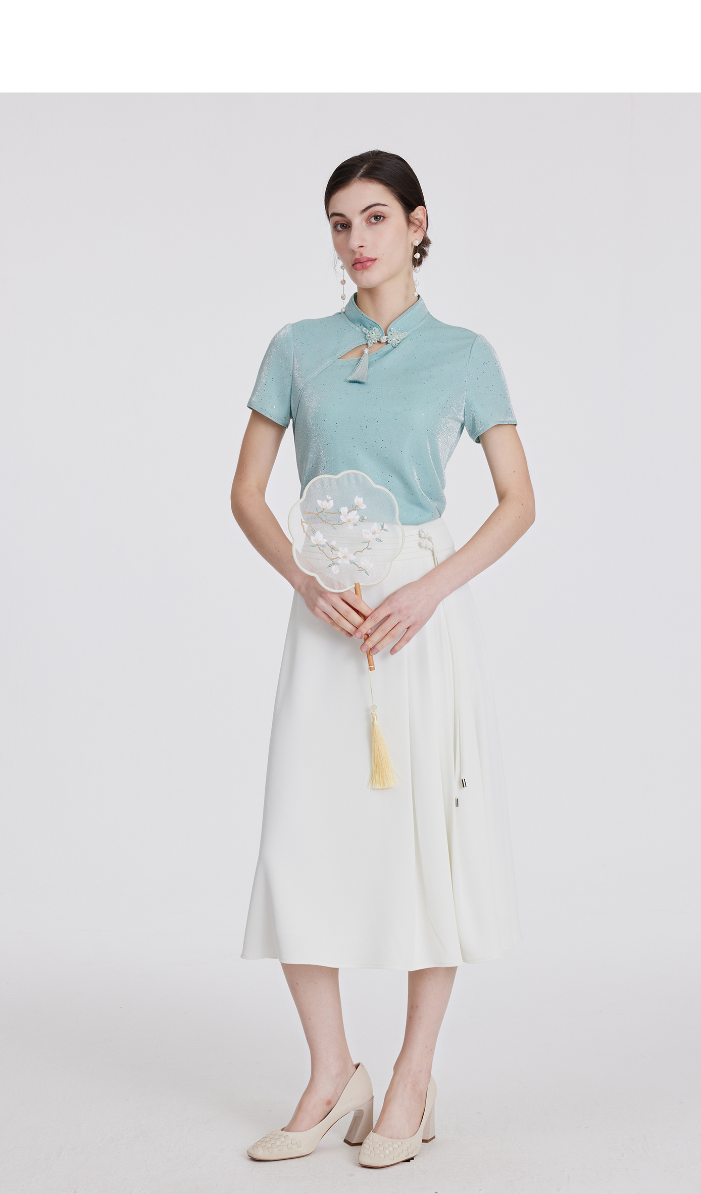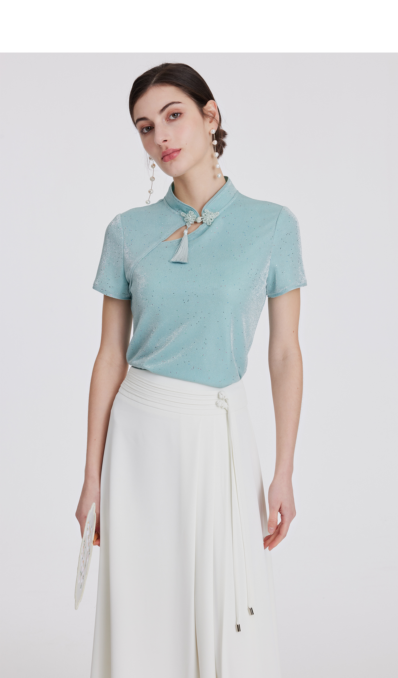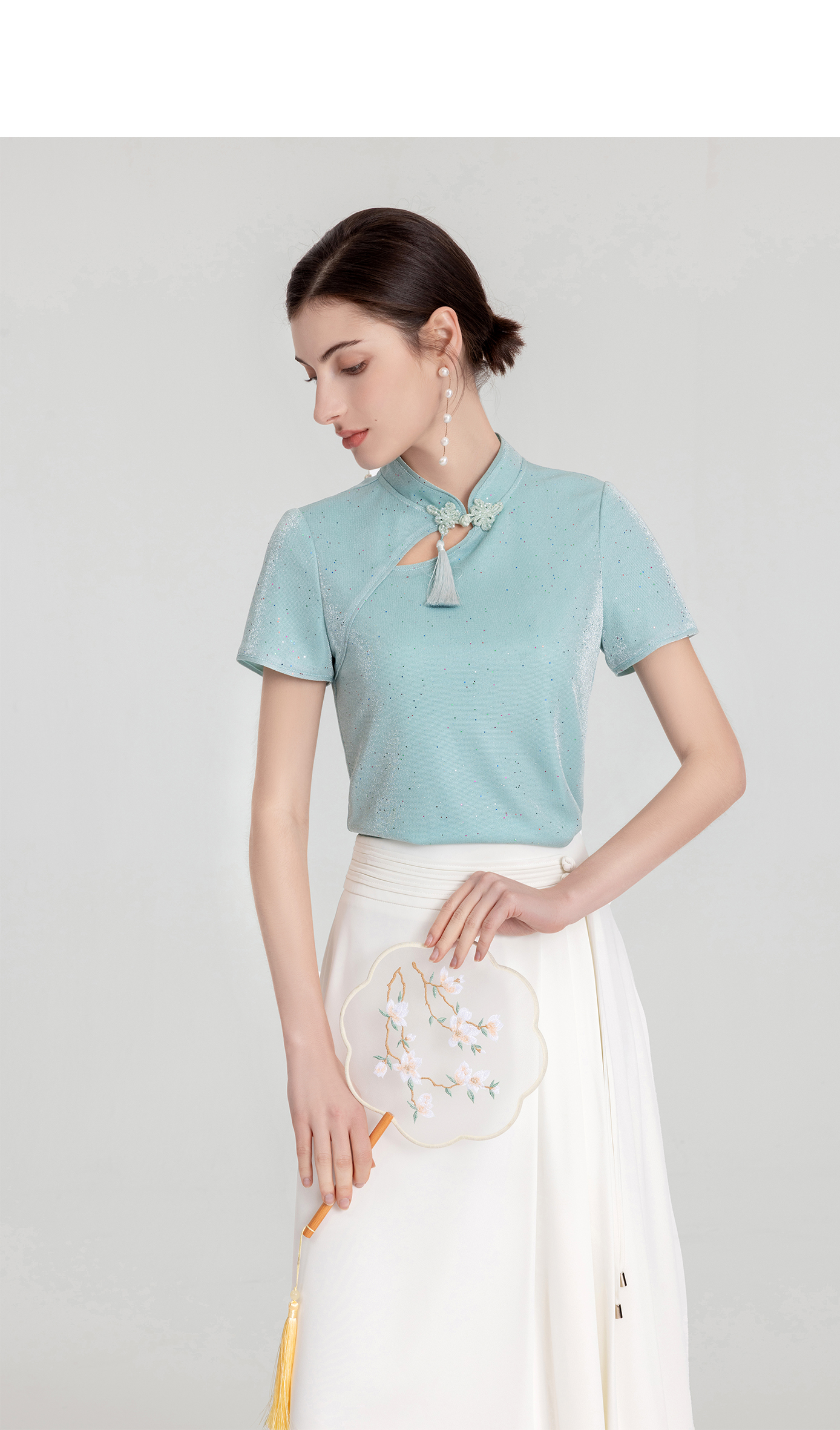 司歌国风弹力上衣立领修身套头优雅T891044X