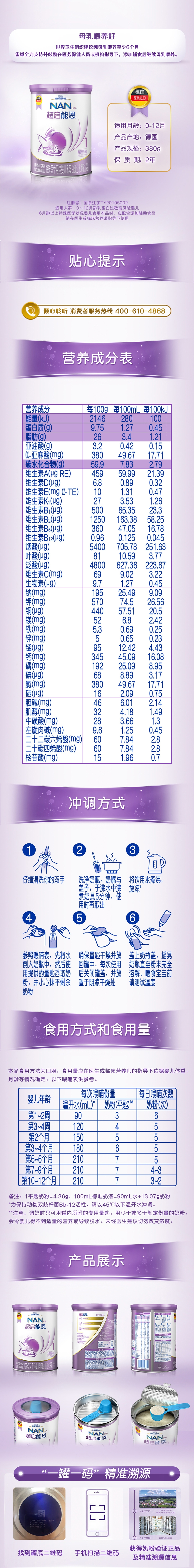 雀巢超启能恩婴幼儿适度水解奶粉1段380g小罐装