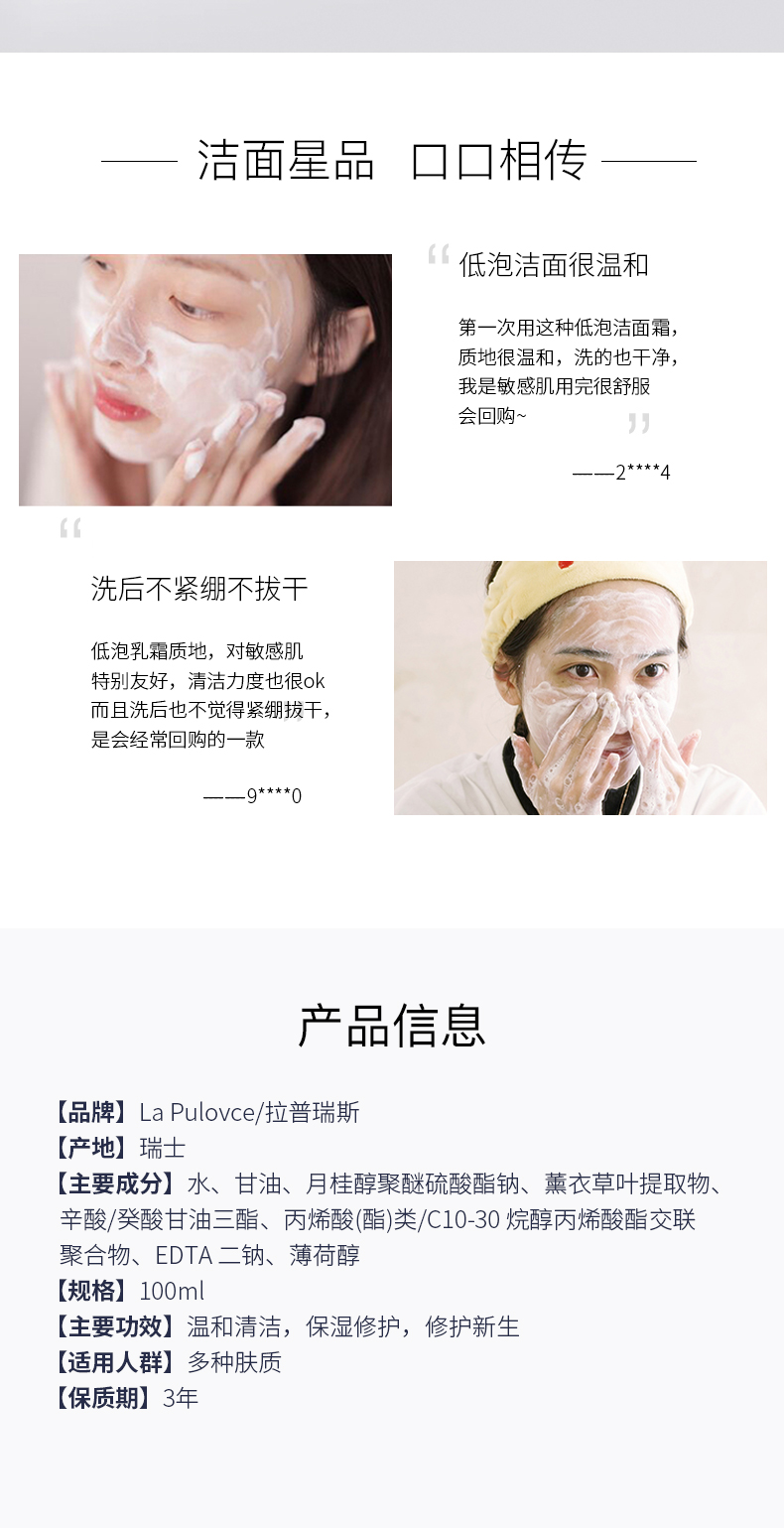 La Pulovce拉普瑞斯新生修复洁面霜深层清洁收缩毛孔洗面奶100ml