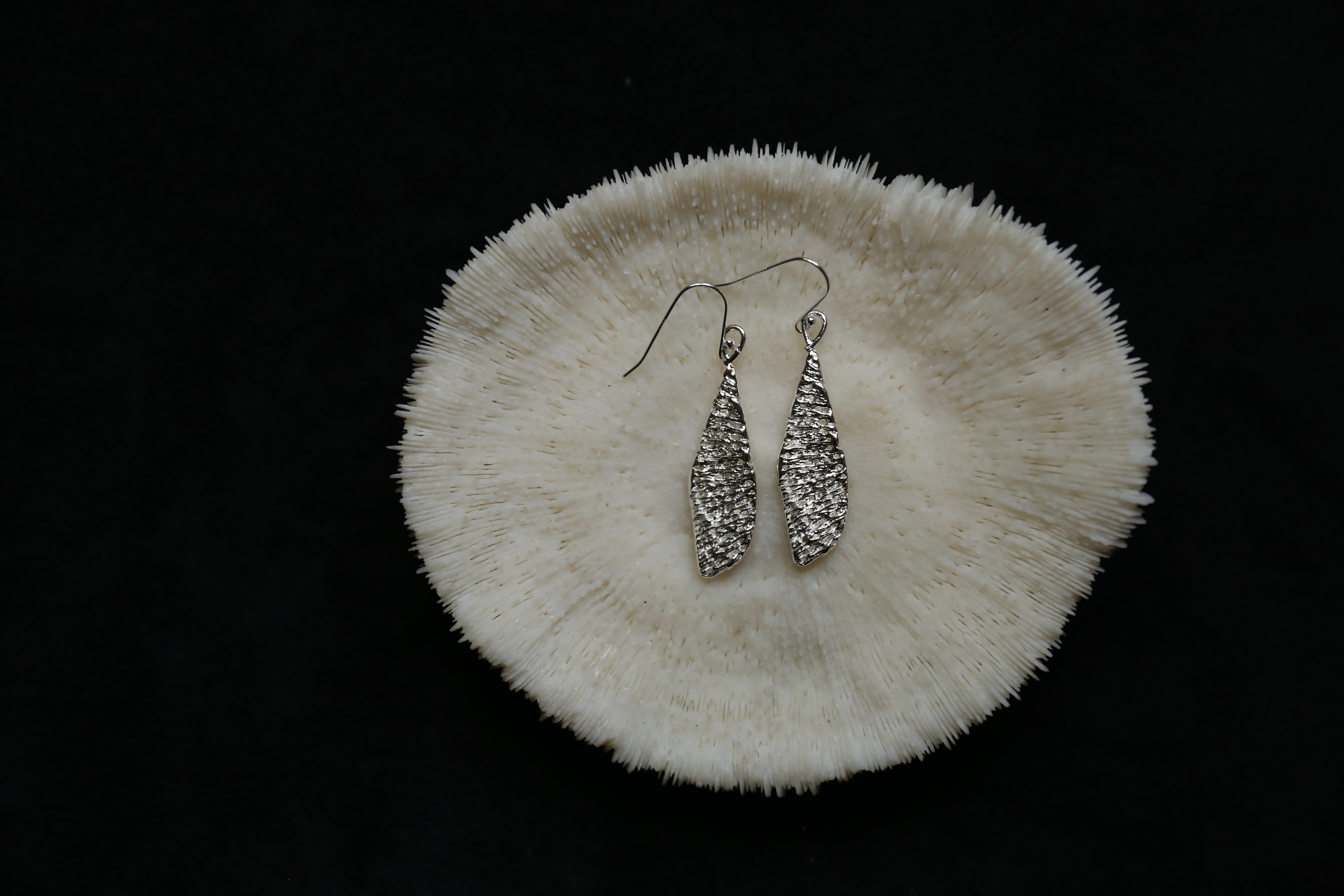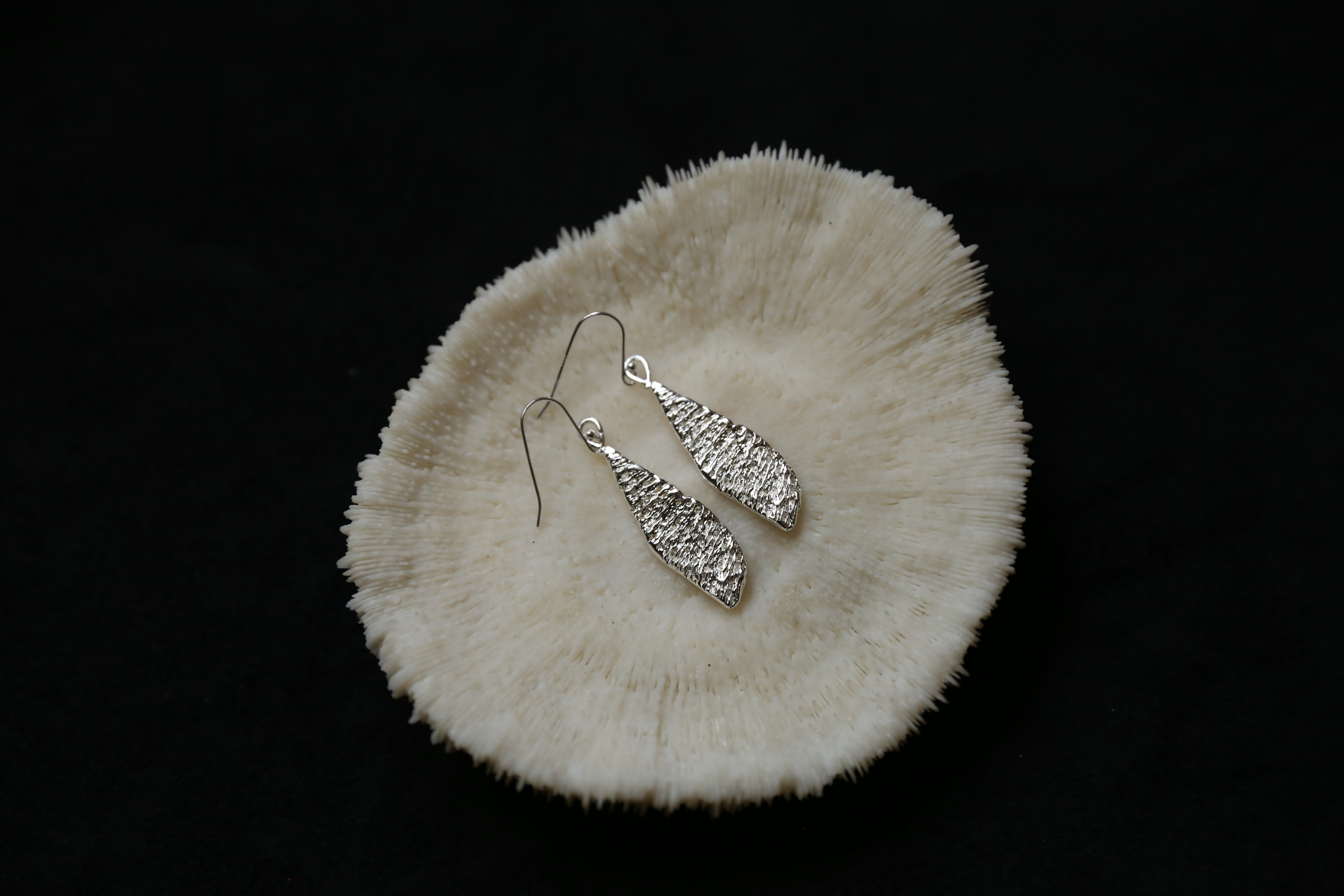 925银手工珊瑚肌理耳环