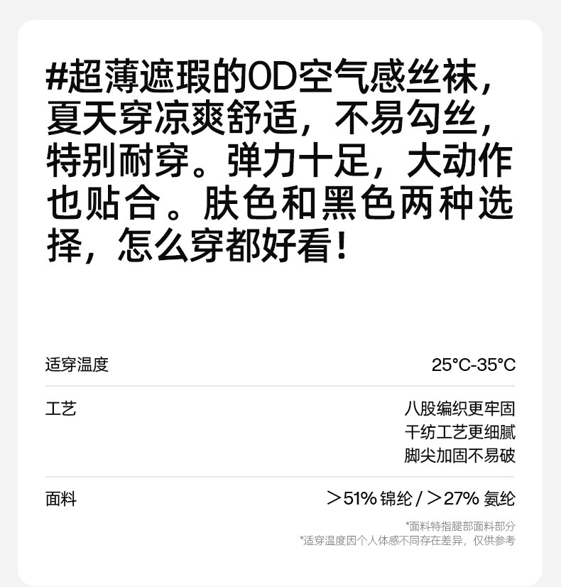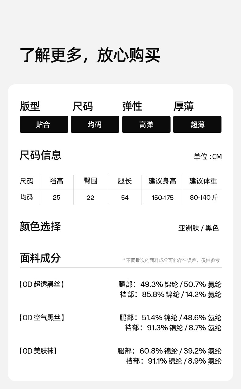 拍2件减10元 业界光腿神器鼻祖!天猫百万销量在售! 小野和子®0D空气系列光腿神器 高透不假面,自带柔焦磨皮感,腿上小瑕疵一键隐形 微压显瘦不勒肉,弹力超大,梨形粗腿也能轻松穿