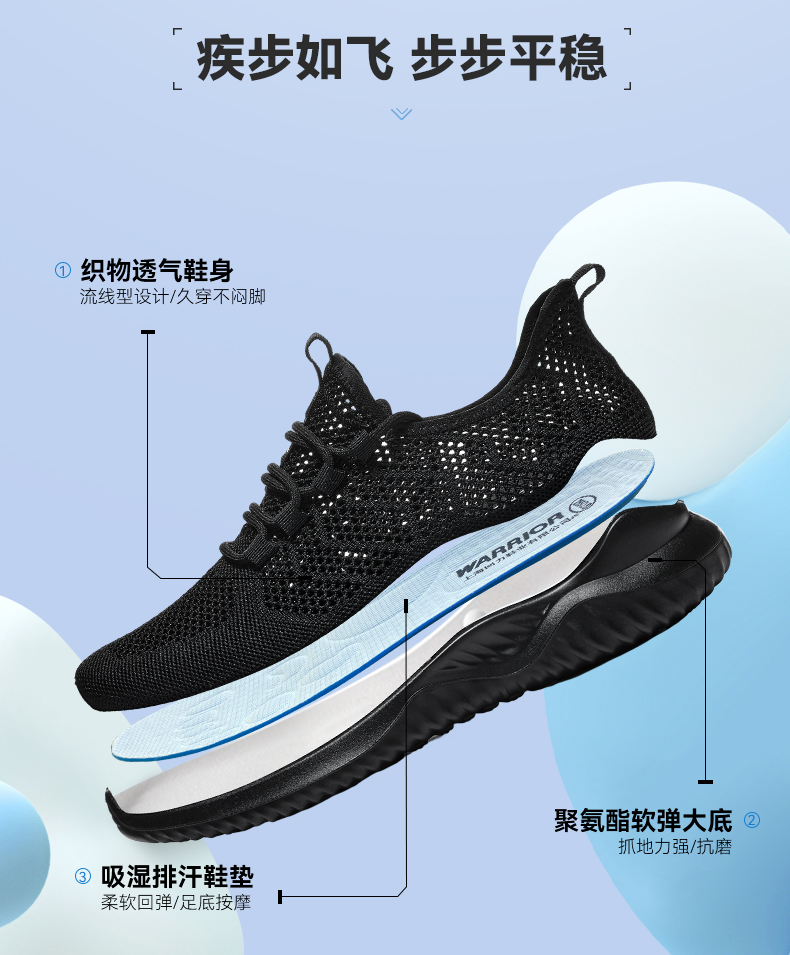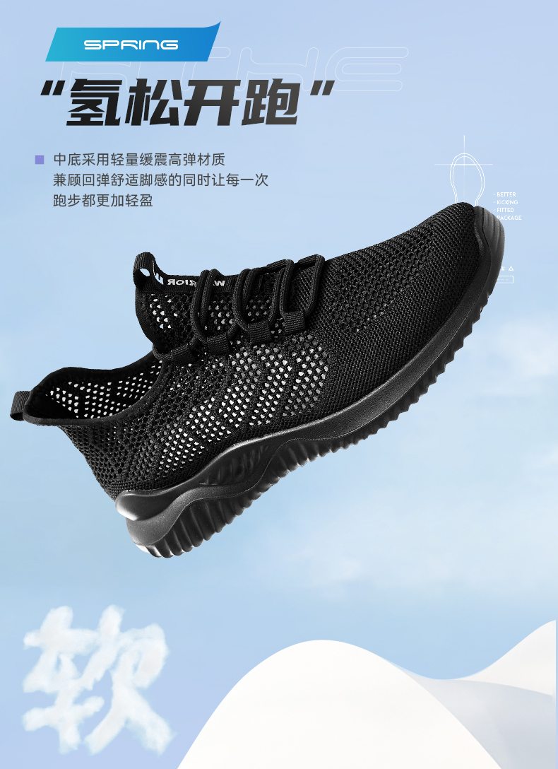 回力运动鞋男鞋大网孔夏季透气鞋软底黑色休闲鞋薄款网鞋
