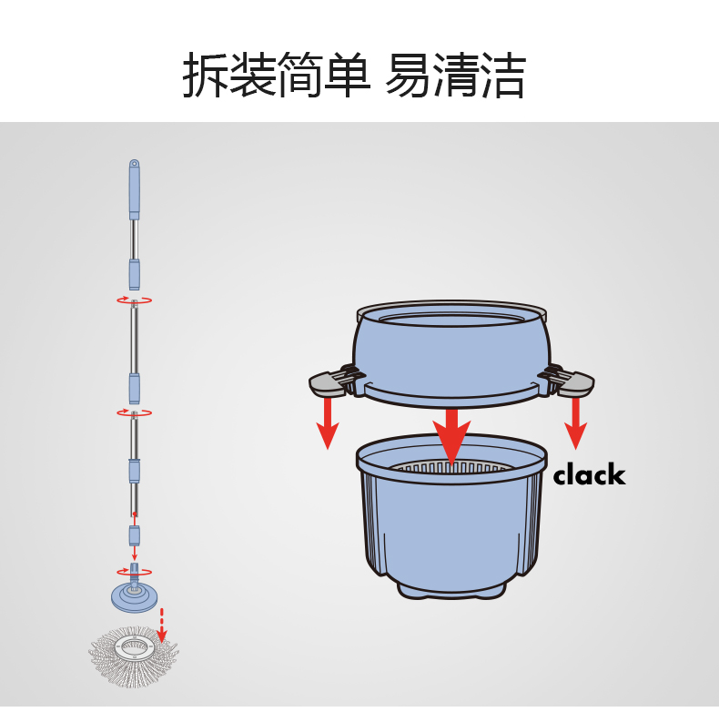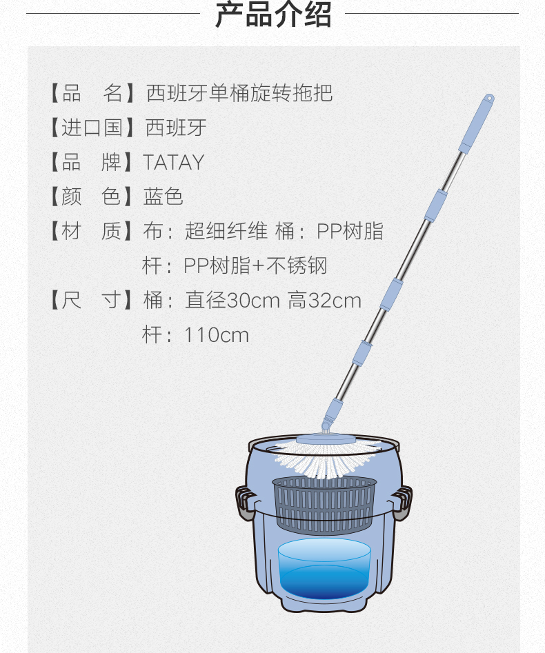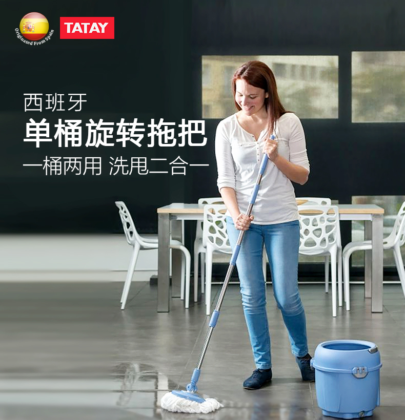 新品利快旋转拖把西班牙原装进口TATAY甩干桶榨水桶圆头拖把套装