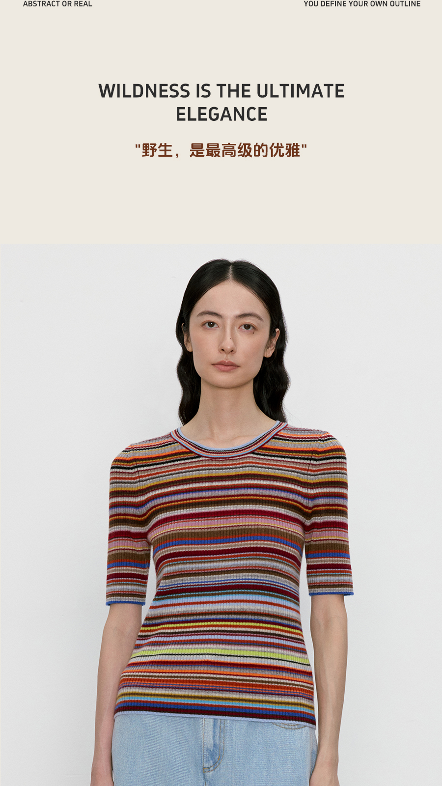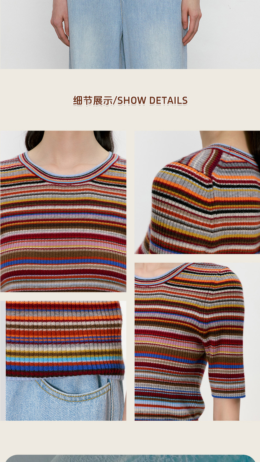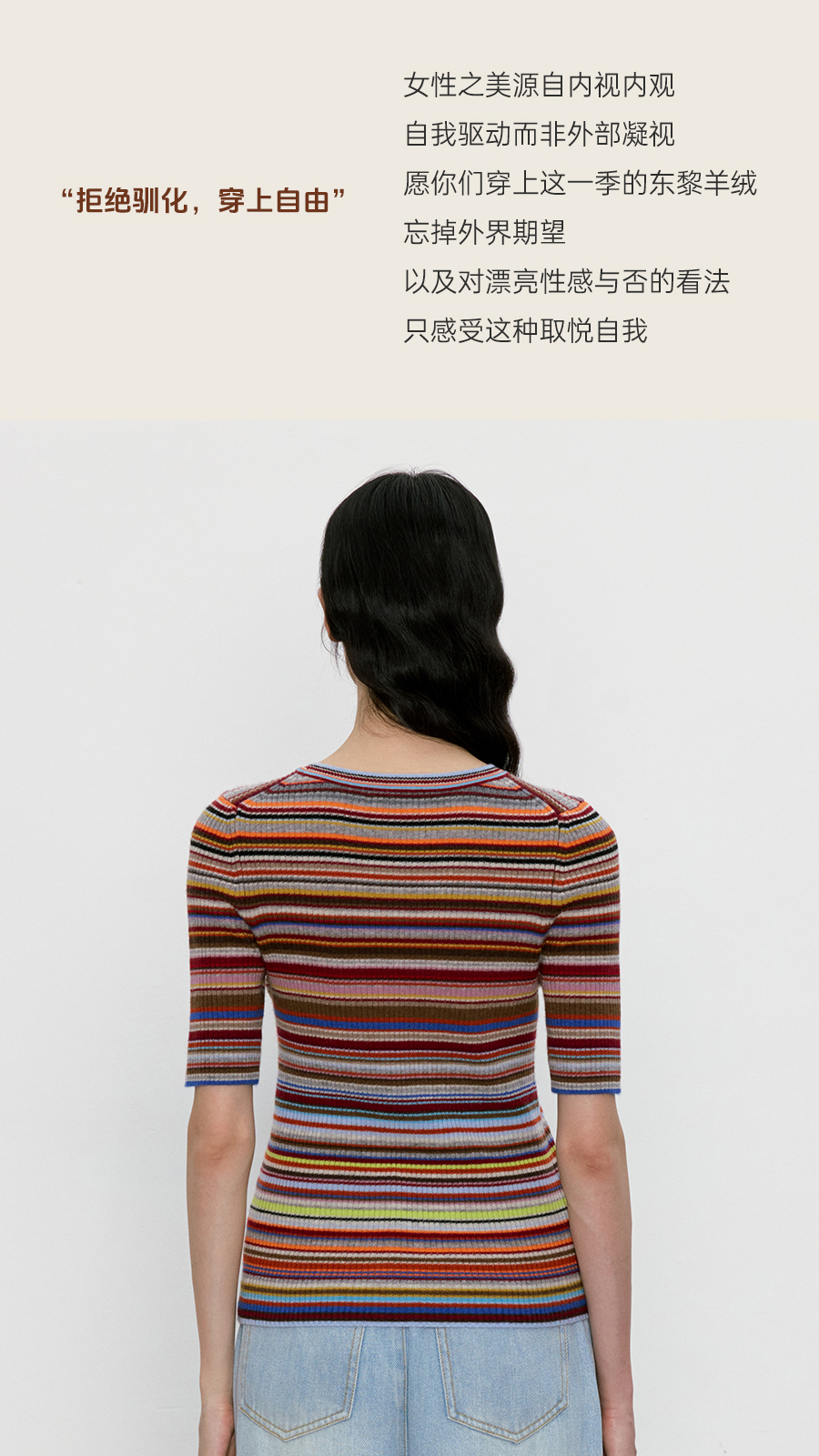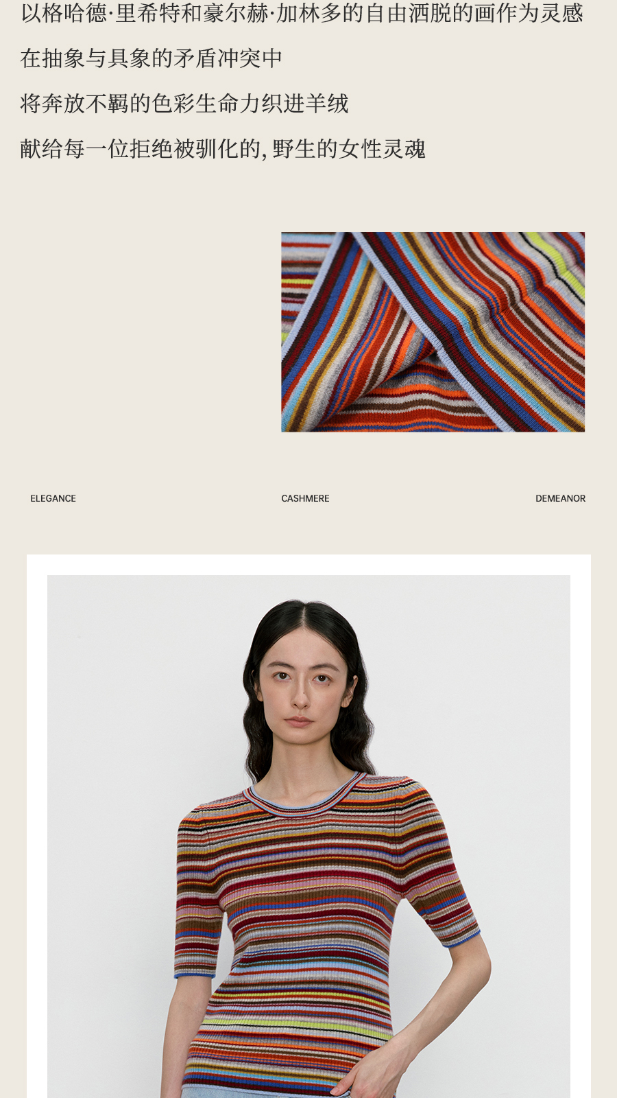 东黎 • 我不被驯化 里希特条纹 山羊绒女士秋季彩条半袖 5515