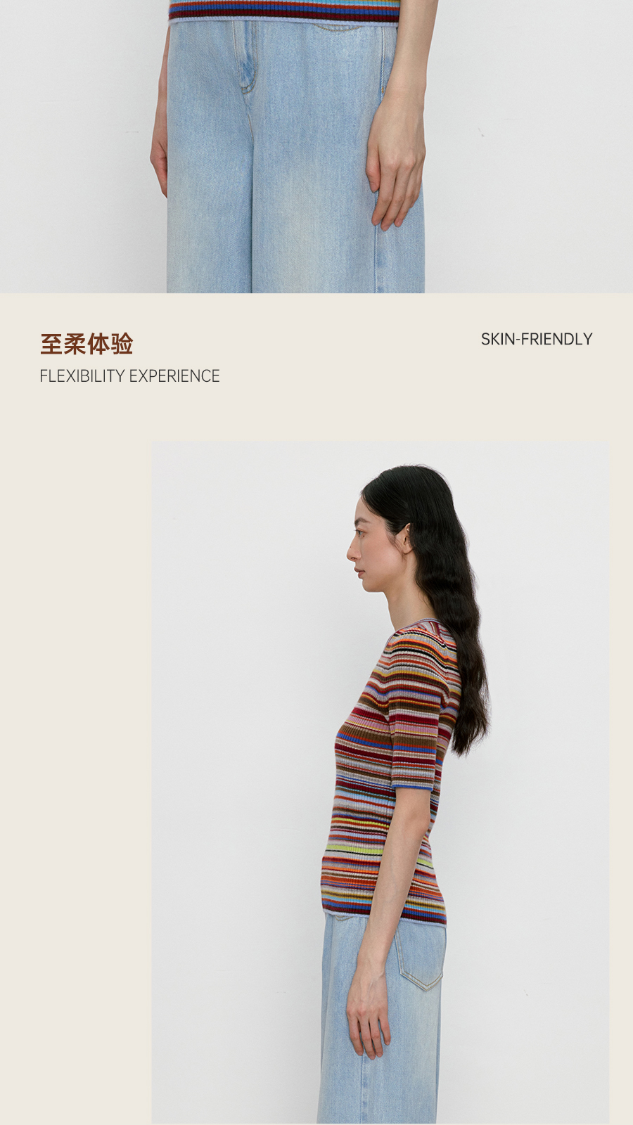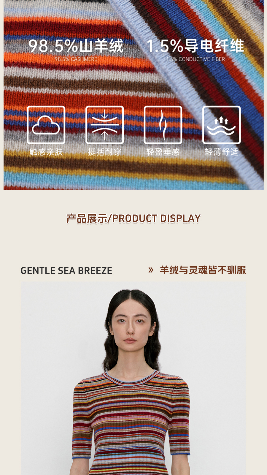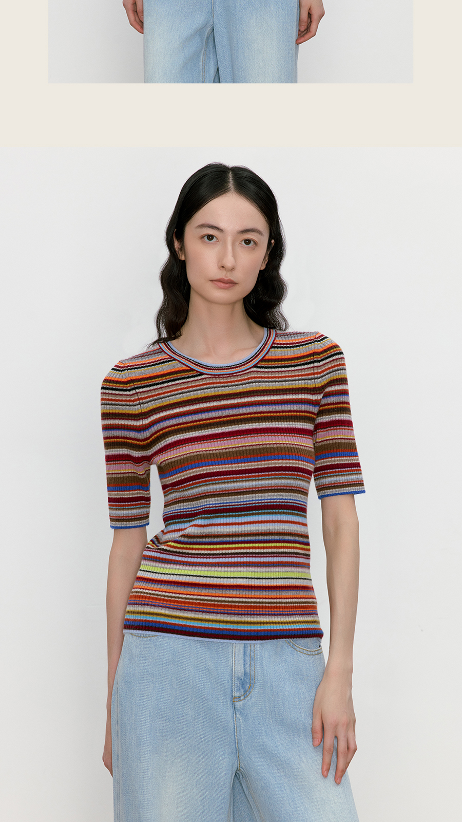 东黎 • 我不被驯化 里希特条纹 山羊绒女士秋季彩条半袖 5515