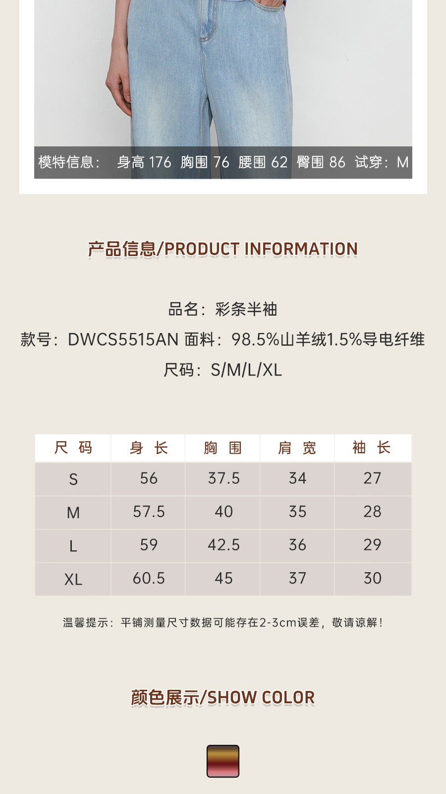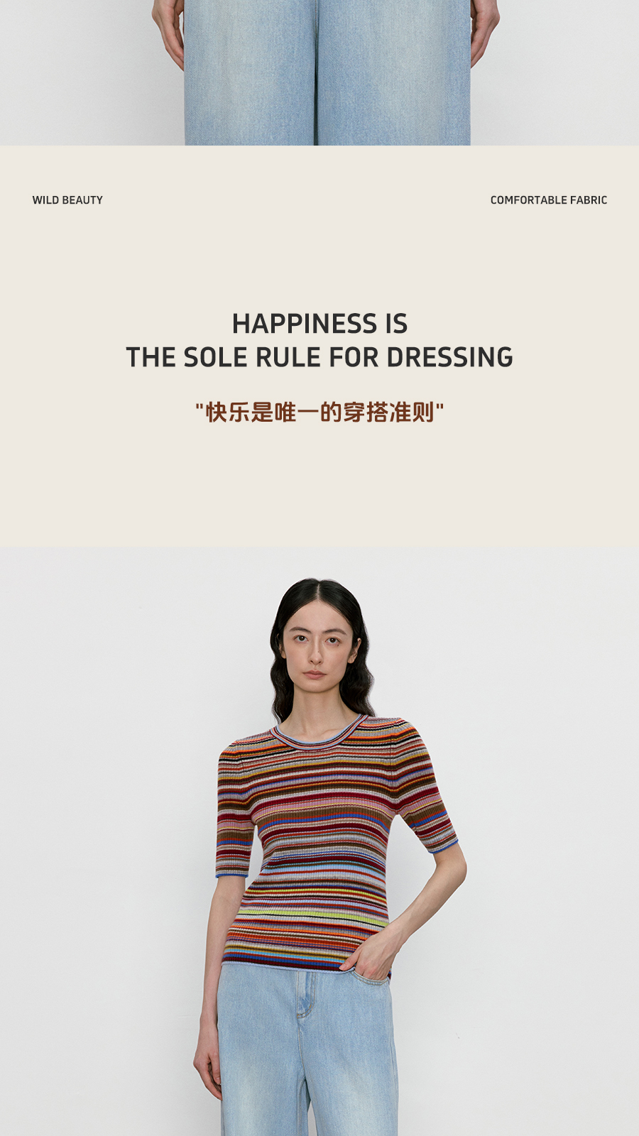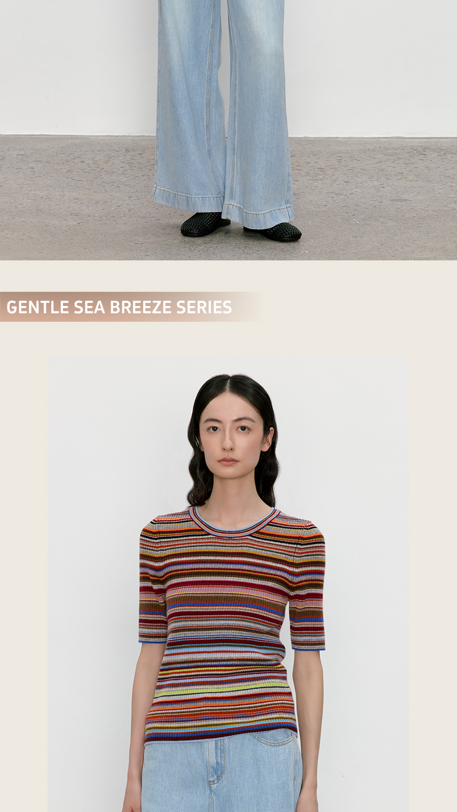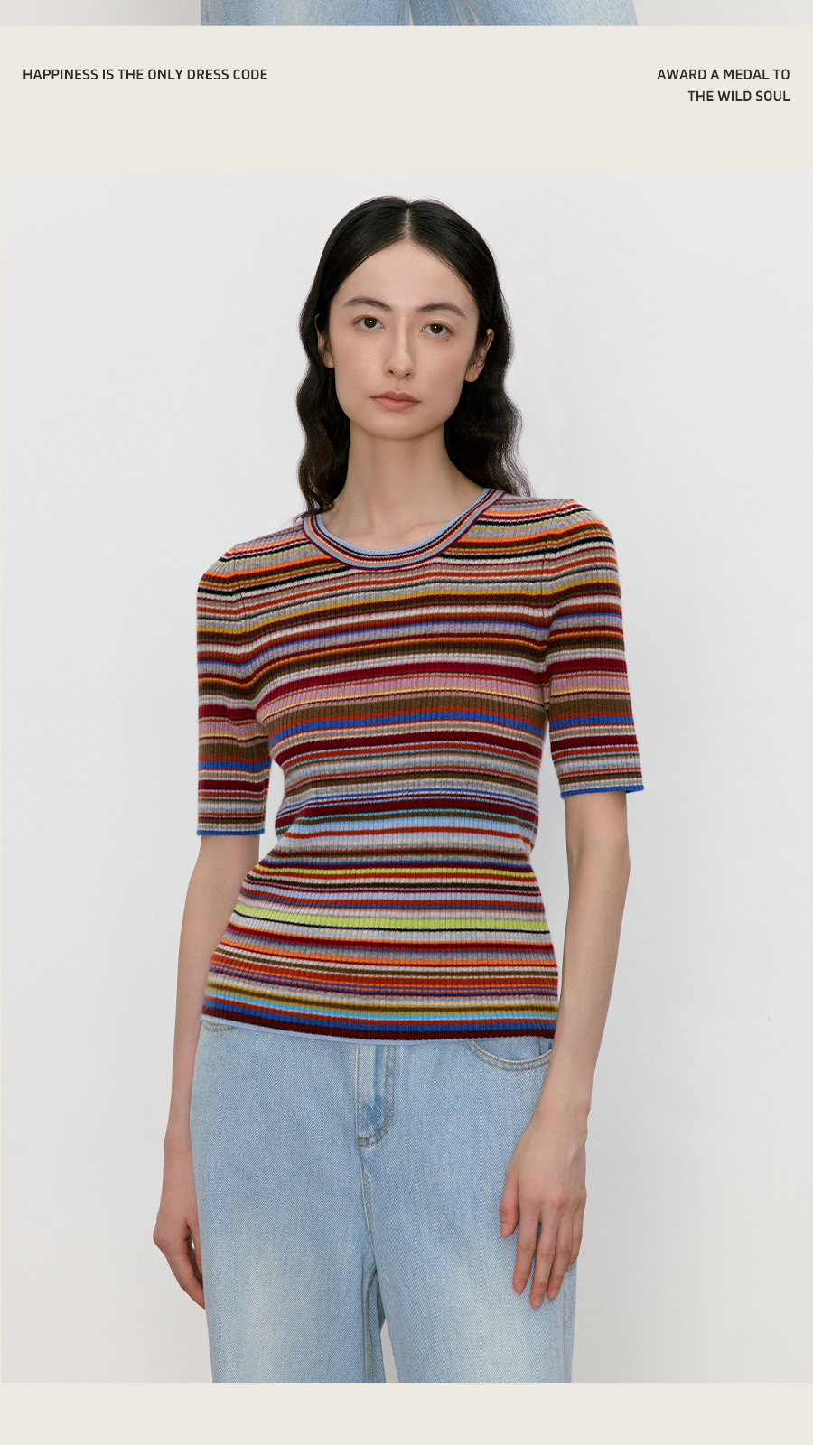 东黎 • 我不被驯化 里希特条纹 山羊绒女士秋季彩条半袖 5515