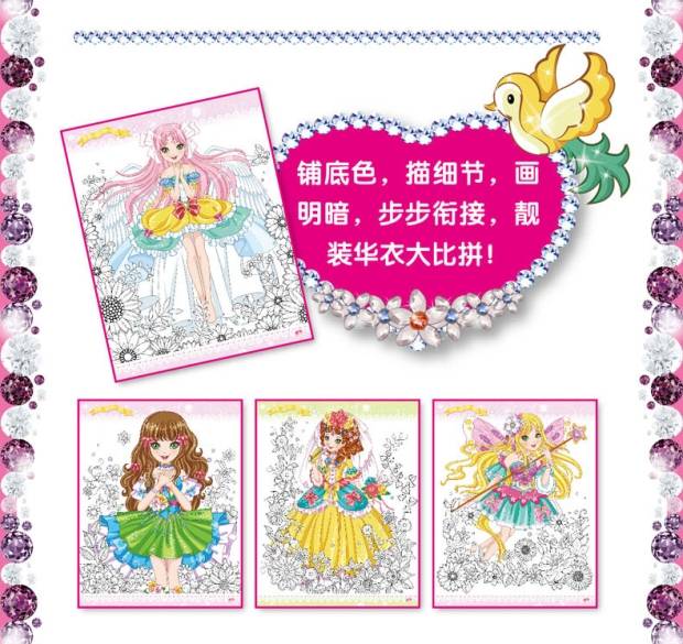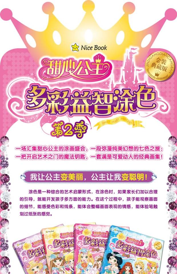 甜心公主多彩益智涂色第2季全4册 幼儿涂色书3-6岁儿童益智游戏书籍女孩涂画书画画书公主涂色