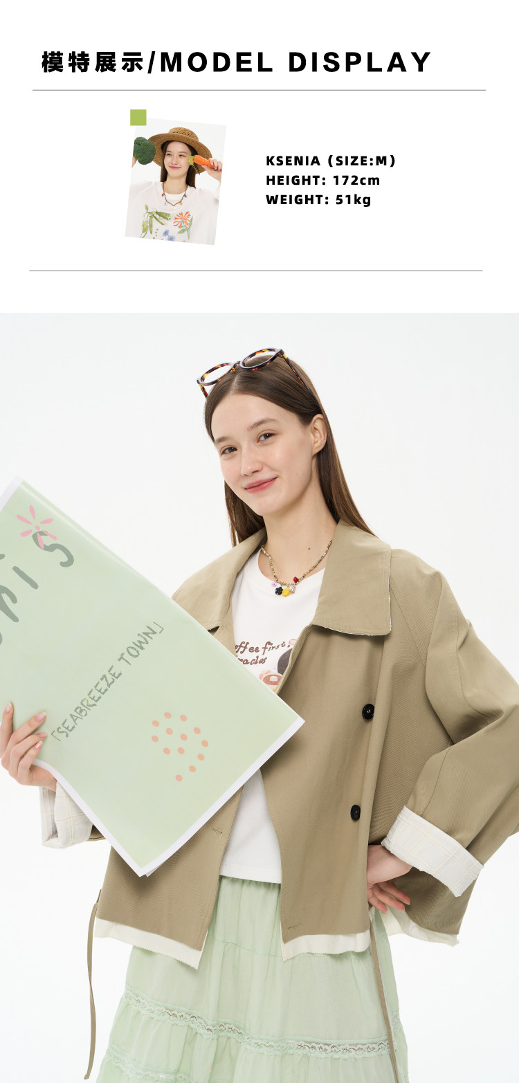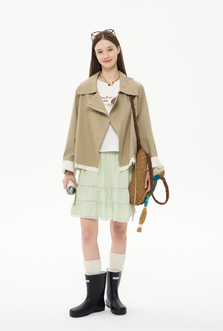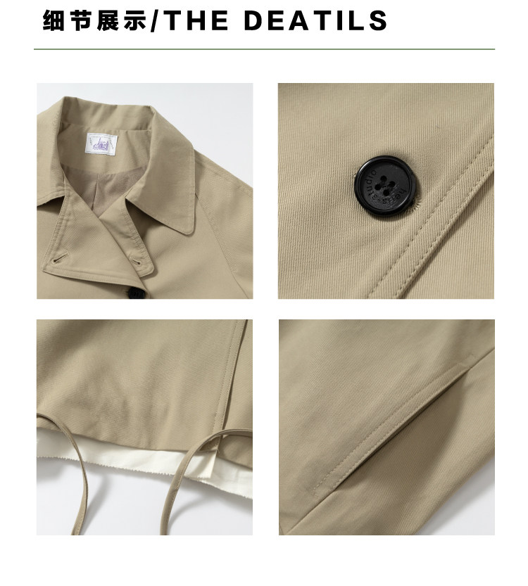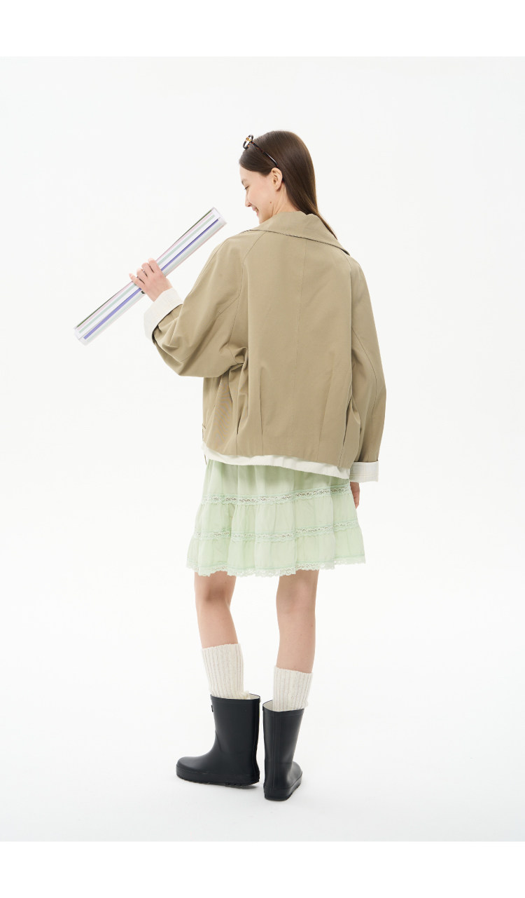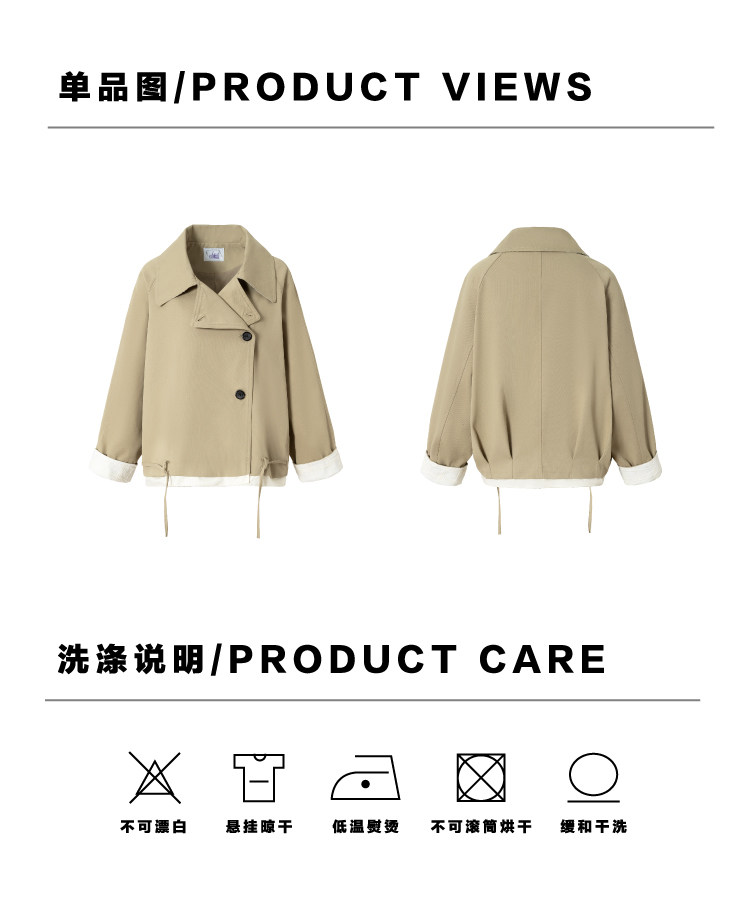 heris/H61110/ 立体翻领侧门襟 艺术感层次拼接 抽绳阔型短款风衣外套