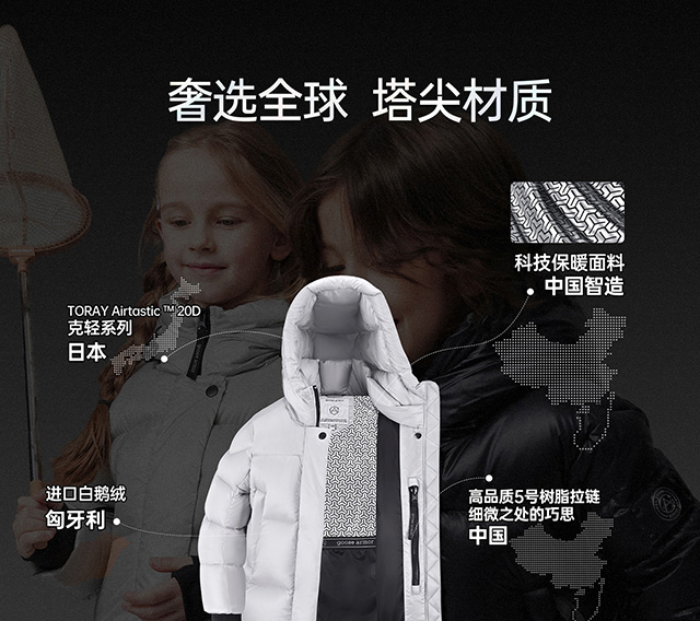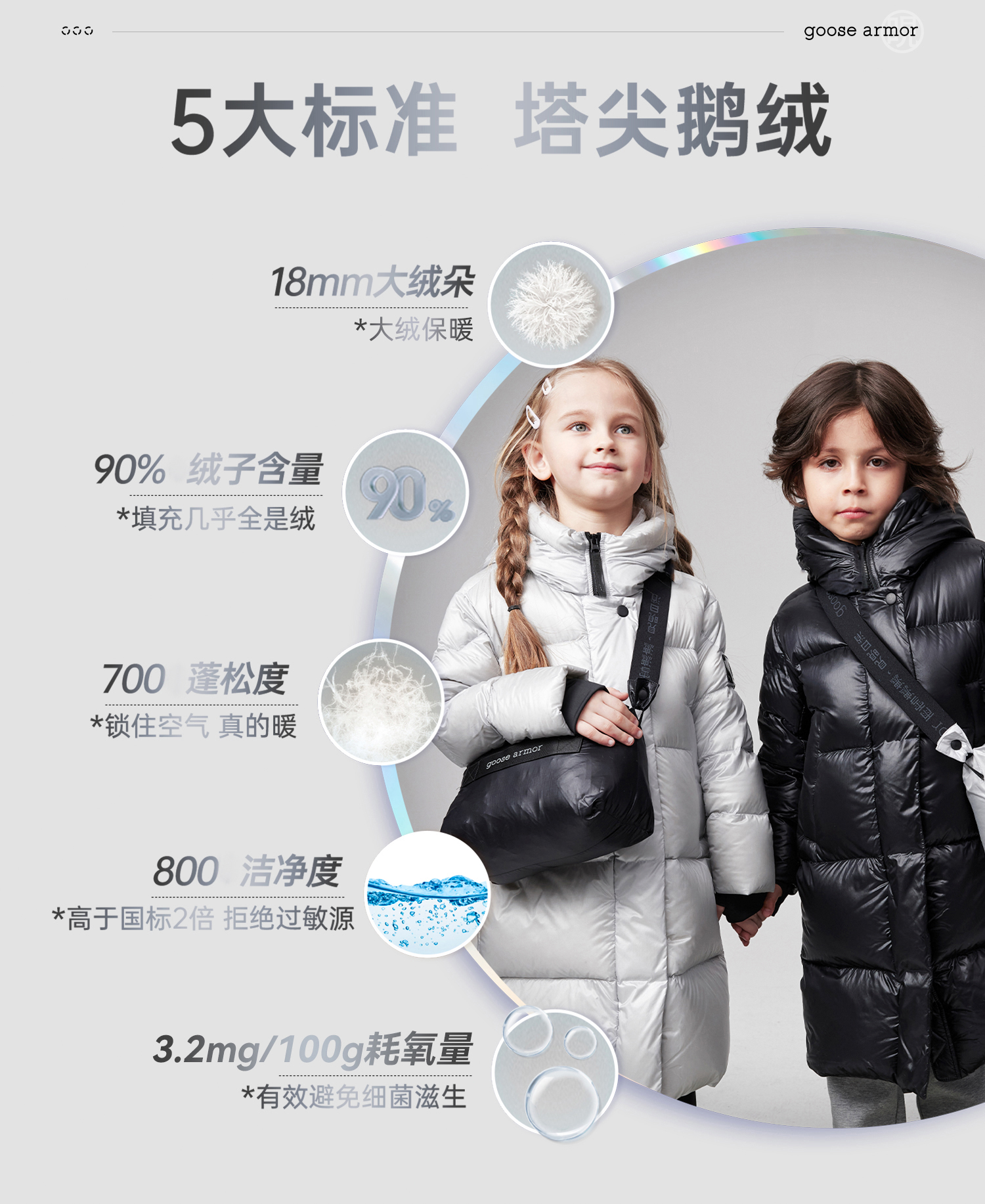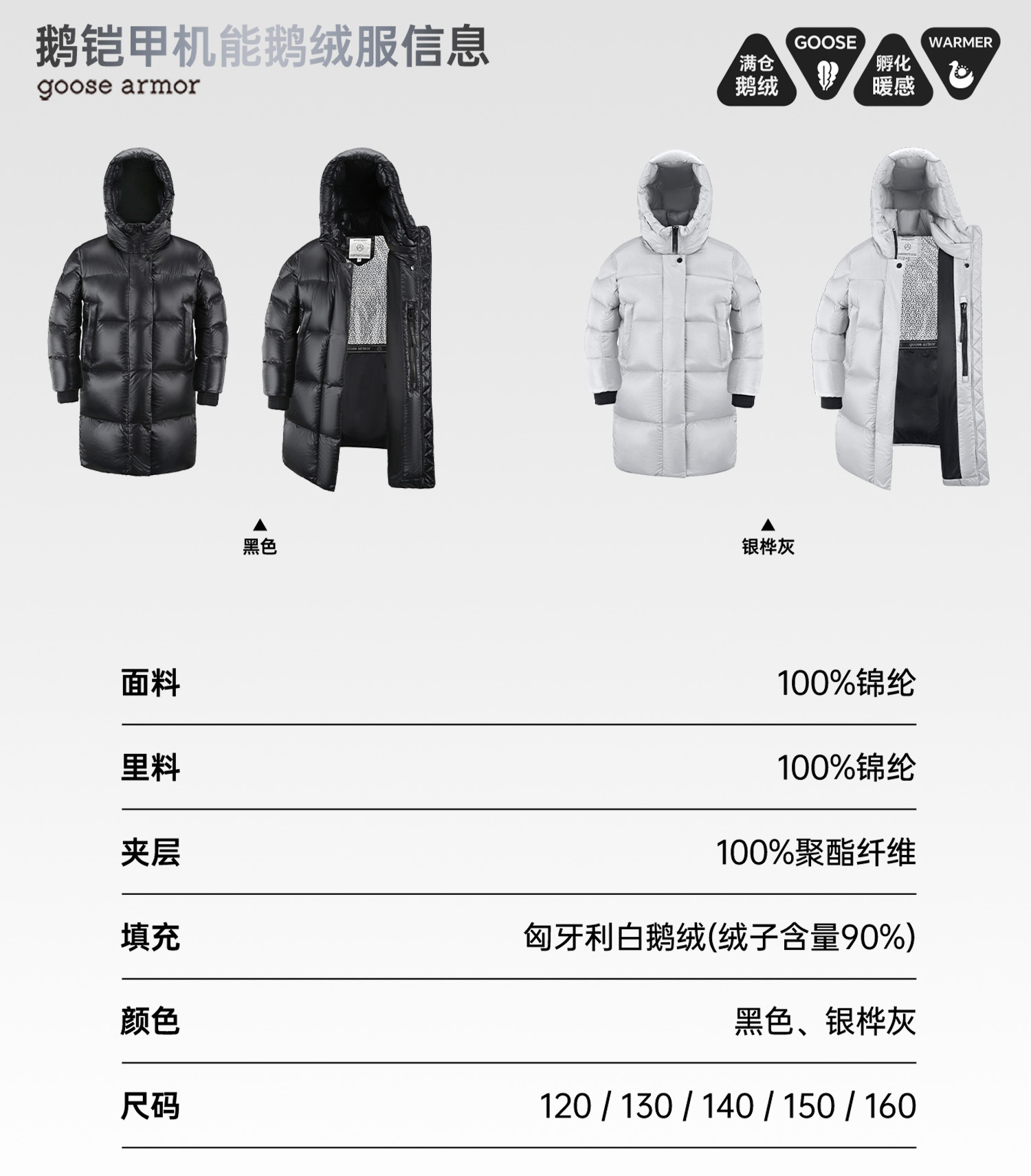 天石羽绒服鹅铠甲儿童鹅绒服90%白鹅绒长款加厚羽绒服防寒服G614