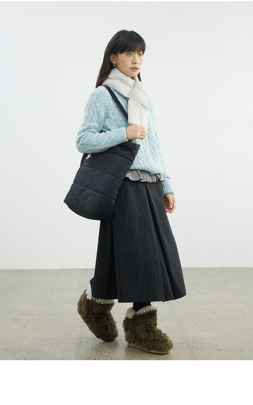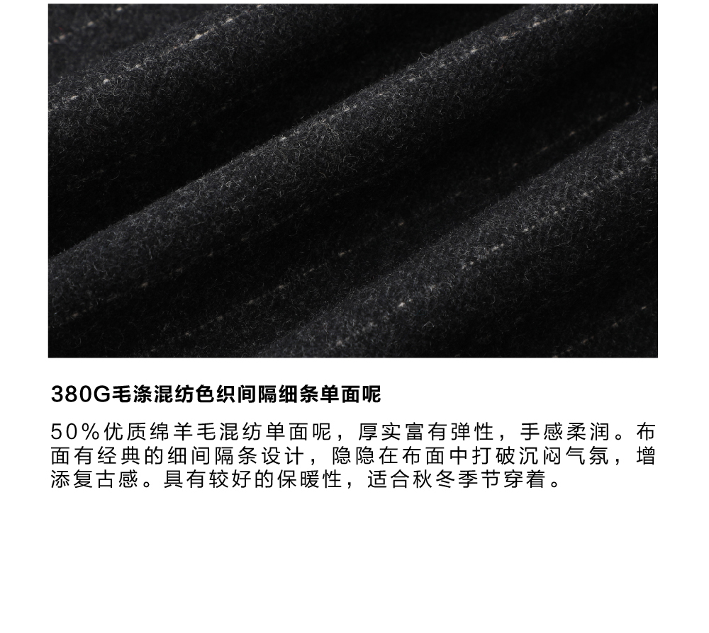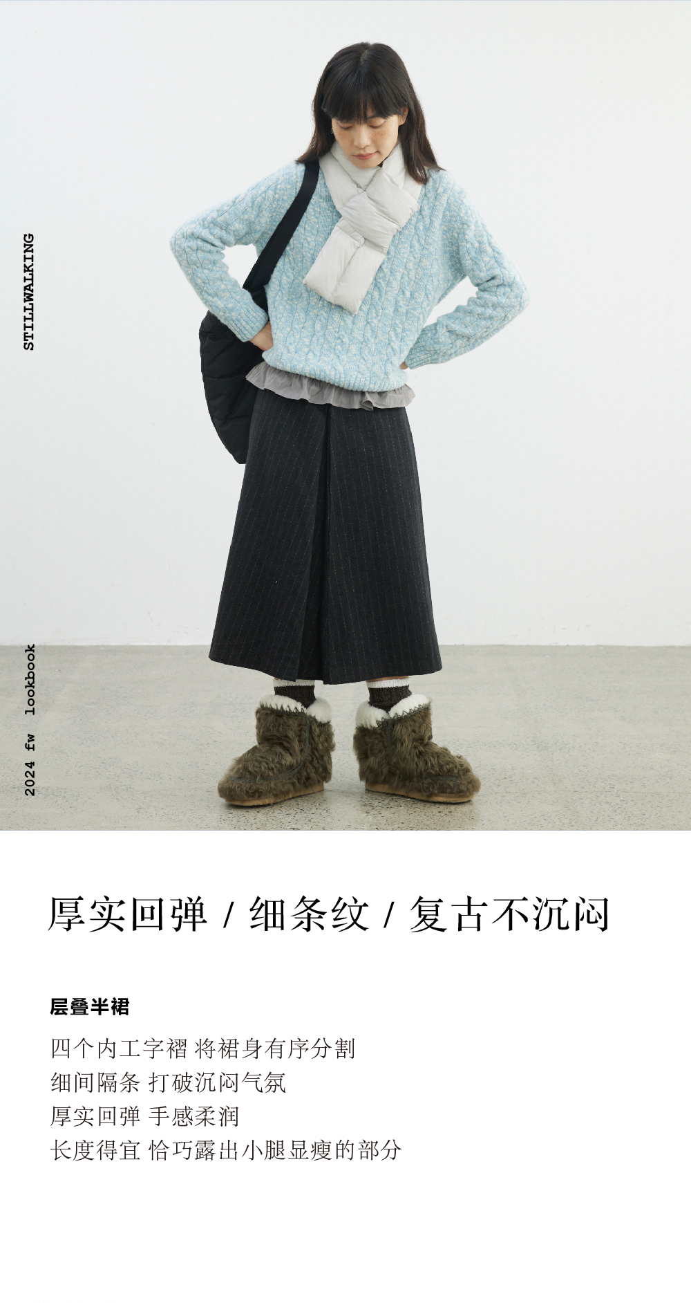 步履不停/4D41125C/复古黑白竖条纹A字呢子羊毛半身裙