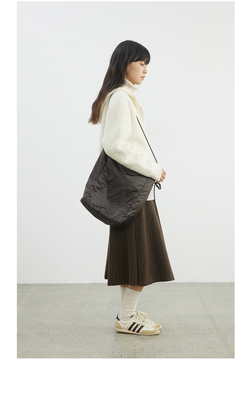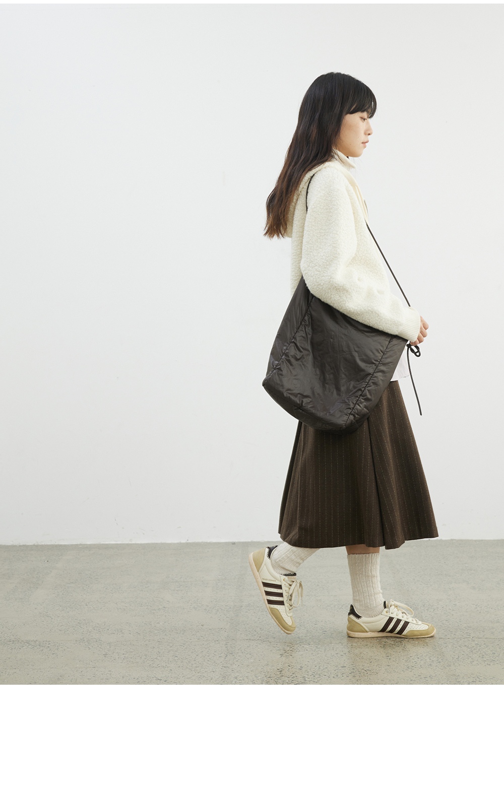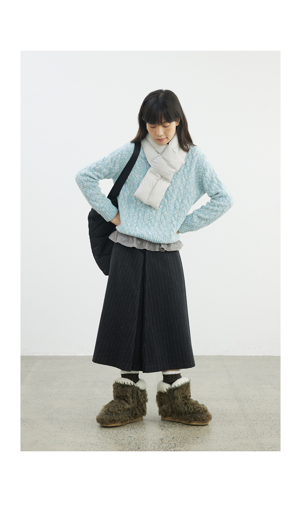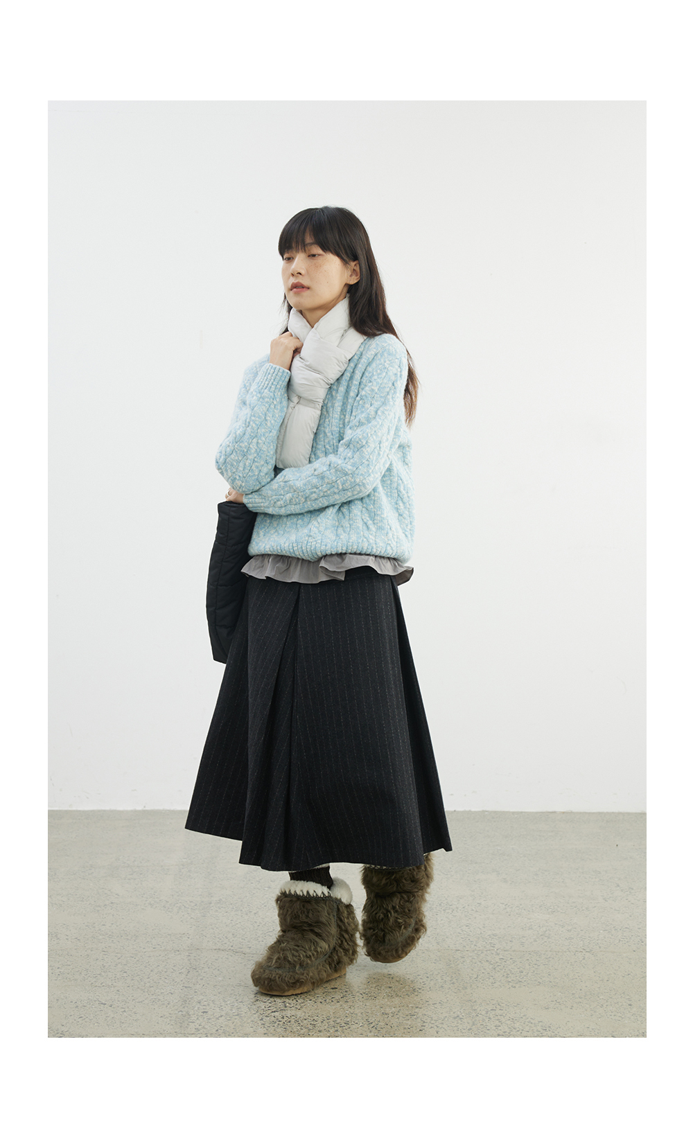步履不停/4D41125C/复古黑白竖条纹A字呢子羊毛半身裙