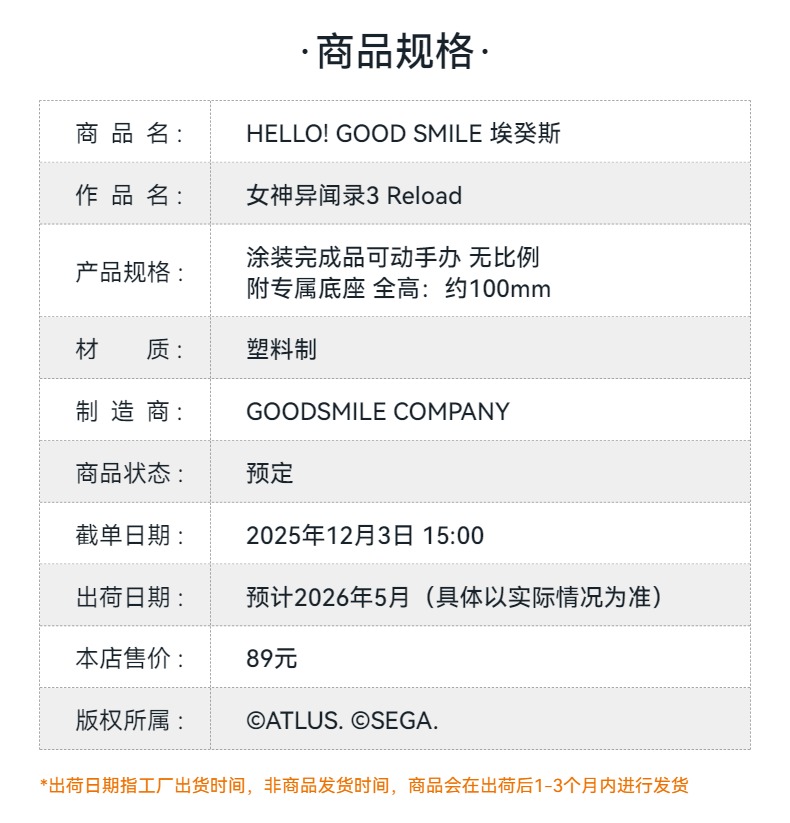 【GSC预售定金】HELLO! GOOD SMILE 埃癸斯 女神异闻录3 Reload