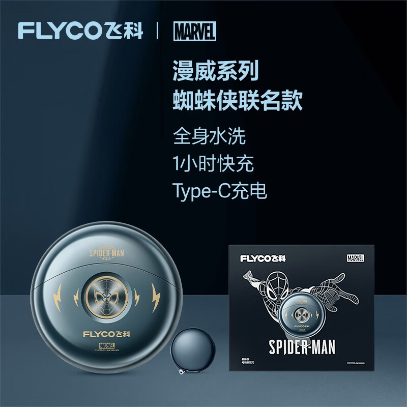 飞科(FLYCO) FS893【蜘蛛侠联名款】 剃须刀电动男士刮剃胡子胡须刀便携式生日双头太空小飞碟送男友