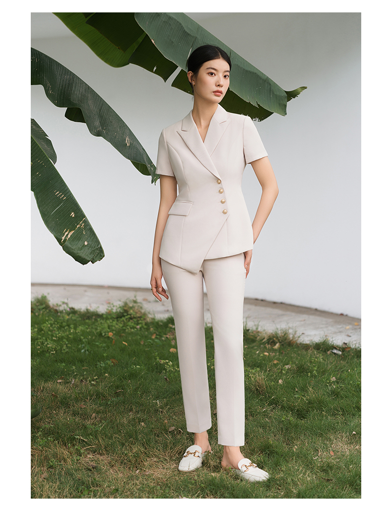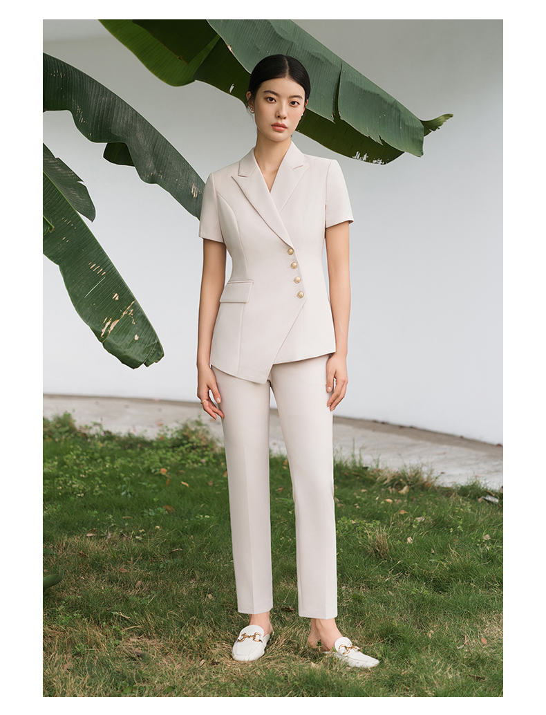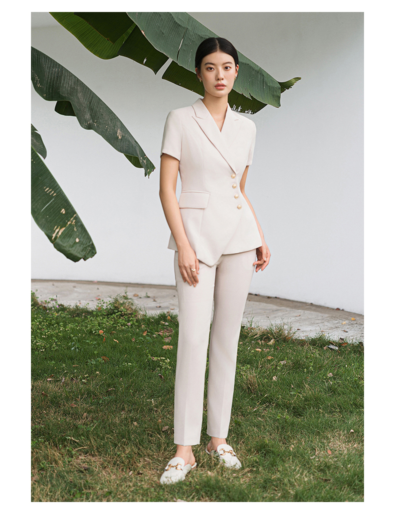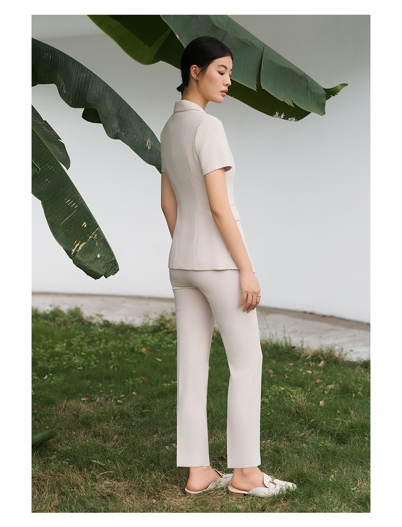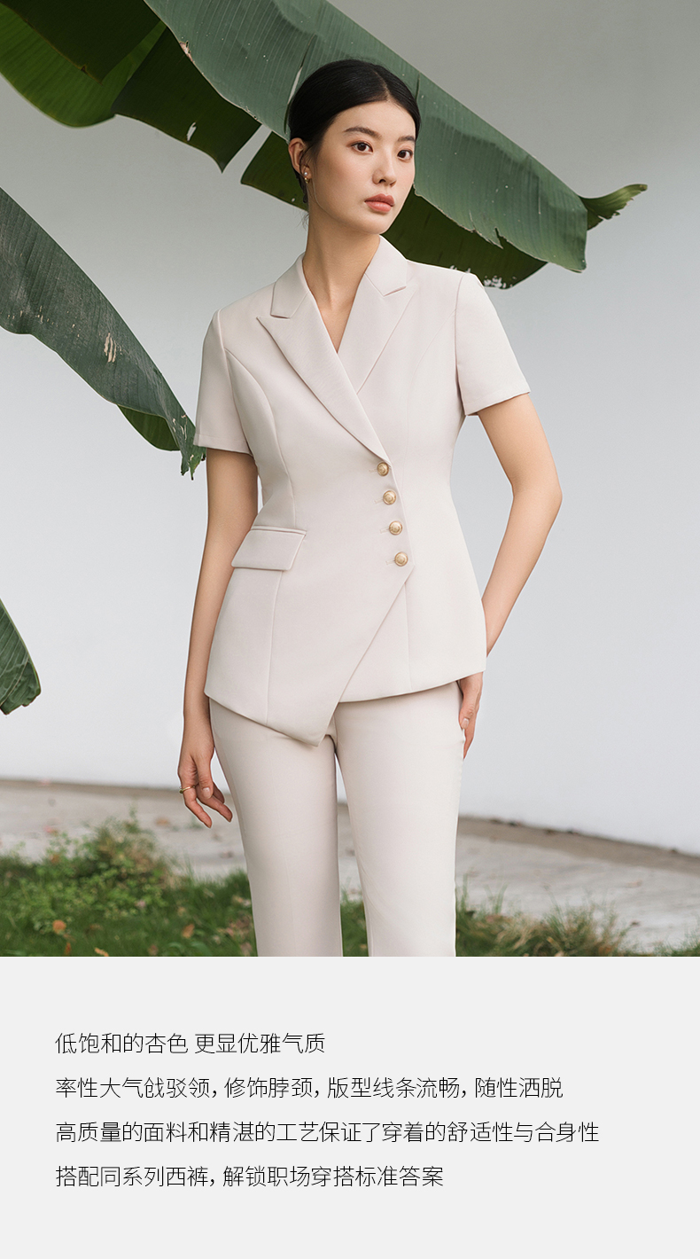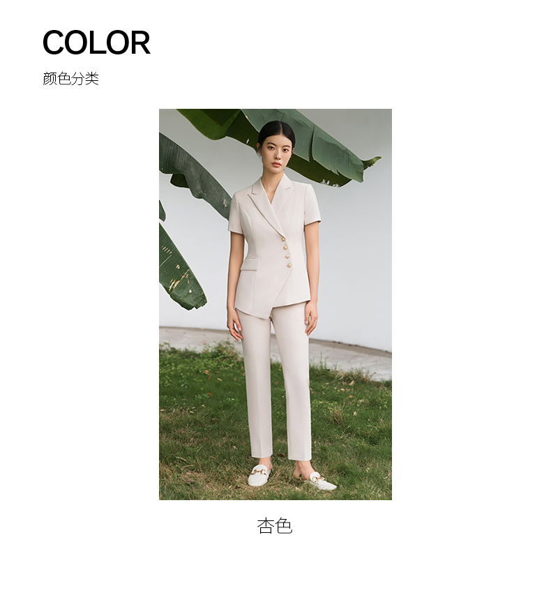 IWY/短袖西装套装杏色修身高级设计感职业商务通勤面试正装工作服C10409+P10409